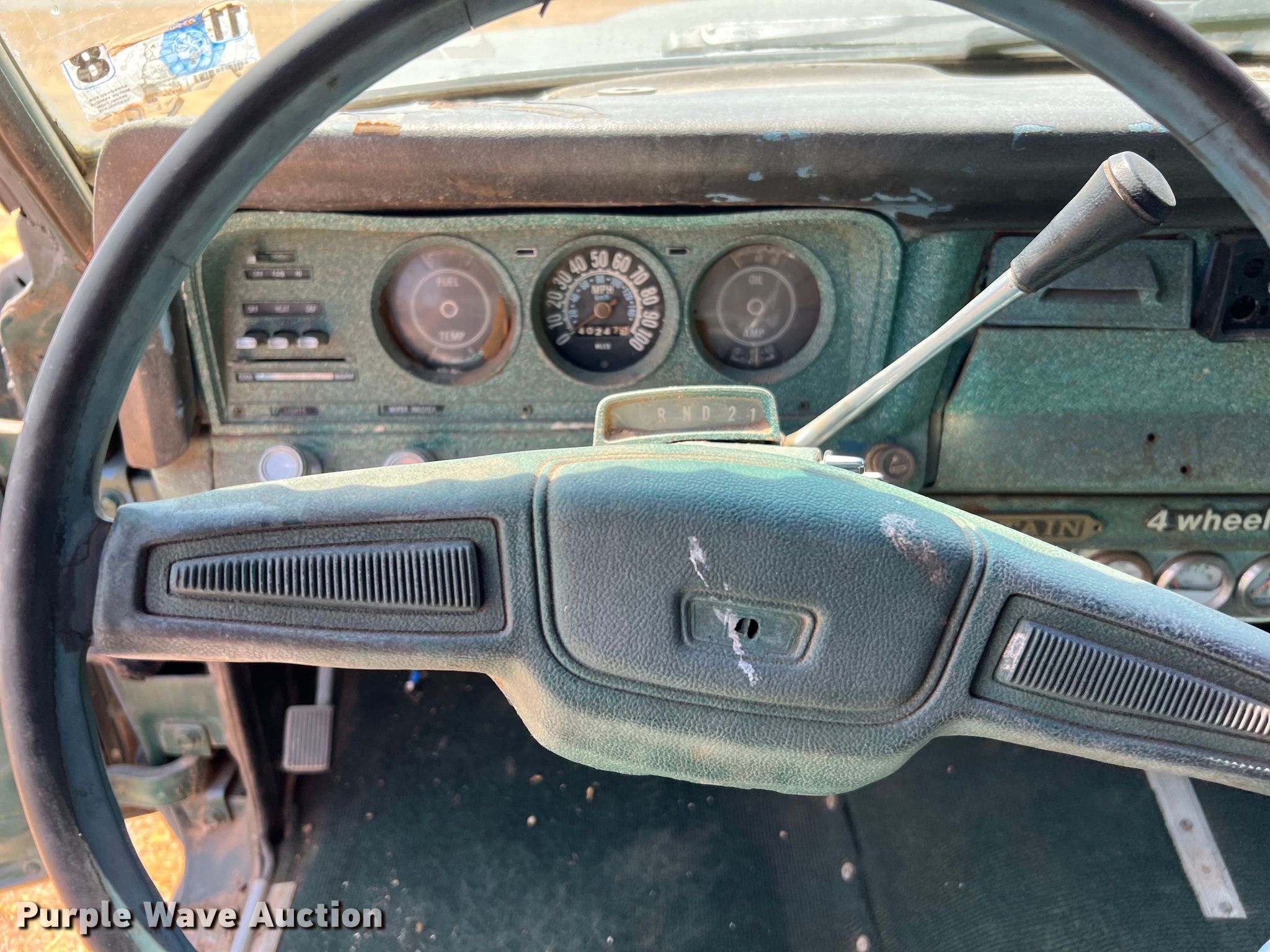 1978 Jeep Cherokee SUV. Miles: 40,248 on odometer, Actual mileage unknown, VIN: J8A16NN128466. Engine Displacement: 360 C.I.D., Cylinders: 8, Fuel type: Gas. Transmission Automatic, Four wheel drive. Interior Heat. Tires Size: 31x10.50R15. Notes Fuel system issues, fuel leak, Interior fuel pump switch. Texas bonded title. Mileage has not been verified. Exempt will be written in the odometer disclosure on the title. Title distribution may be delayed up to 14 days from verification of funds. 926 North 11th Street. Abilene, TX 79601