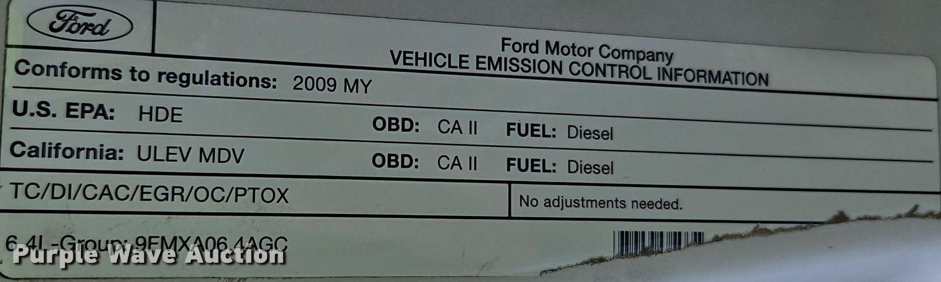 2009 Ford F350 Super Duty XL SuperCab utility bed pickup truck. Miles: 204,875 on odometer, VIN: 1FTSX30R09EA02156. Engine Displacement: 6.4L V8 OHV, Cylinders: 8, Fuel type: Diesel. Transmission Automatic. Interior AC, Heat, Heated mirrors, Power windows, Power locks, Cruise control. Features Utility bed Knapheide , 9' x 6' W x 7" W, Hitch: Gooseneck. Tires Size: 245/75R17. Notes Dash warning indicator: TPMS, ABS, Brake. Kansas title. Title distribution may be delayed up to 14 days from verification of funds. Heartland Midwest LLC. 15795 South Mahaffie Street. Olathe, KS 66062