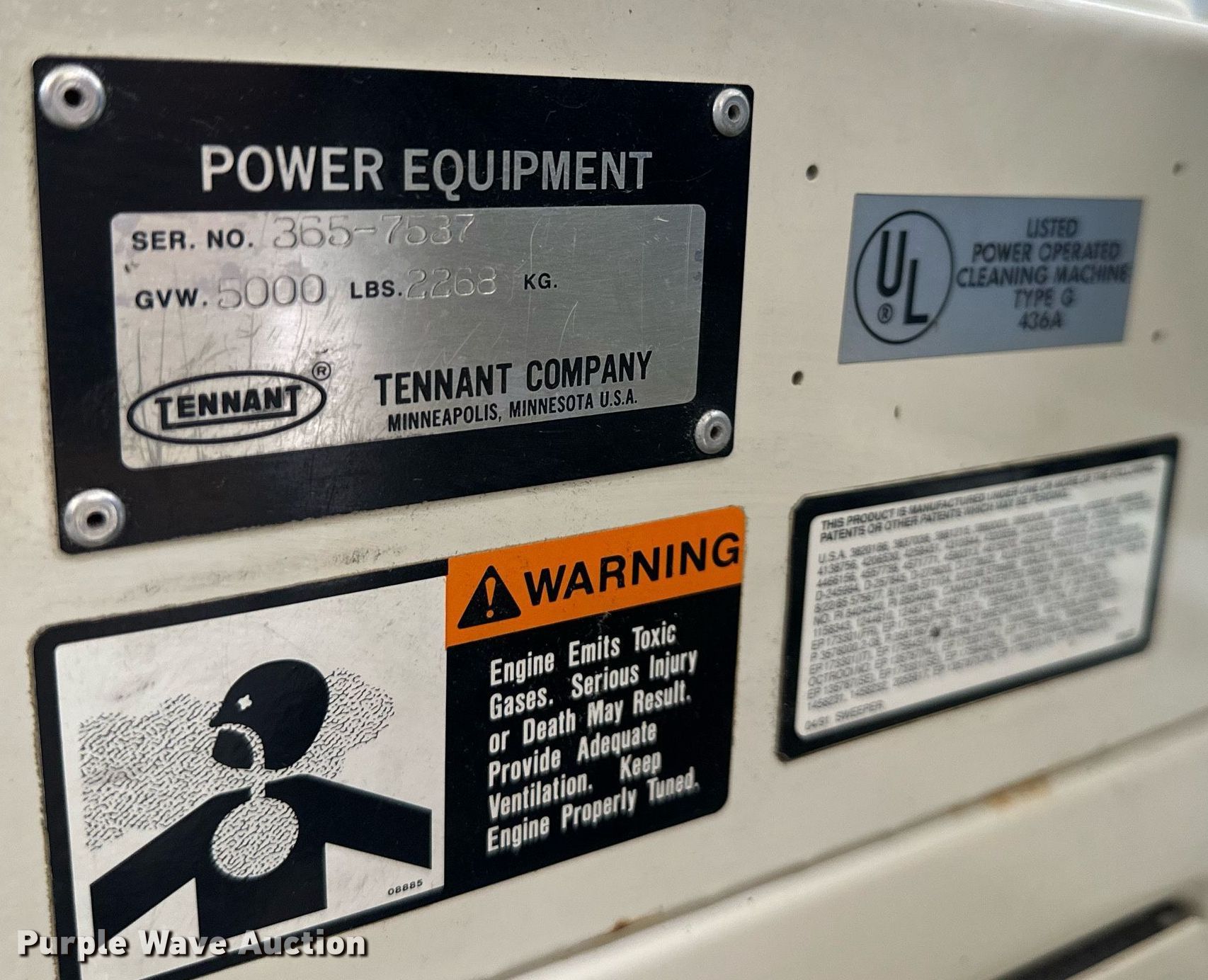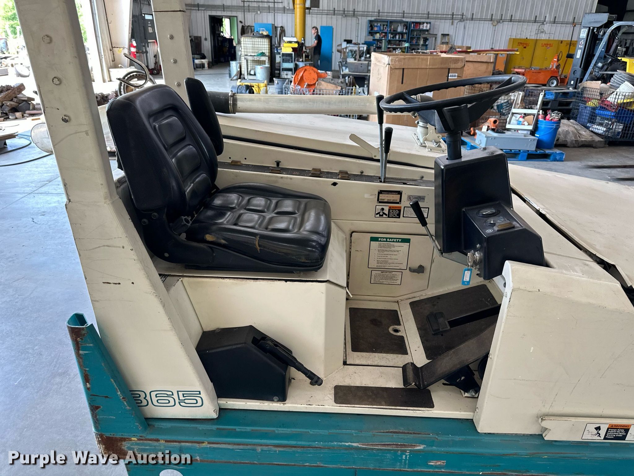 Purple Wave is selling a used Sweeper in Kansas. This item is a Tennant 365 sweeper with the following: Hours: 1,134 on meter, Serial: 3657537