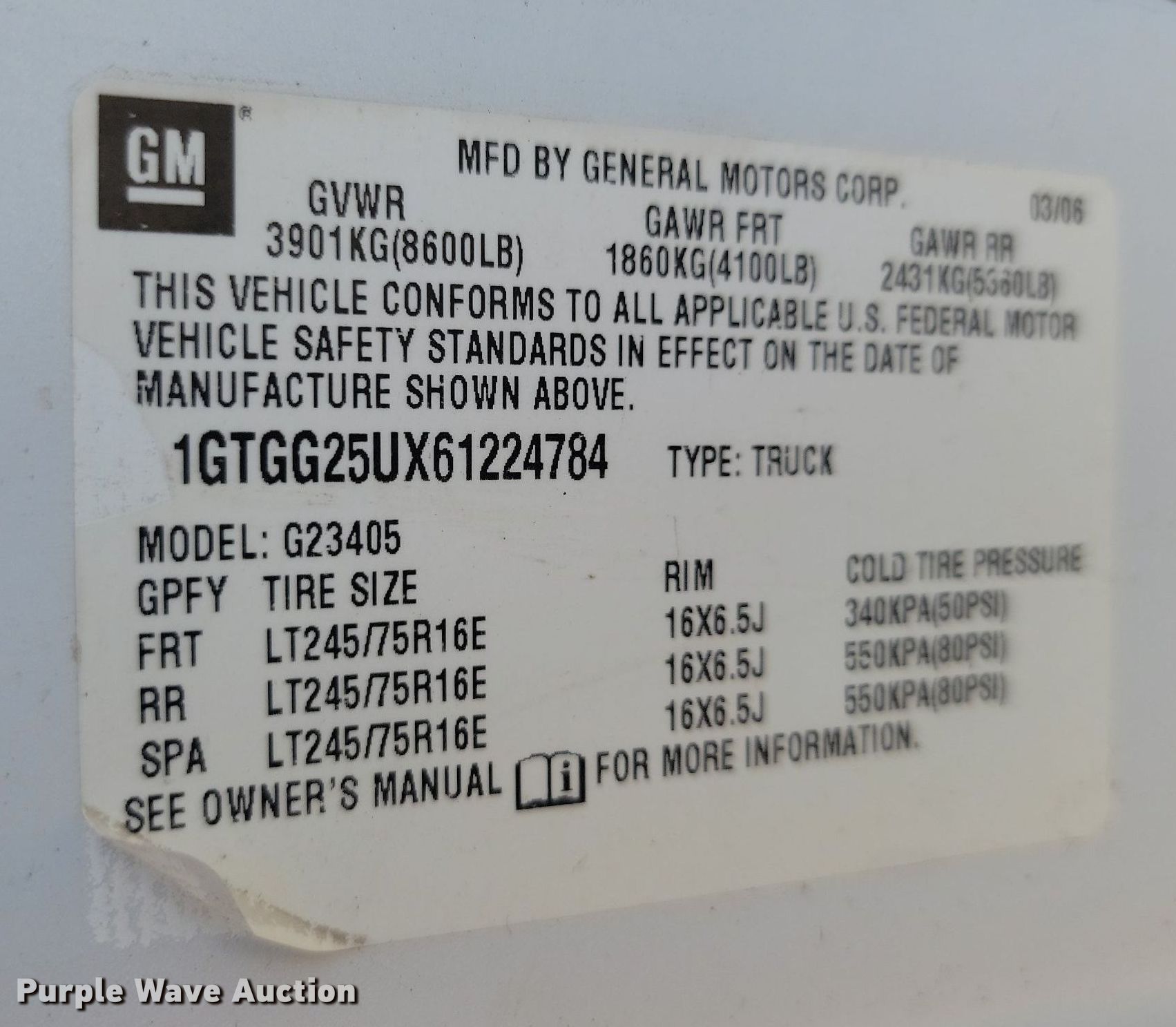 - VIN: 1GTGG25UX61224784