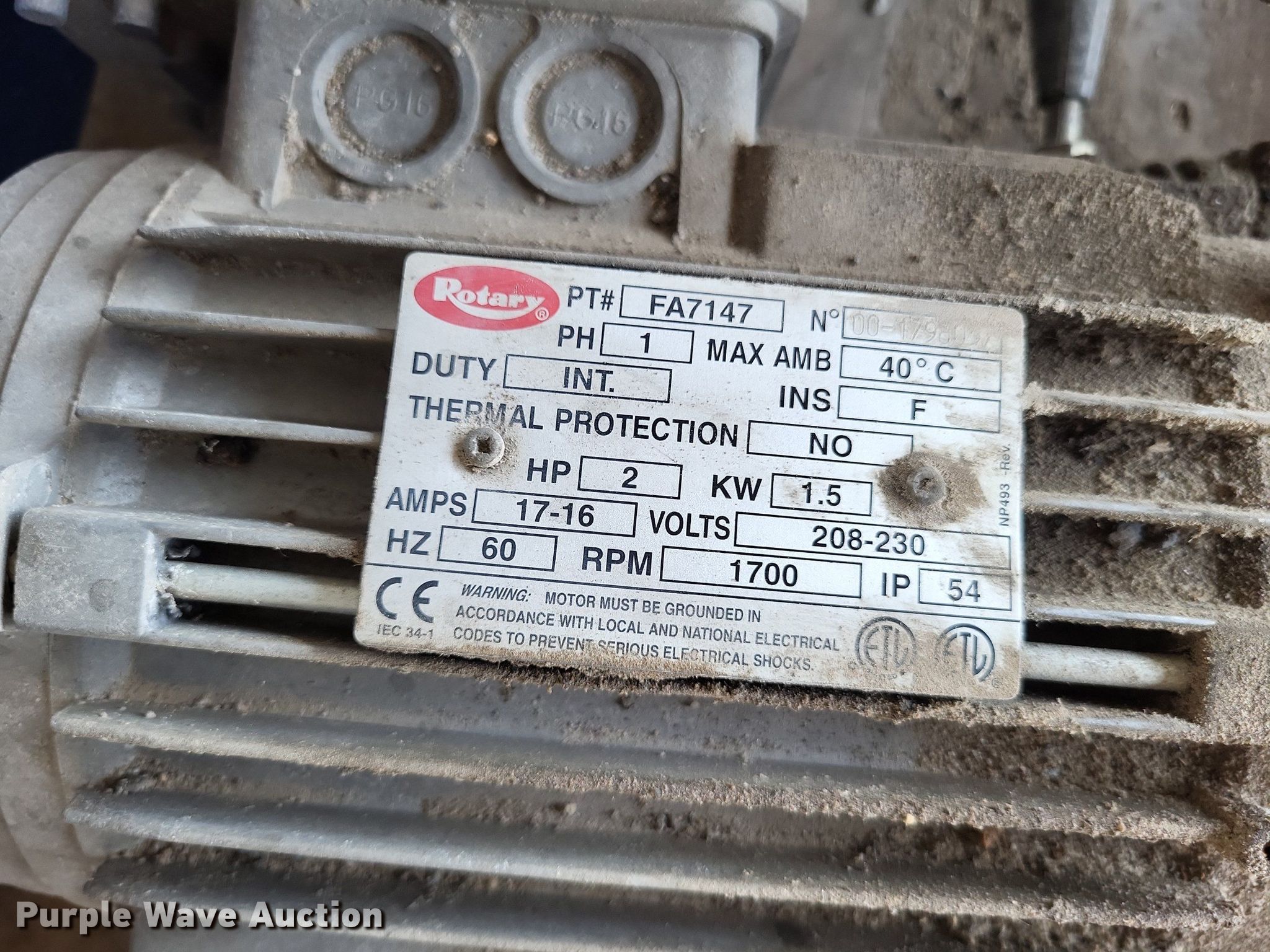 Rotary SP015-LC two post automotive lift. Serial: STB01A0002. Electric motor Volts: 208-230, HP: 2, Phase: Single. Features Capacity: 15,000 lbs, Hydraulic. Lexington Electric System. 280 Factory Dr. Lexington, TN 38351