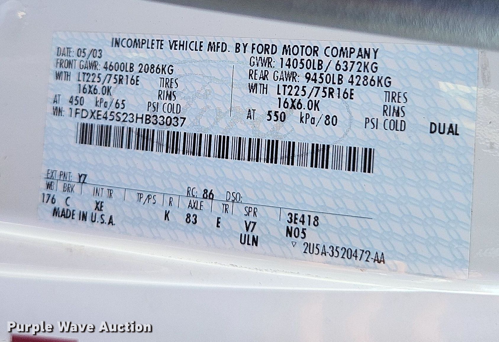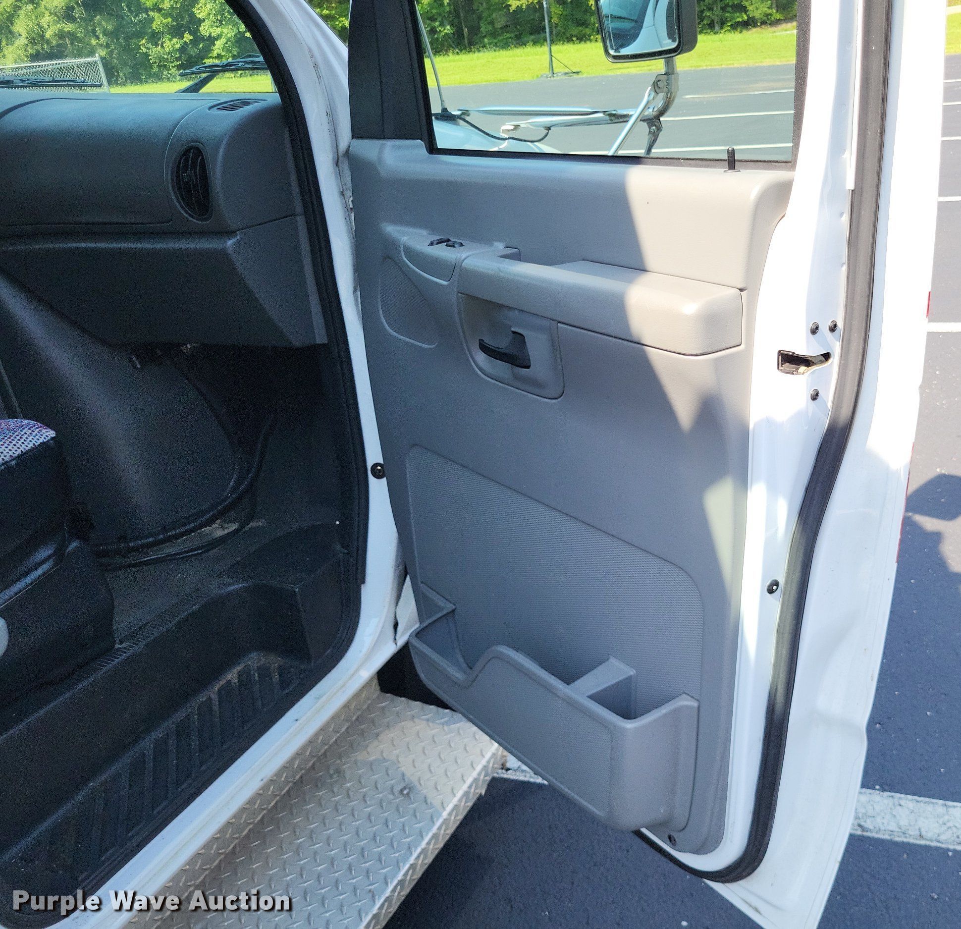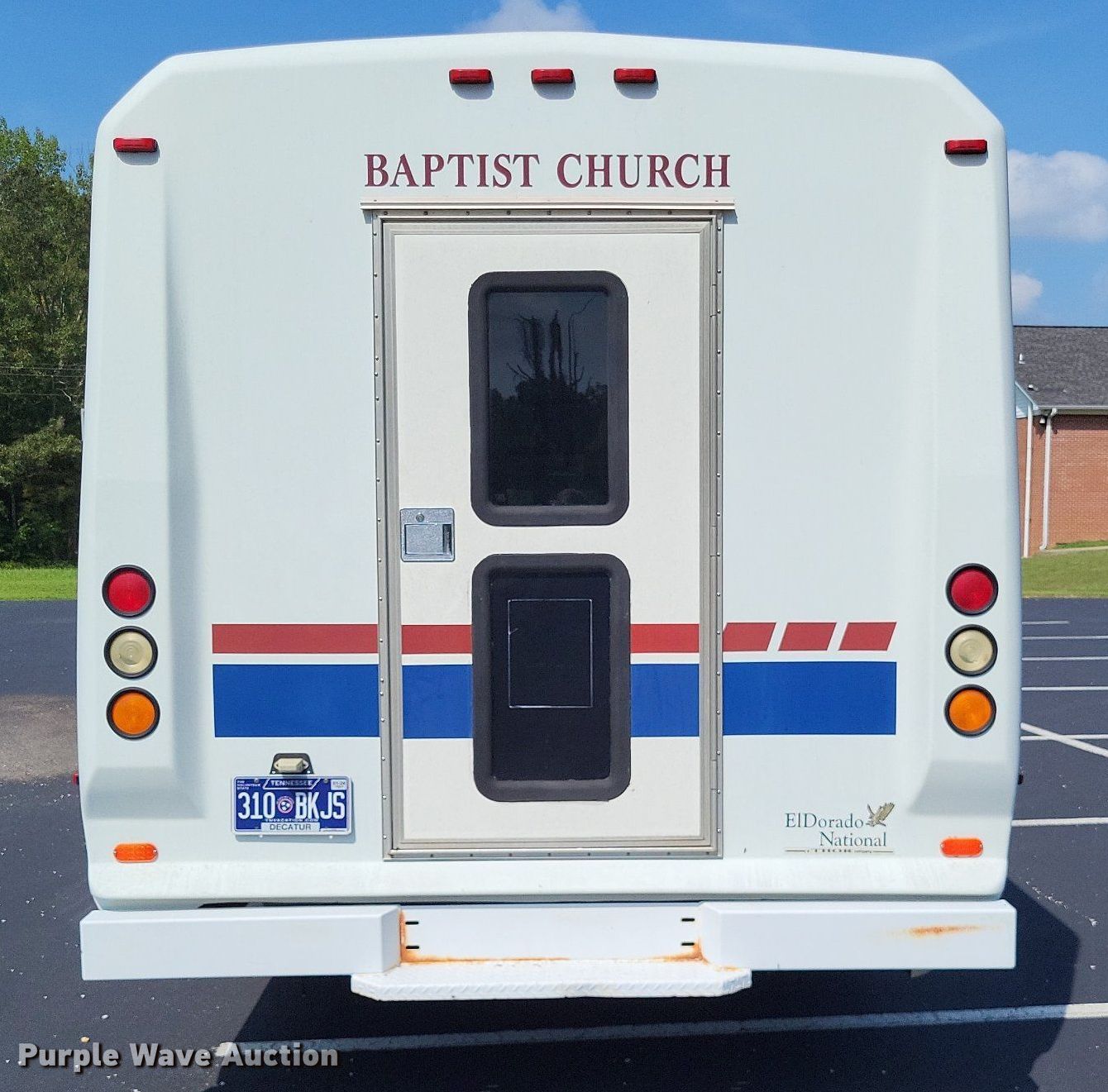 2003 Ford E450 Super Duty shuttle bus. Miles: 107,629 on odometer, VIN: 1FDXE45S23HB33037. Engine Ford , Displacement: 6.8L V10, Cylinders: 10, Fuel type: Gas. Transmission Automatic. Chassis Axles: Single, Suspension: Spring, Brakes: Hydraulic, GVWR: 14,050 lbs. Interior AC, Heat, Heated mirrors, Cruise control, Auxiliary controls, Brake controller, Electric passenger sliding door, Passengers: 22. Tires Size: 225/75R16. Notes Windshield chipped or cracked, Possible rear AC issues. Tennessee title. Title distribution may be delayed up to 14 days from verification of funds. Corinth Baptist Church. 1350 Corinth Road. Darden, TN 38328