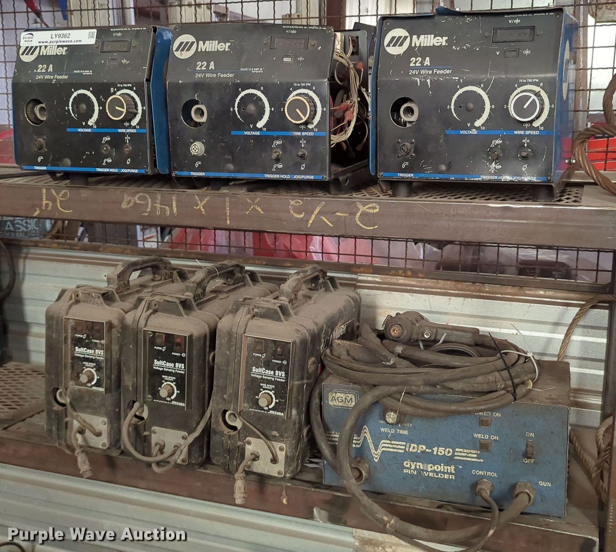 Purple Wave is selling a used Welder (Manual) in Oklahoma. This item is a Welding equipment with the following: (3) Miller 22A 24V wire feeders, Dynapoint DP-150 pin welder, (3) Miller suitcase 8VS voltage sensing wire feeders