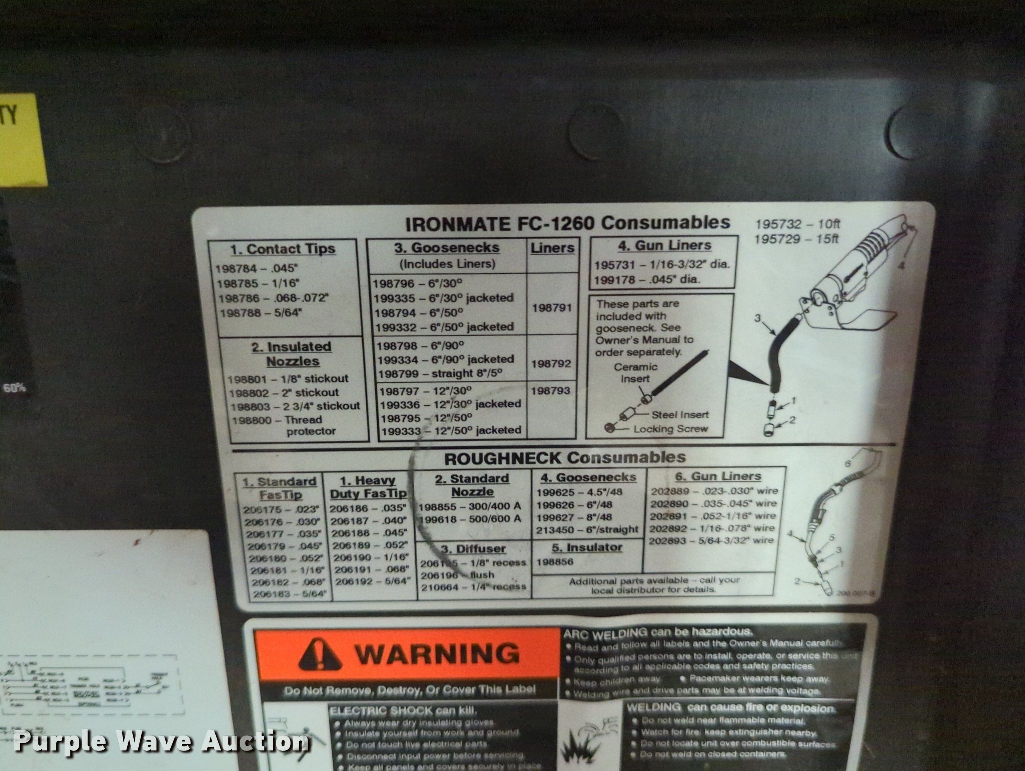 Welding equipment has sold in Oklahoma City, Oklahoma for $1155. Item LY9362 sold on September 27th, 2023.