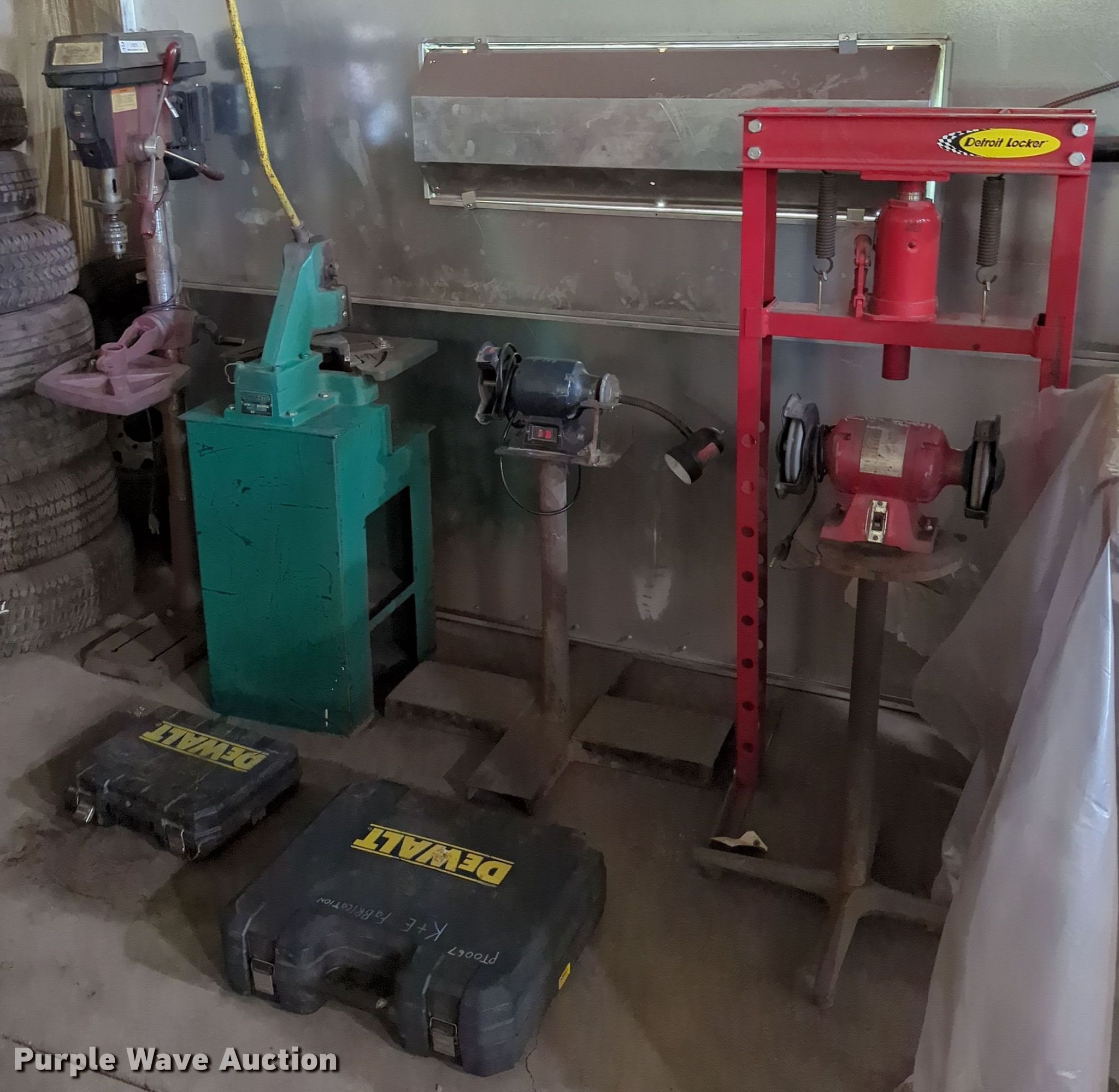 Purple Wave is selling a used Tools in Oklahoma. This item is a Tools with the following: Detroit locker press, Tennsmith 16 gauge metal cutter, Northern industrial 16 speed drill press, DeWalt DWE1622 2" magnetic drill press and more
