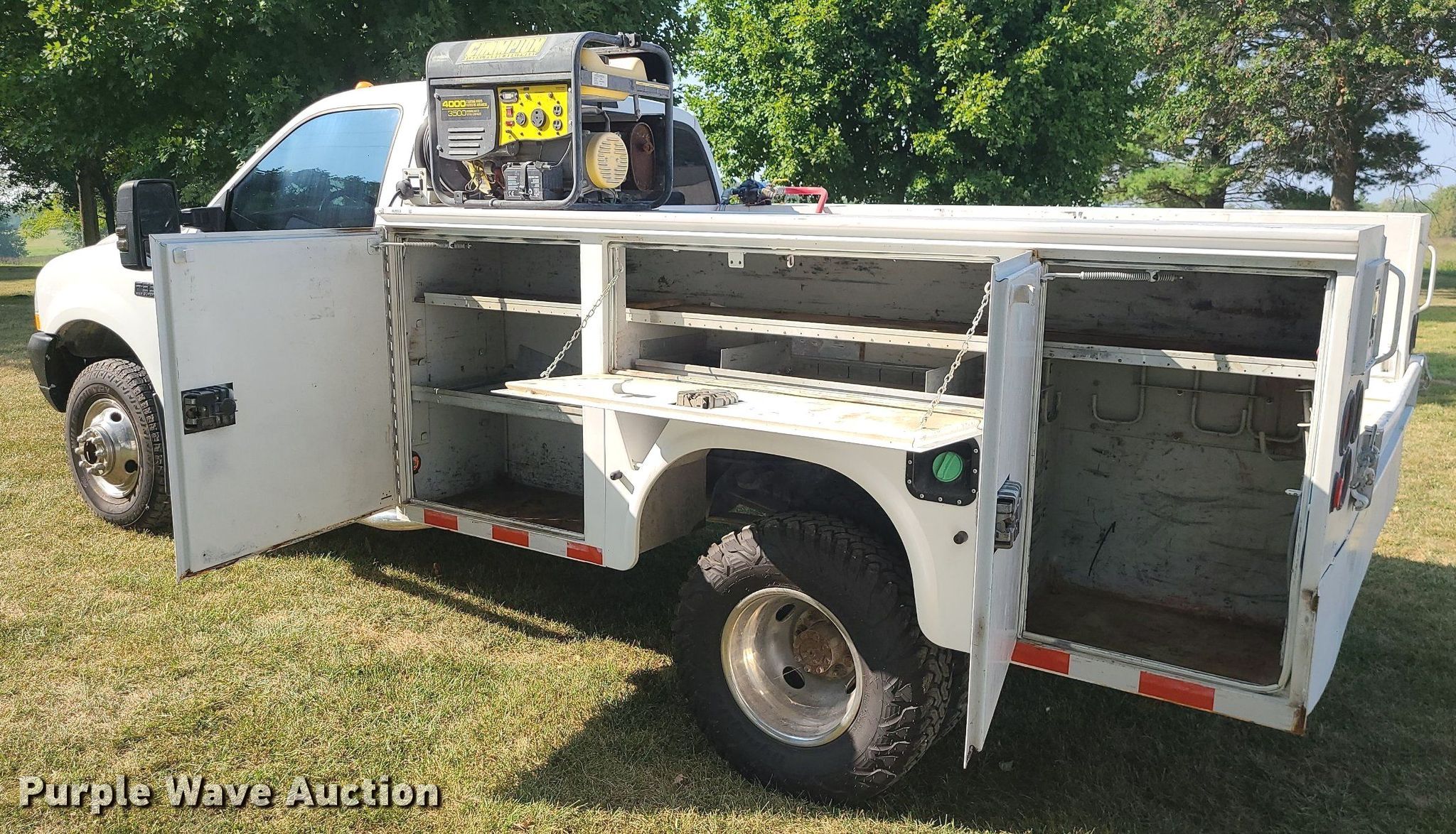 This 2004 Ford F350 Super Duty utility bed pickup truck will sell to the highest bidder regardless of price.
