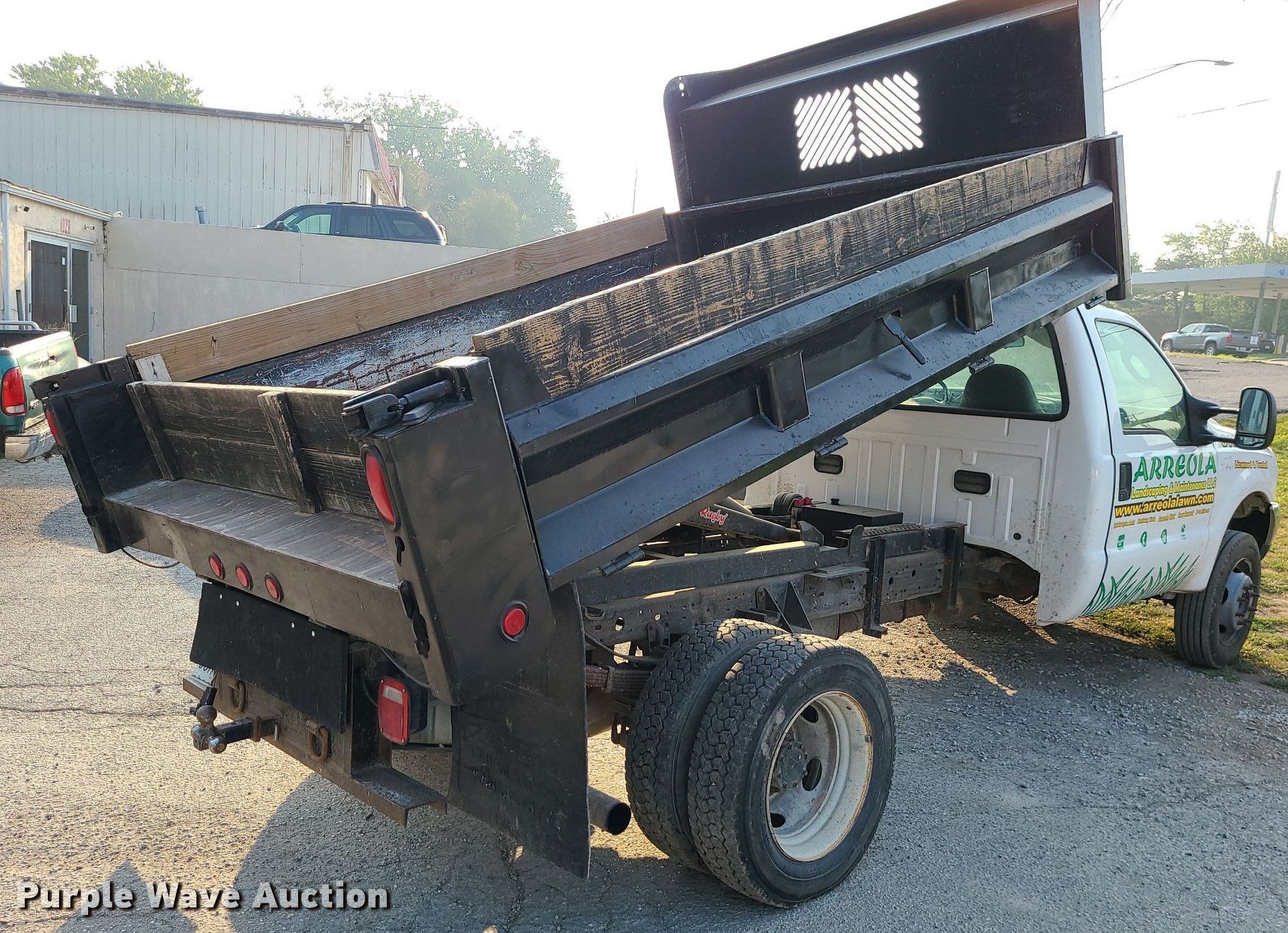 2004 Ford F550 Super Duty dump truck. Miles: 41,013 on odometer, VIN: 1FDAF56P74EB64743. Engine Displacement: 6.0L V8 OHV, Cylinders: 8, Fuel type: Diesel. Transmission Automatic. Chassis Axles: Single, Suspension: Spring, Brakes: Hydraulic. Interior AC, Heat. Features Dump bed 11' x 96" W, Side height: 16", Side board height: 7". Tires Front: 225/70R19.5. Notes Dash warning indicator: Airbag. Missouri title. Title distribution may be delayed up to 14 days from verification of funds. Arreola Lawn Maintenance LLC. 1028 E 23rd St S. Independence, MO 64055