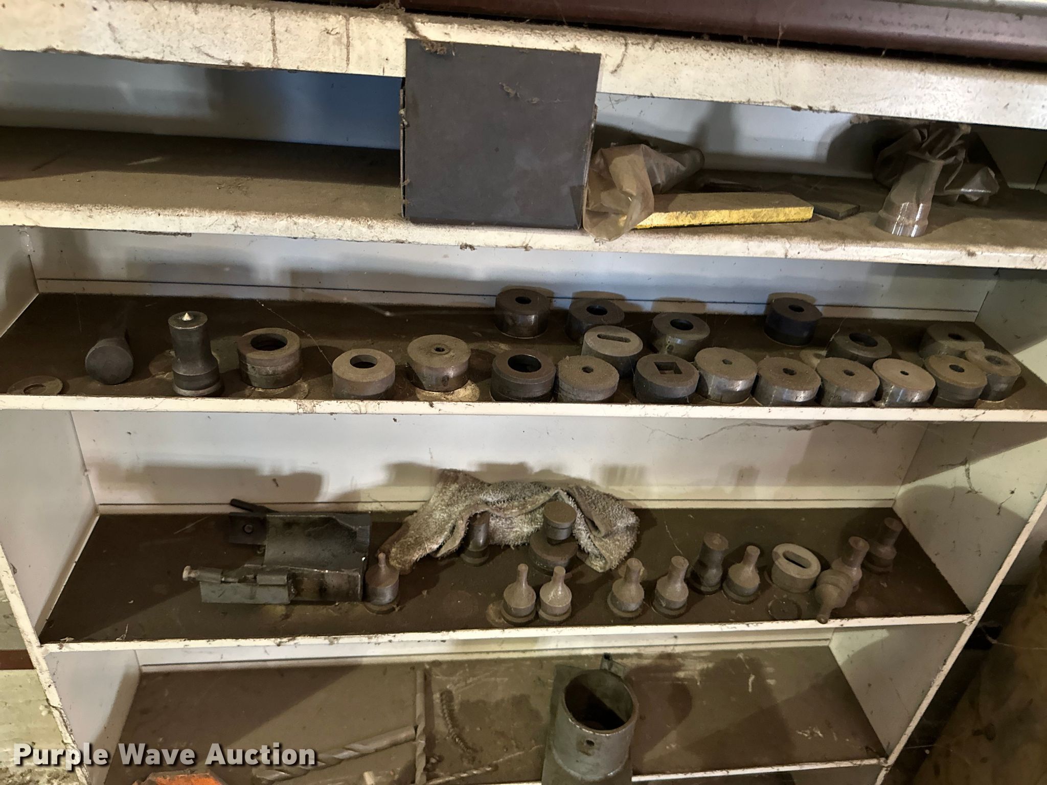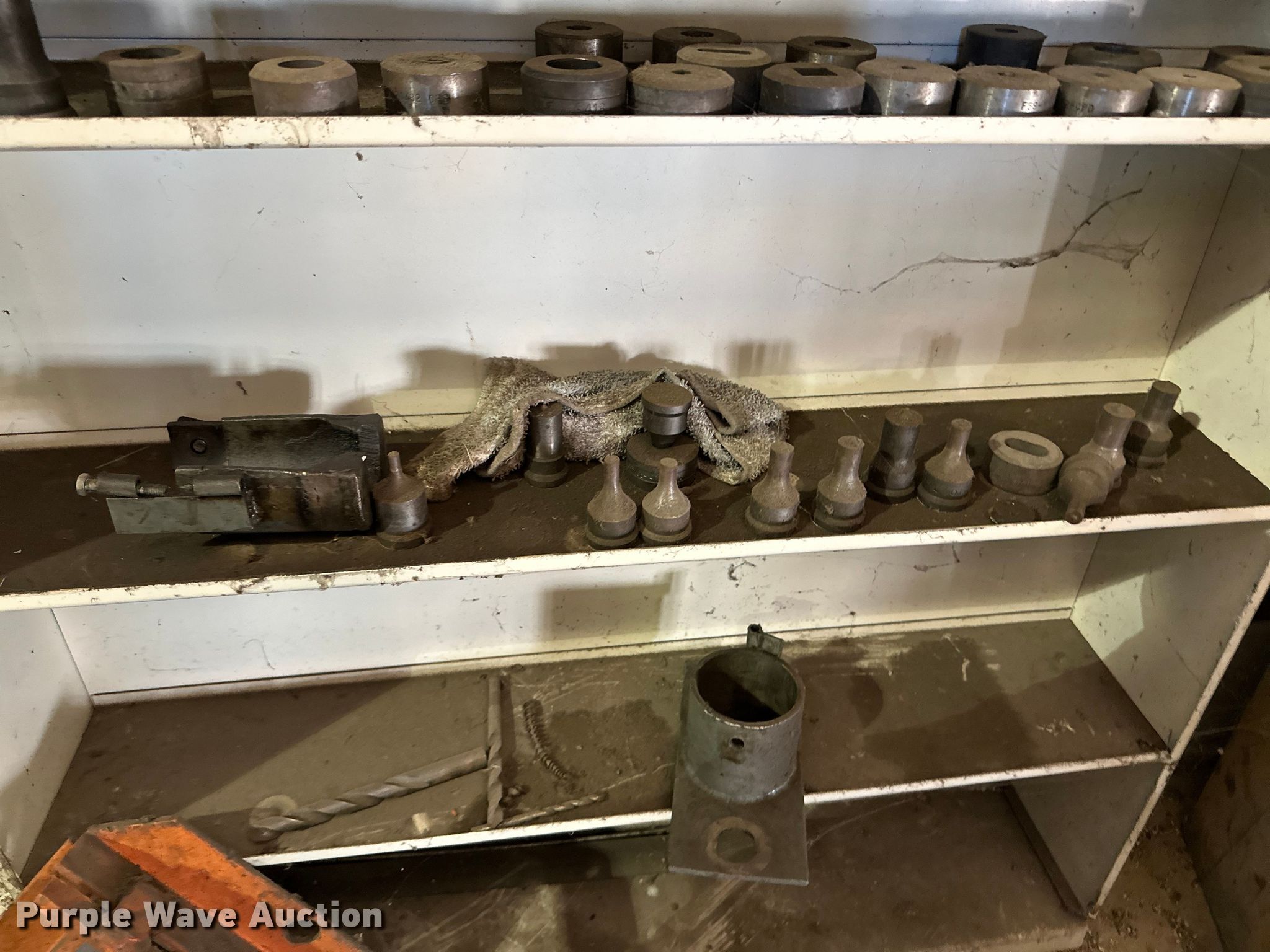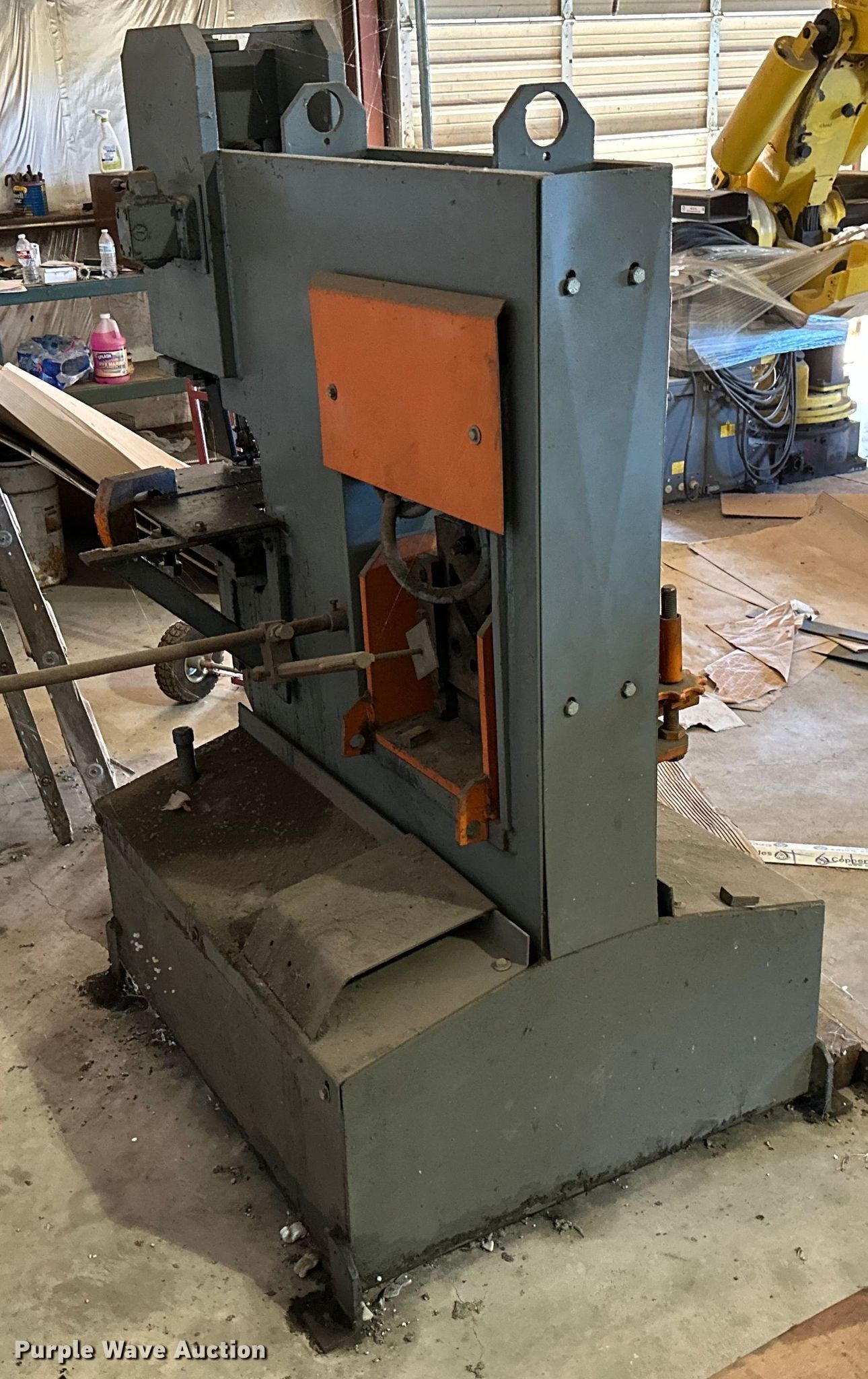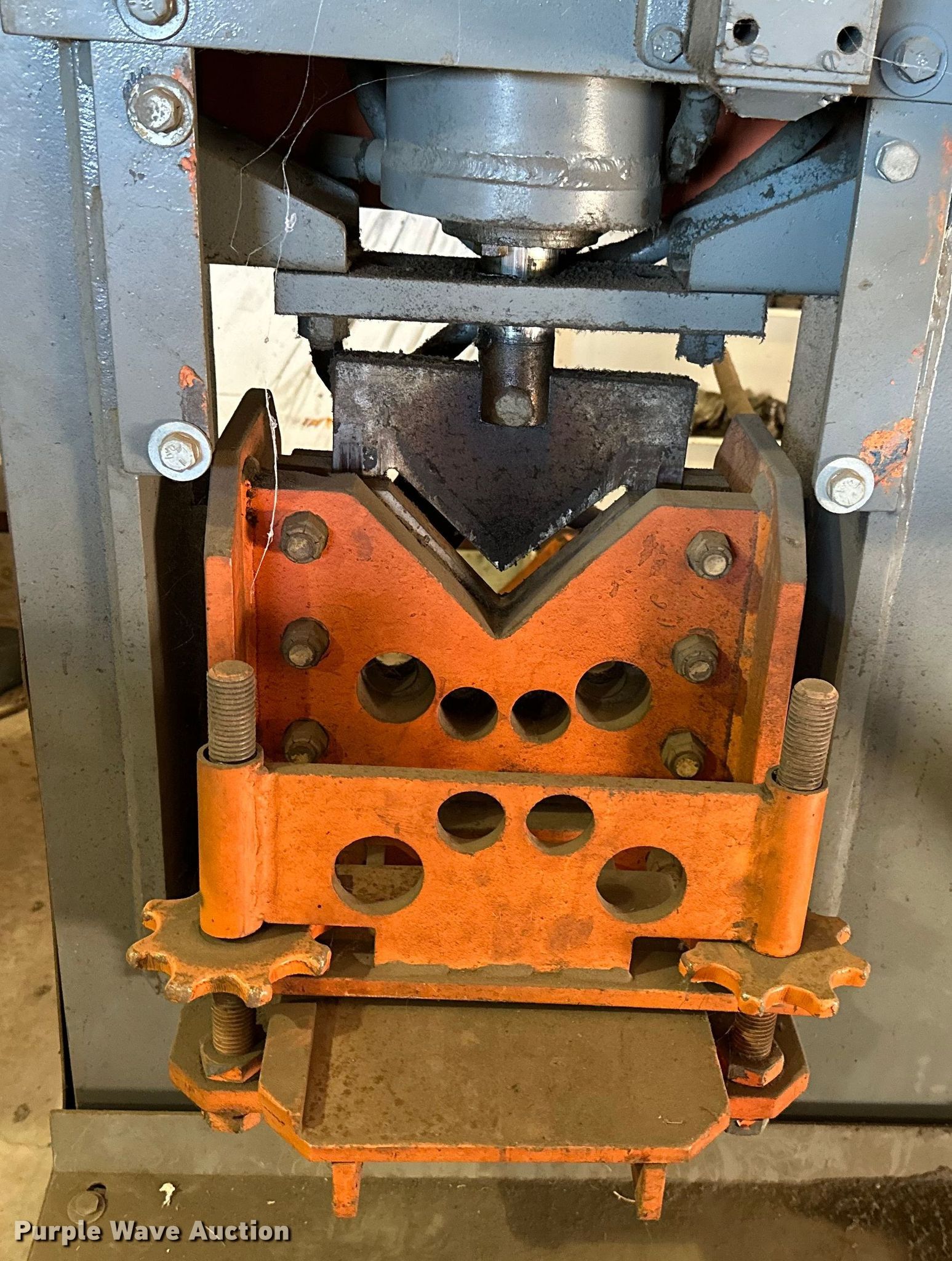 Honeoye Model 50/50 shear. Electric Motor. Phase: Three. Features Punch Capacity: 50 ton , Stroke: 4" , 1 1/4" hole through 1/2" mild steel, Shear Capacity: 50 ton, Capacities: 90 degree angle: 4 x 4 x 3/8", 40 degree miter: 3 x 3 x 3/8", Flat bar: 3/4" x 8", Round: 1 3/8", Square: 1 1/4". Claremore, OK 74018