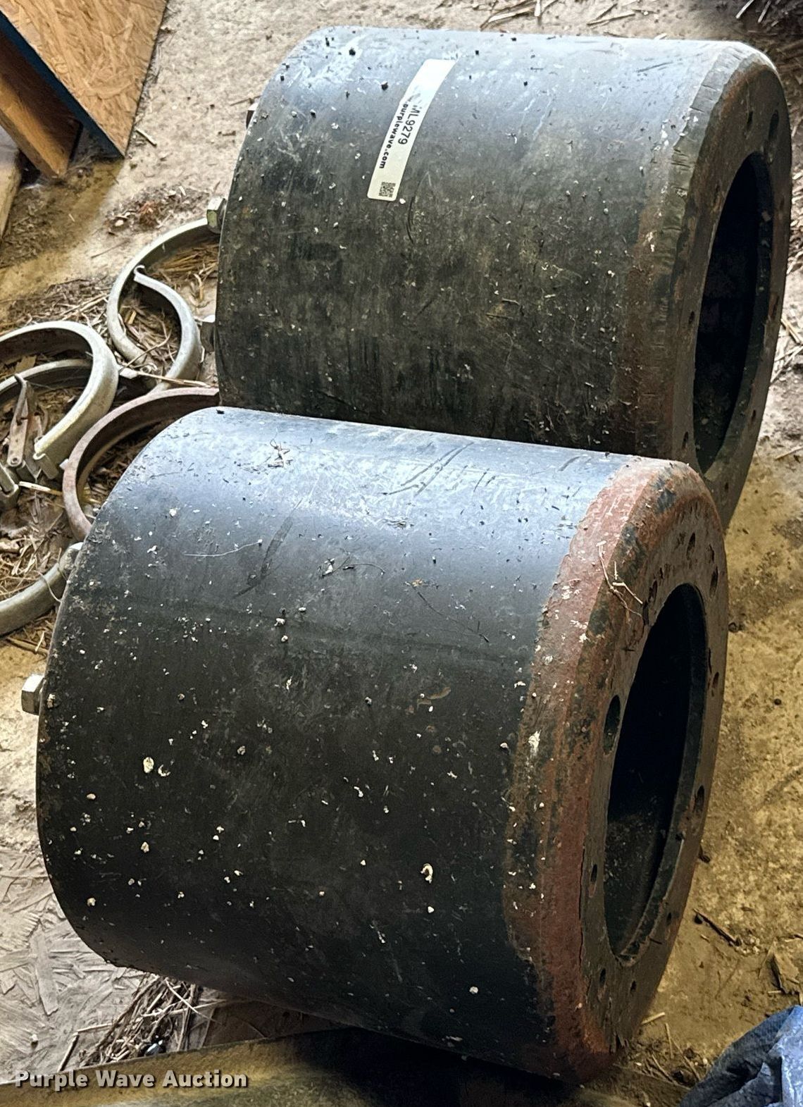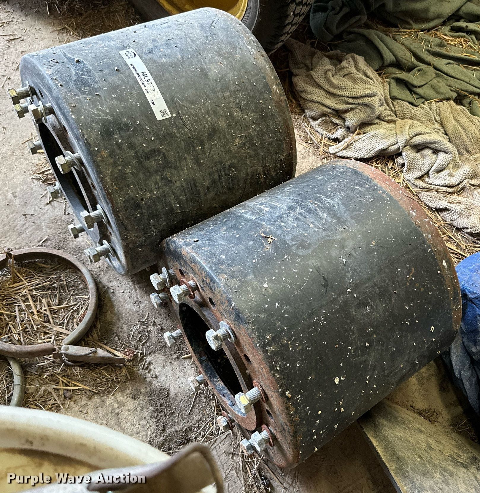 Purple Wave is selling a used Industrial Tires or Tracks in Kansas. This item is a (2) 15"W x 18" diameter hubs with the following: (2) 15"W x 18" diameter hubs. McMillin Farms. Independence, KS 67301