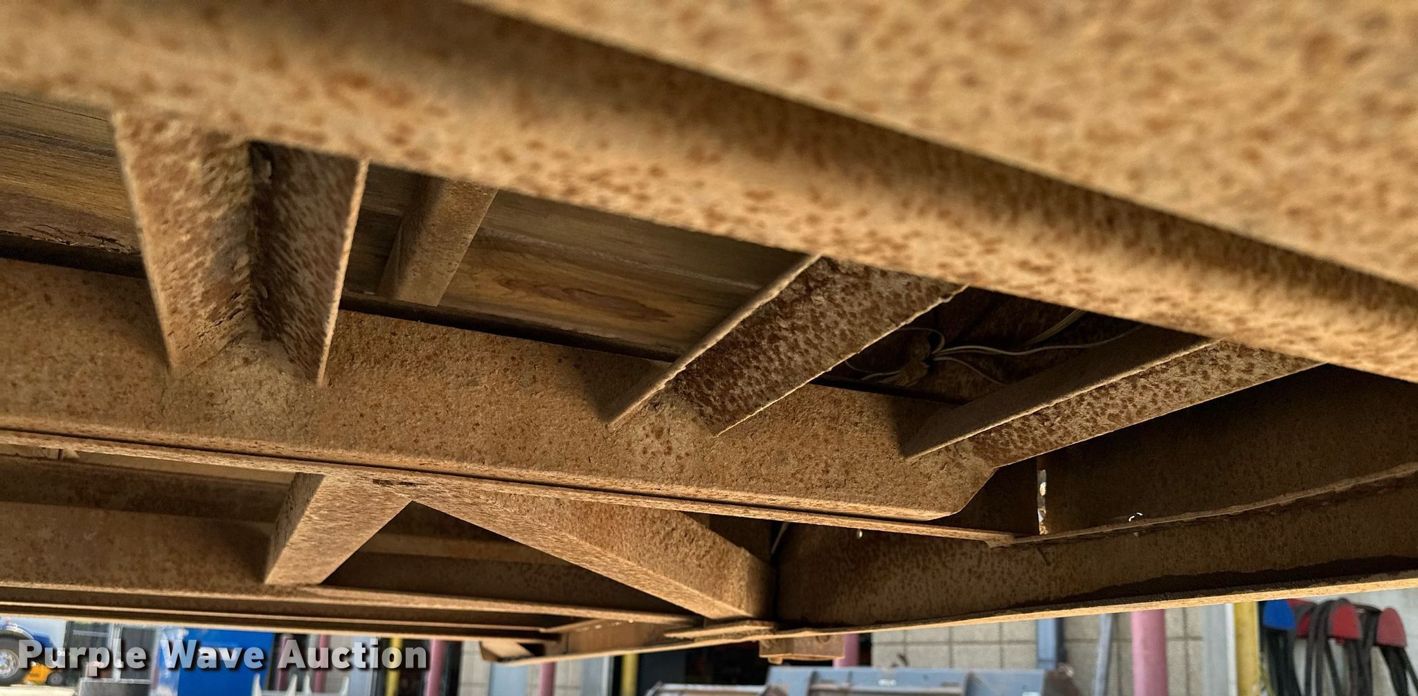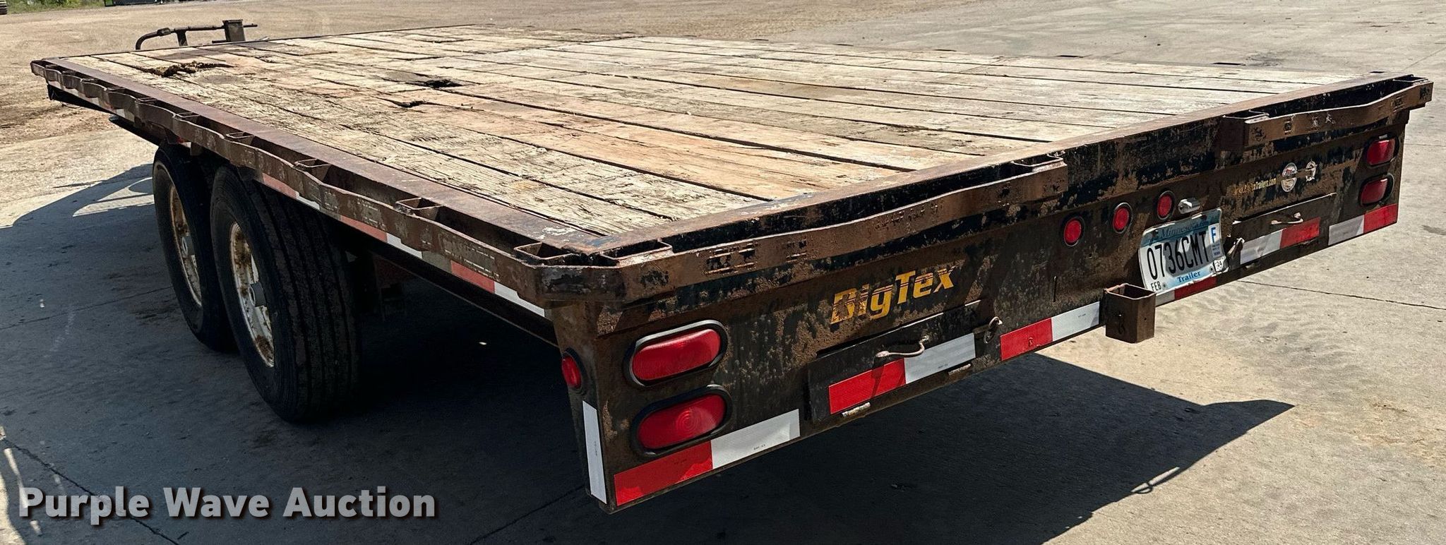 2011 Big Tex equipment trailer. VIN: 16VFX2024B2378806. Dimensions Overall: 26' L x 102" W, Deck: 20' 5" L x 102" W, Deck height: 3', Ramps: Manual Length: 5' 5". Features Deck type: Wood. Chassis Hitch: Pintle, Landing gear: Single, Suspension: Spring, Brakes: Electric, Axles: Tandem, GVWR: 12,000 lbs. Tires Steel wheels, Size: ST255/80R16. Notes One ramp missing. Minnesota title. Title distribution may be delayed up to 14 days from verification of funds. MINGER CONSTRUCTION CO., INC.. 620 Corporate Drive. Jordan, MN 55352