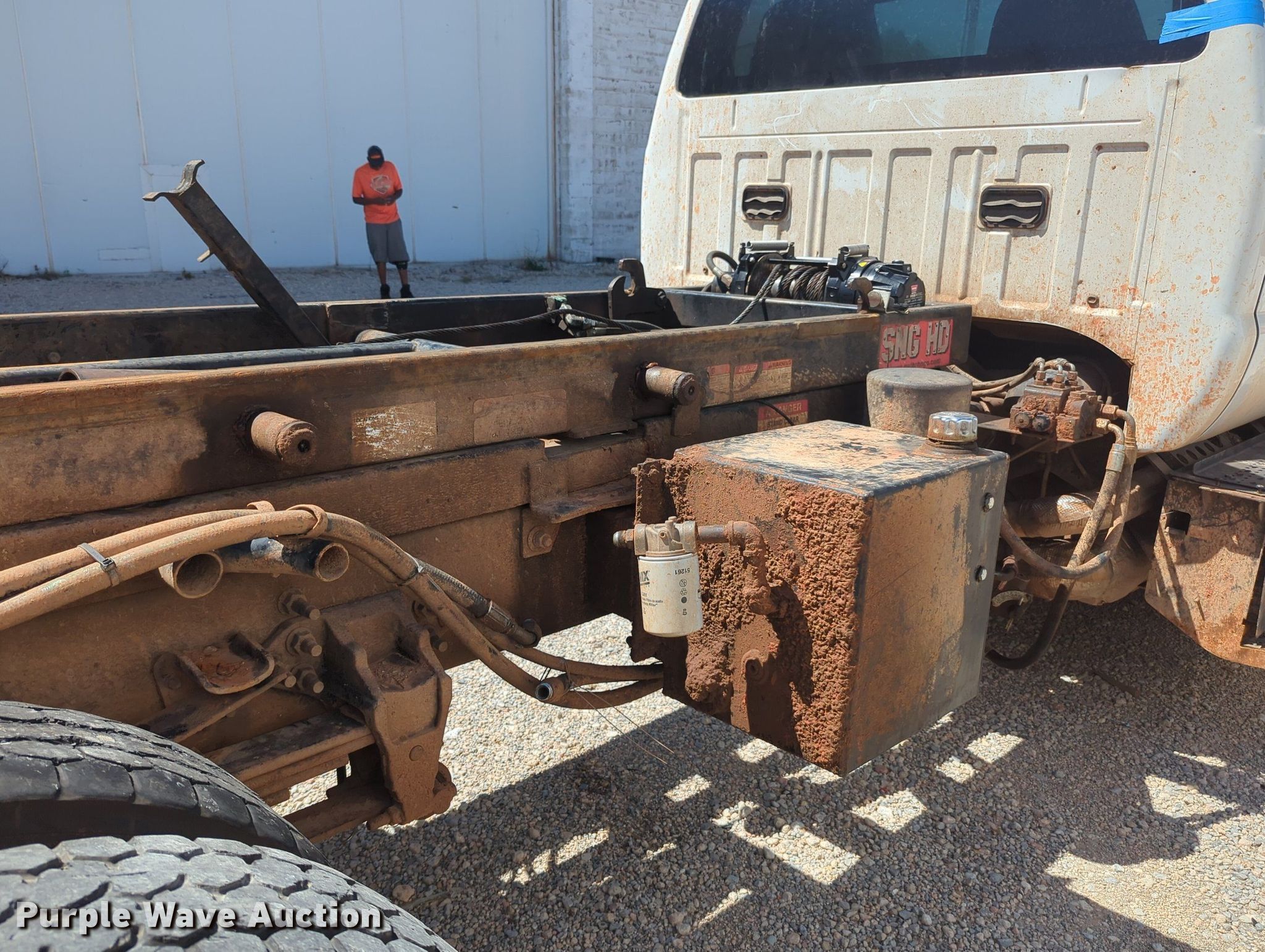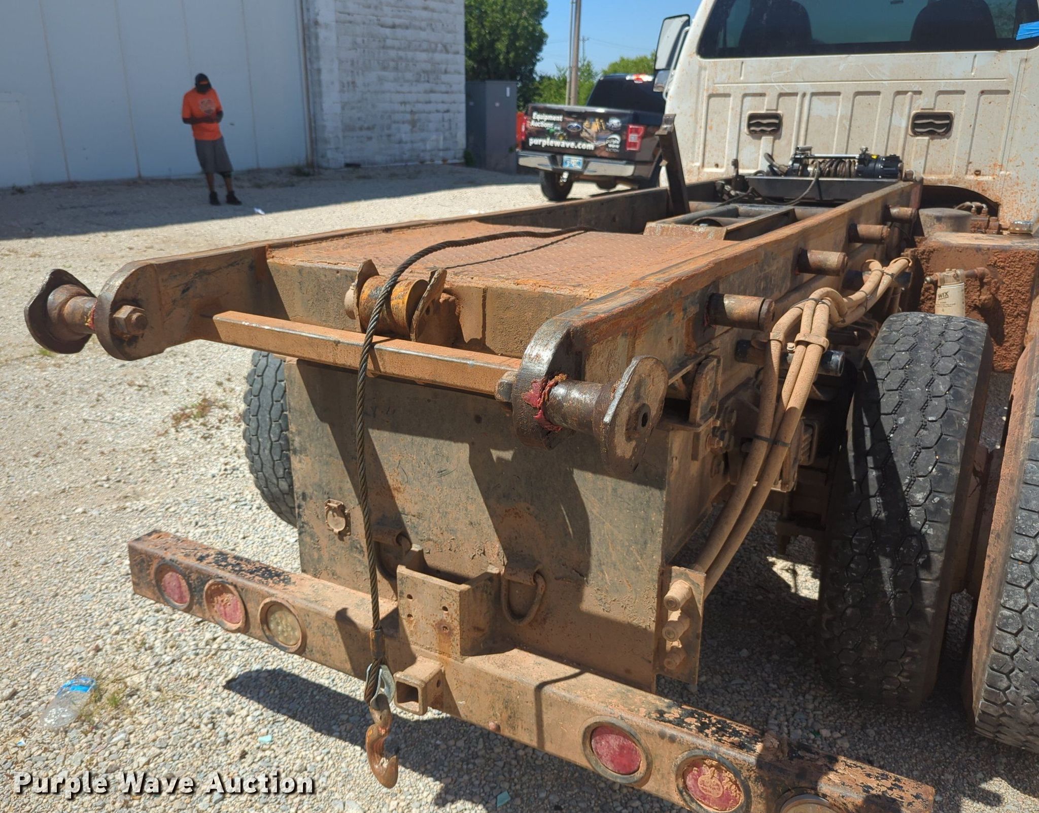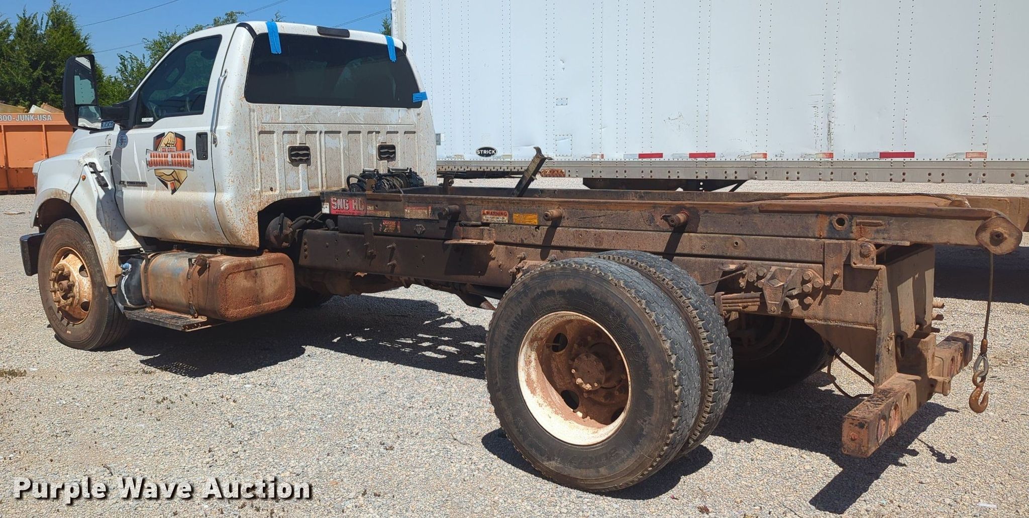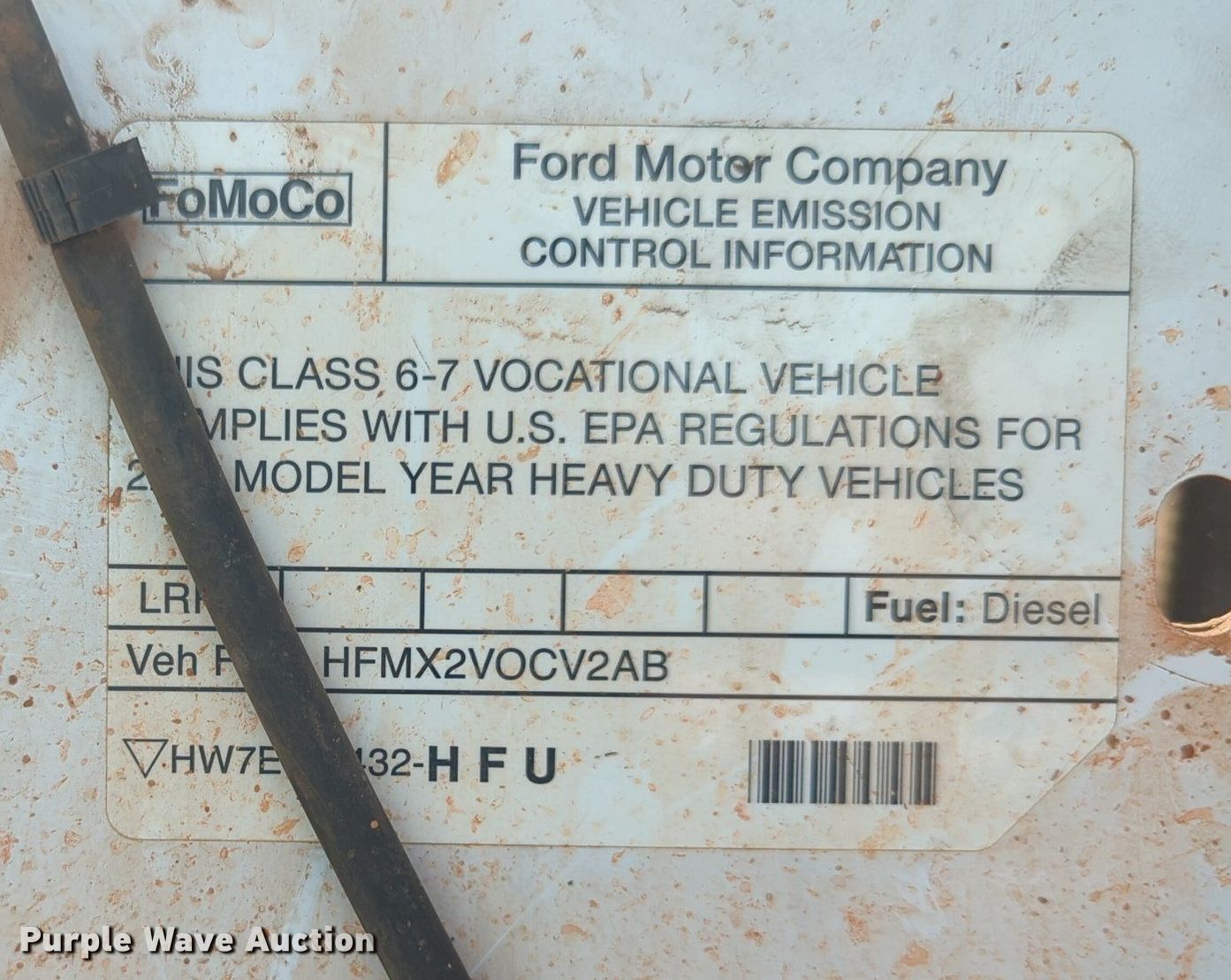 2017 Ford F650 Super Duty roll-off container truck. Miles: 165,652 on odometer, VIN: 1FDWF6DC2HDB09656. Engine Displacement: 6.7L, Cylinders: 8, Fuel type: Diesel. Transmission Automatic. Chassis Suspension: Spring, Brakes: Air, PTO. Interior AC, Heat, Cruise control, Auxiliary controls. Features Roll-off bed Switch N Go, 12' L x 36" W, Ram: Single, Winch. Tires Size: 11R22.5. Notes Dash warning indicator: Check engine, Roll-off bed disconnected. Oklahoma title. Title distribution may be delayed up to 30 days from verification of funds. On Call Junk Haul. 27 Northeast 122nd Street. Oklahoma City, OK 73114