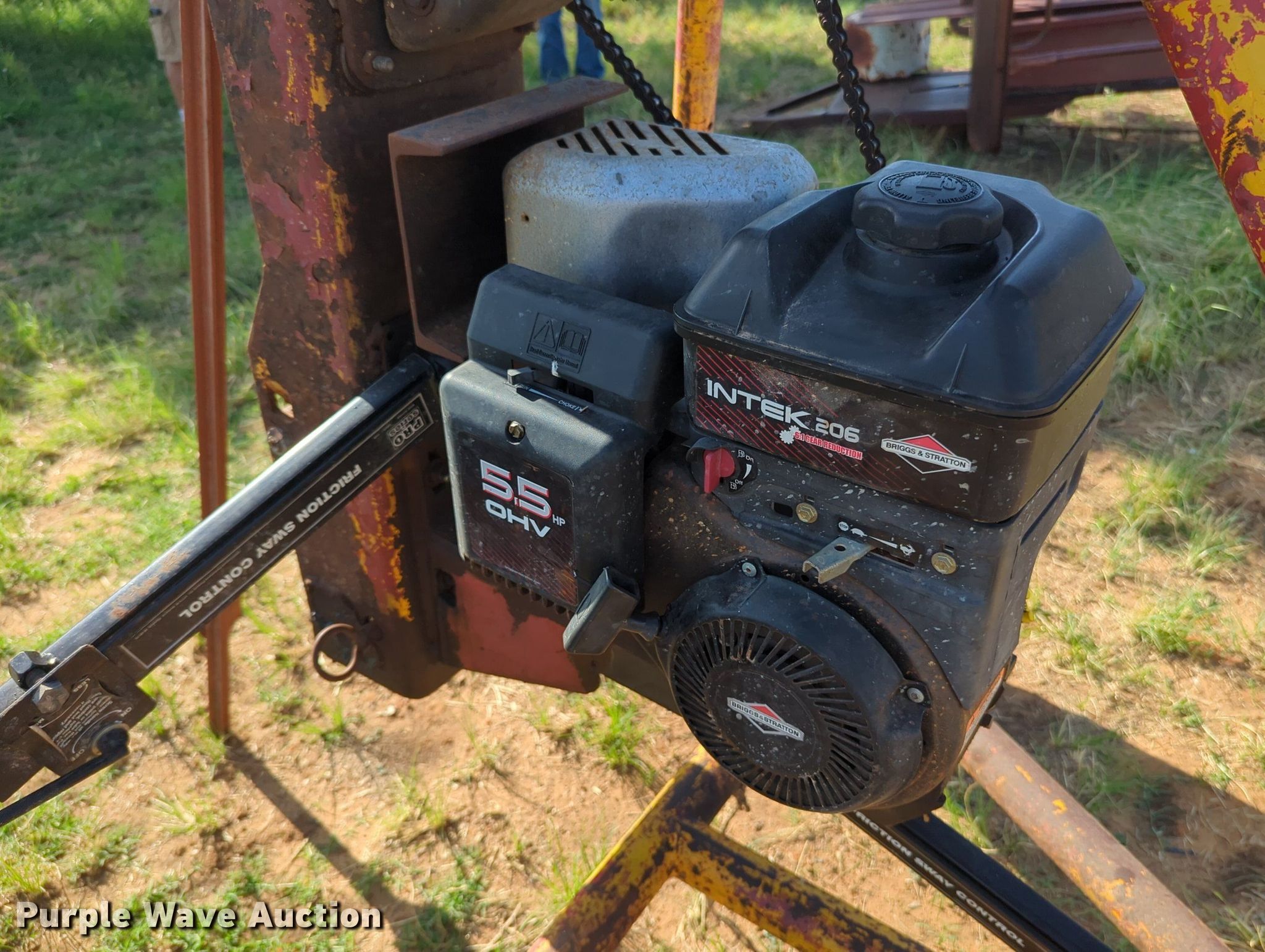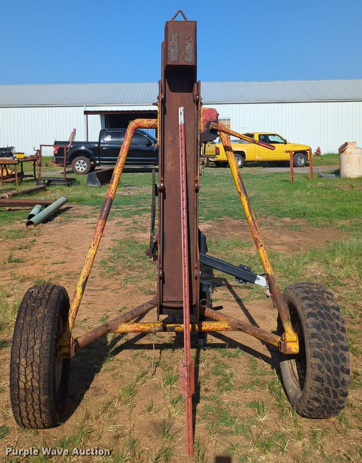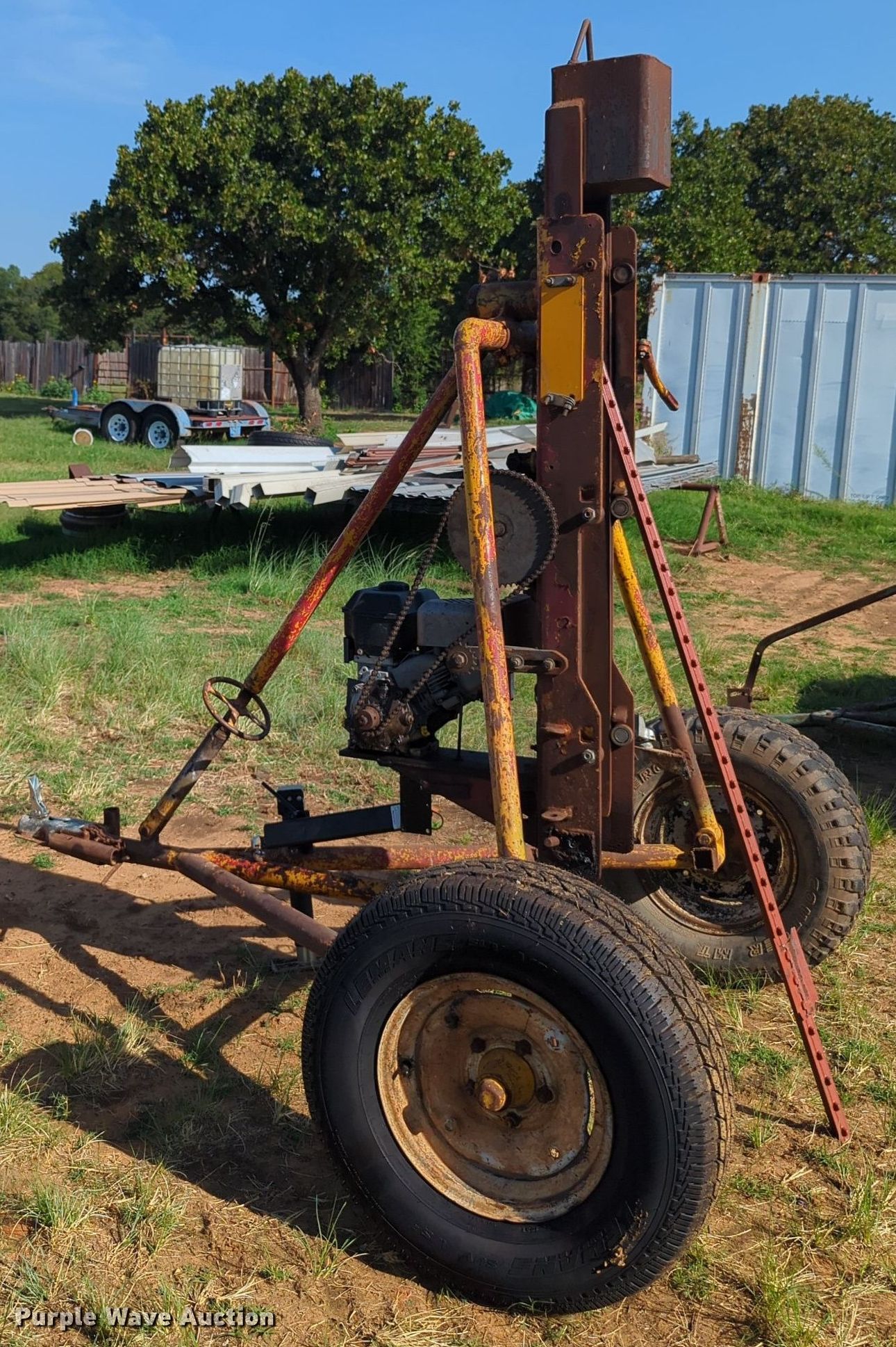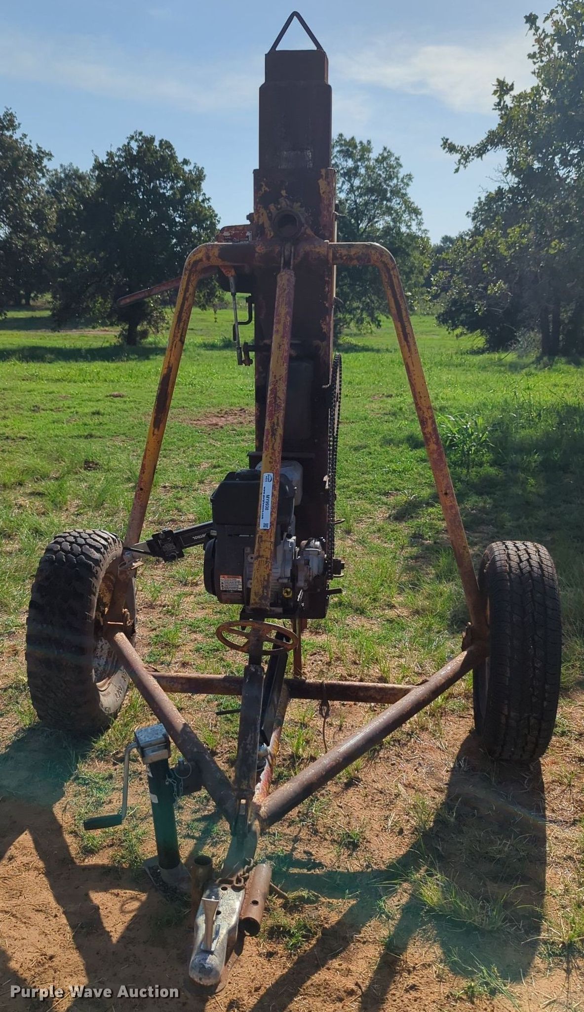 Purple Wave is selling a used Ag Equip. Other in Oklahoma. This item is a Post driver with the following: Single cylinder gas engine, Hydraulic driven, 2" ball hitch, 16" tires
