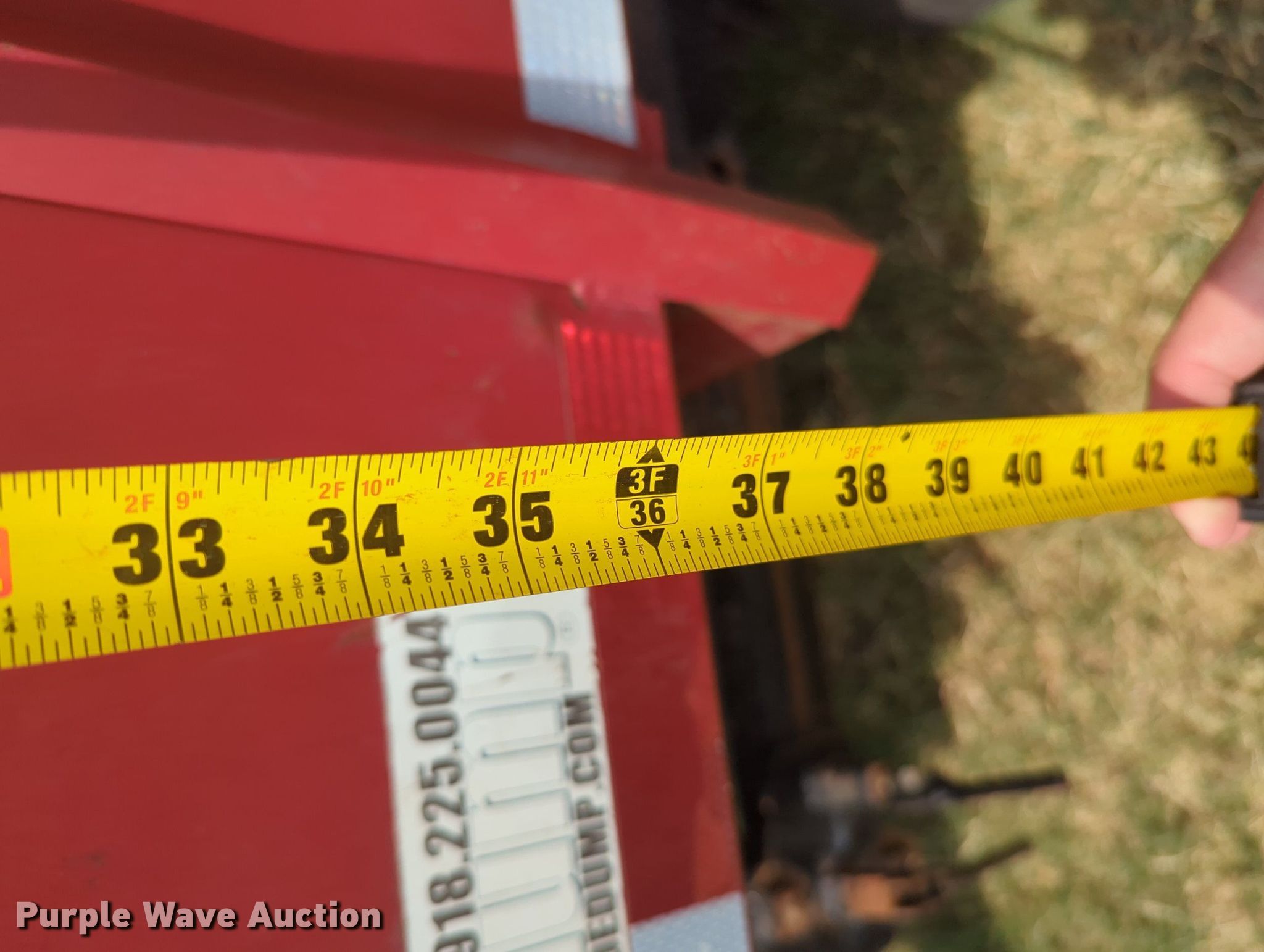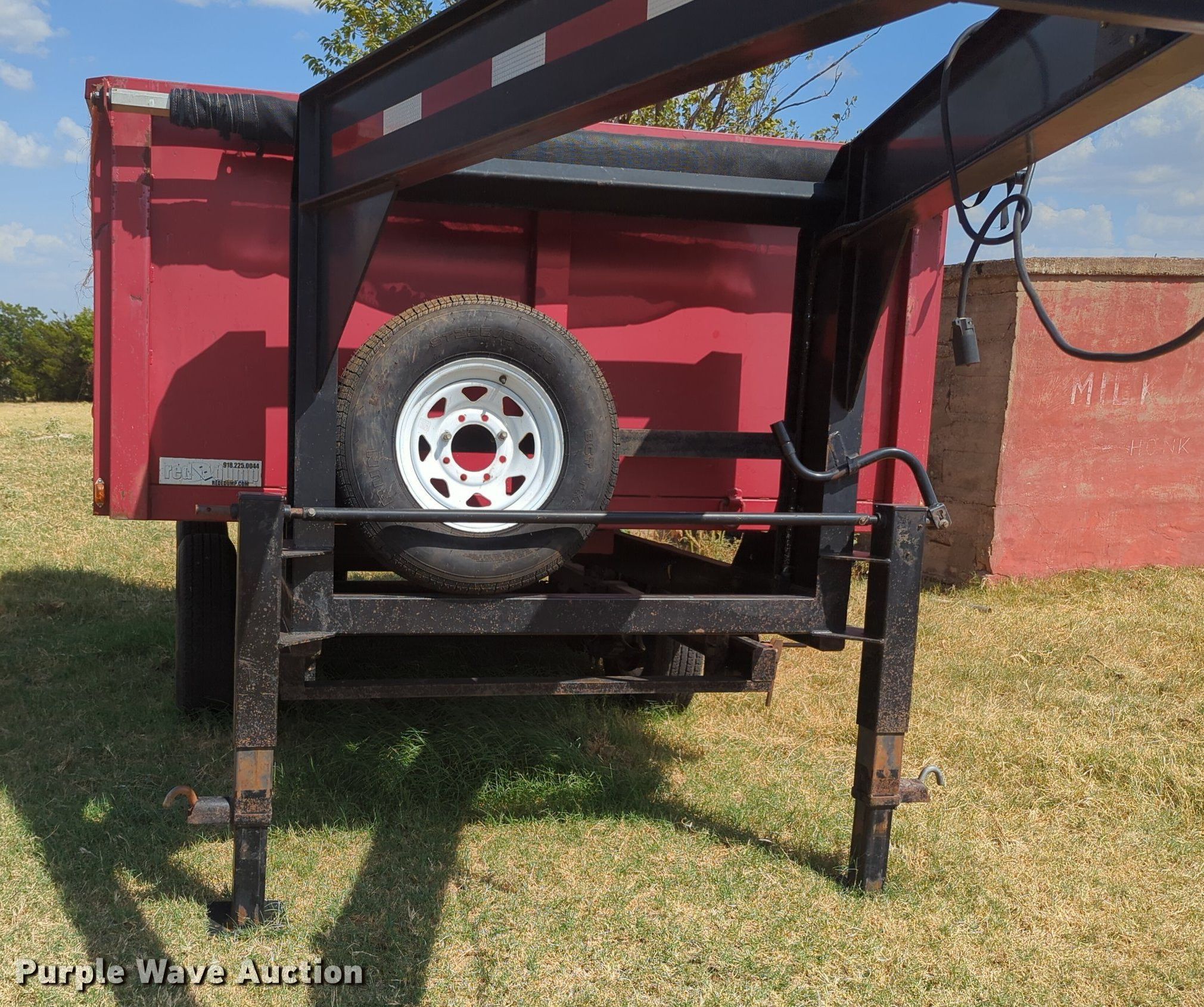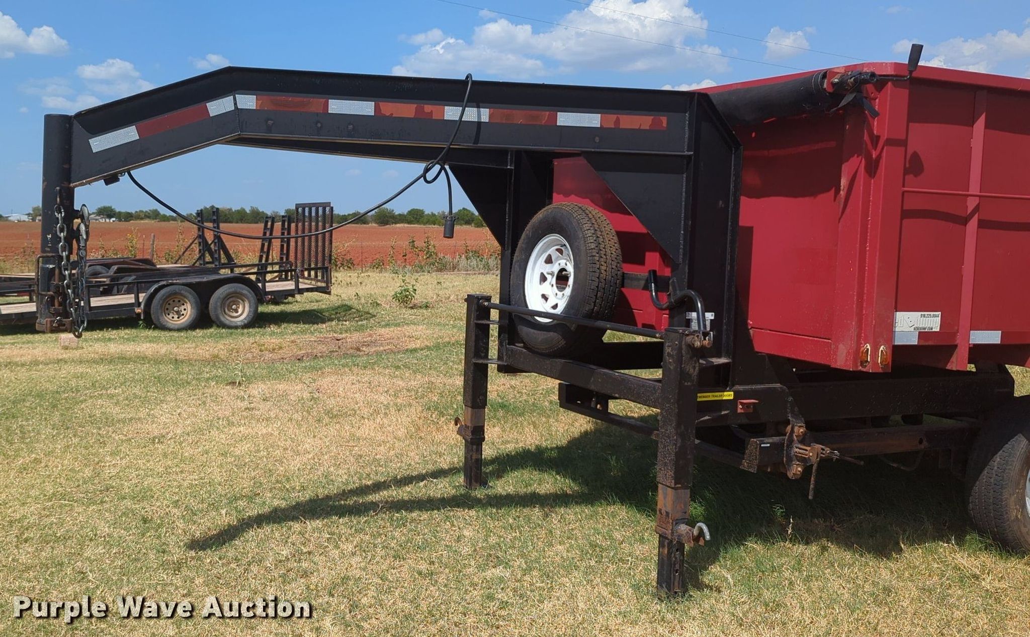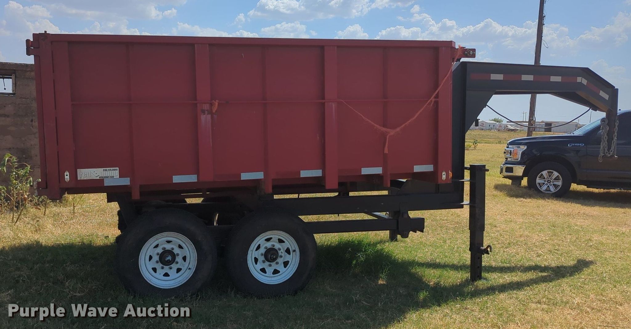 2012 All Right Steel dump trailer. VIN: 1A9HD2020CC857099. Dimensions Overall: 19' L x 102" W, Body: 10' L x 102" W, Sideboard height: 36". Features Body type: Steel, Ram: Single, End gate: Manual Grain door. Chassis Hitch: Gooseneck, Landing gear: Dual, Suspension: Spring, Brakes: Electric, Axles: Tandem, GVWR: 14,000 lbs. Tires Size: 225/80R16. Transfer of ownership documentation will be a bill of sale. 5102 SW 11th St. Lawton, OK 73501