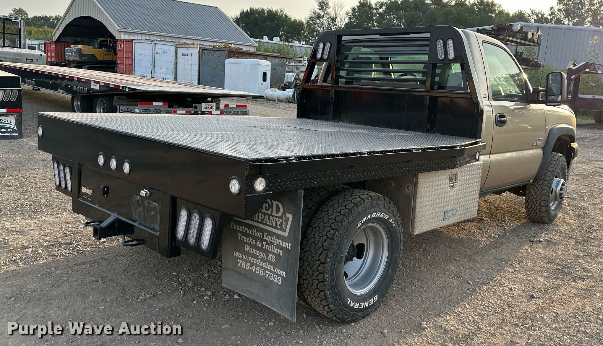 2004 Chevrolet Silverado 3500HD flatbed pickup truck. Miles: 171,917 on odometer, VIN: 1GBJK34124E130992. Engine Displacement: 6.6L V8 OHV, Cylinders: 8, Fuel type: Diesel. Transmission Automatic, Four wheel drive. Interior AC, Heat, Cruise control. Features Flatbed Parkhurst , 8' L, Hitch: Gooseneck. Tires Size: LT235/85R16. Notes Fuel gauge issue. Kansas title. Title distribution may be delayed up to 14 days from verification of funds. Reed Company, LLC. 4455 N.K. 99. Wamego , KS 66547