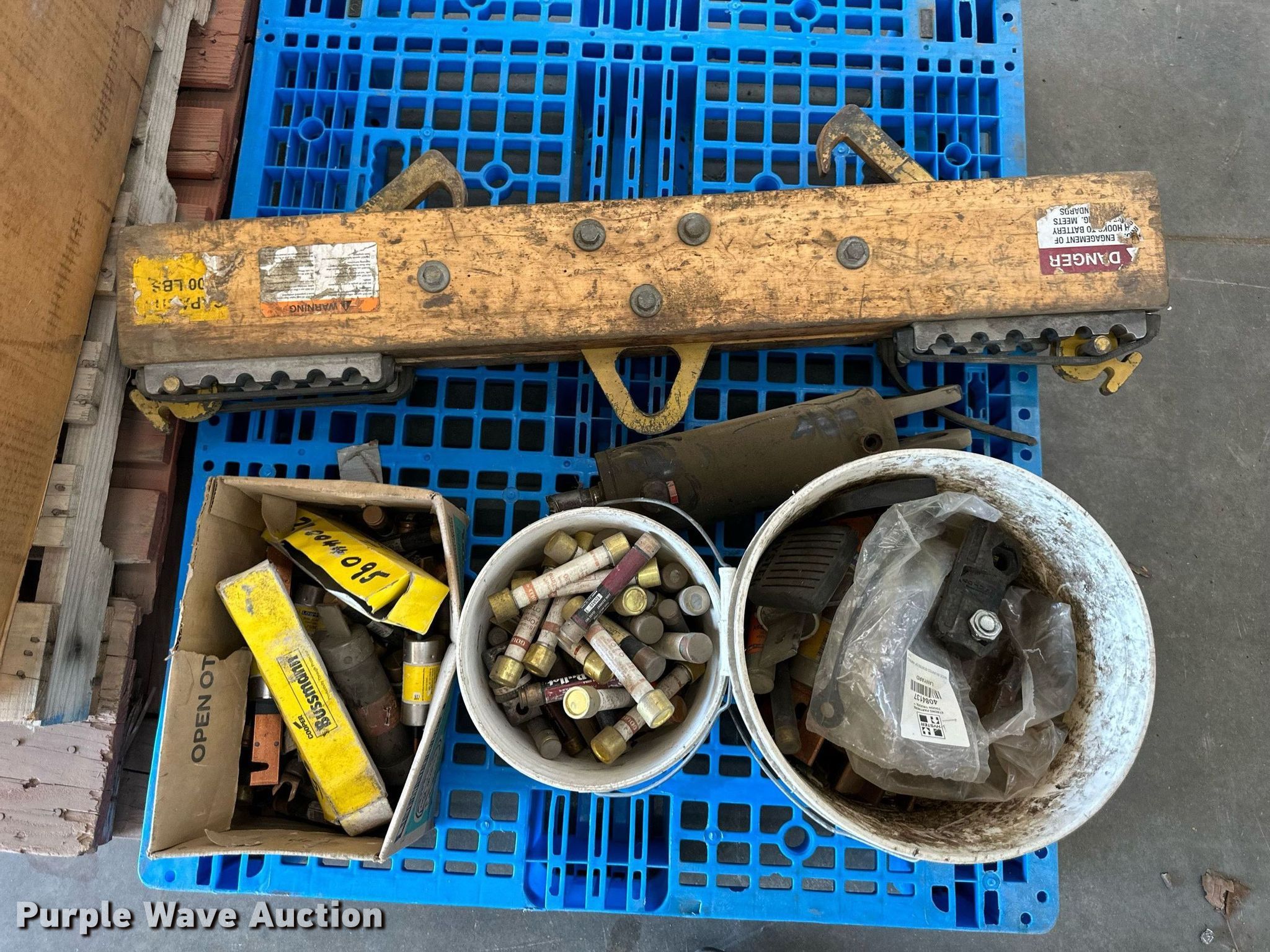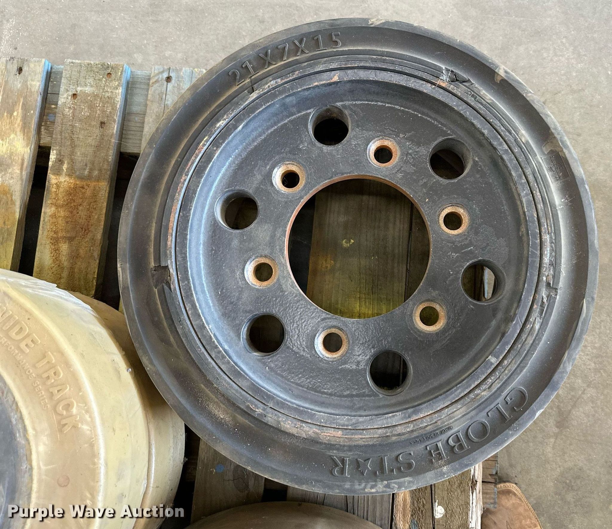 Purple Wave is selling a used Forklift Attach. in Kansas. This item is a Forklift parts with the following: Hyster, Yale, Filing Scale, Toledo scale, Hoses, Tires and more