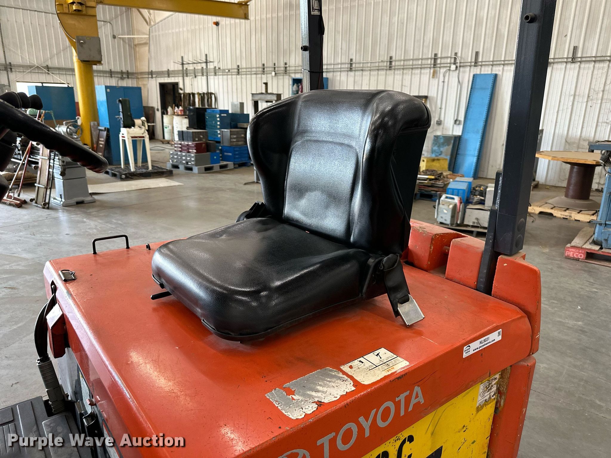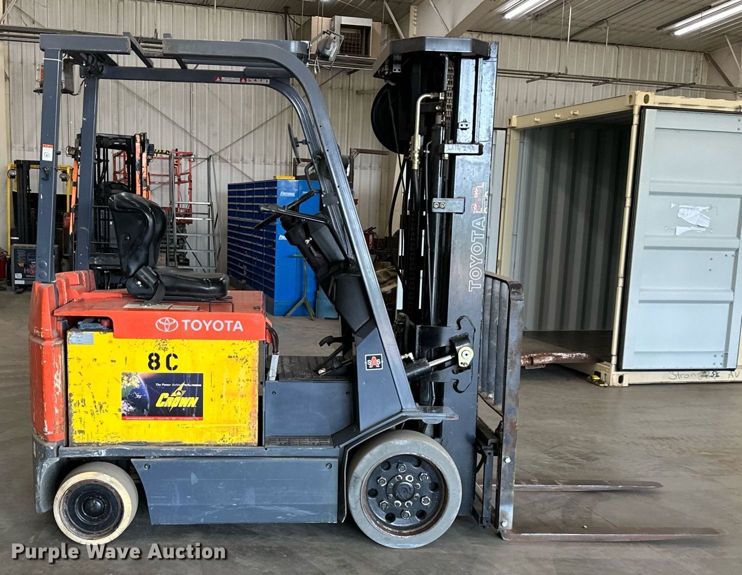 Purple Wave is selling a used Warehouse Forklift in Kansas. This item is a Toyota 7FBCHU25 forklift with the following: Hours: 549 on meter, Serial: 60395