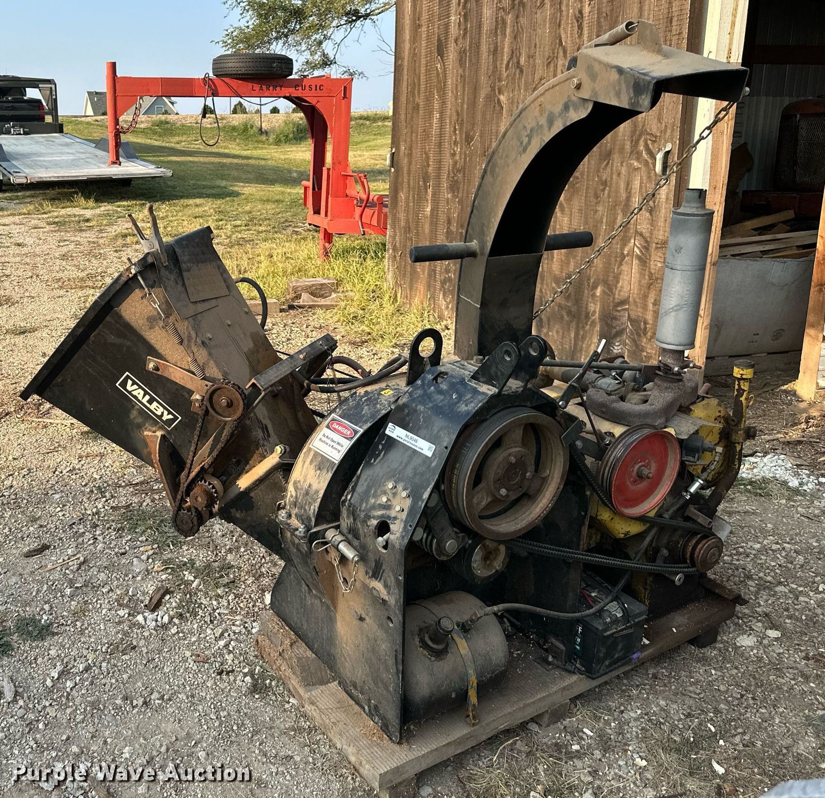 Valby LC400 wood chipper. Serial: 40003301045. Engine Wisconsin , Cylinders: 4, Fuel type: Gas. Features Capacity: 2.5", Throat opening: 22" x 22", Auto feed. 1222 Deep Creek Road. Manhattan, KS 66502
