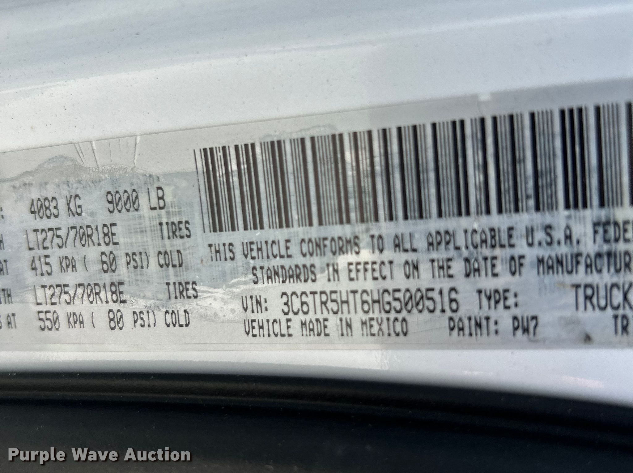 - VIN: 3C6TR5HT6HG500516