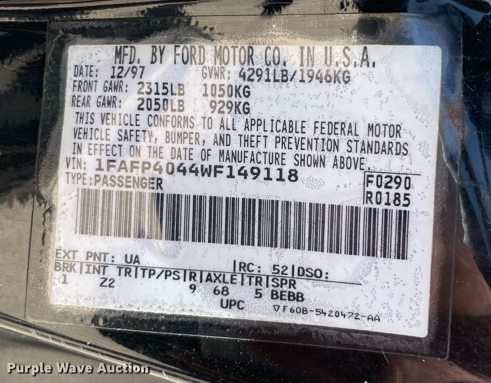Purple Wave is selling a used Passenger Vehicle in Oklahoma. This item is a 1998 Ford Mustang with the following: Miles: 152,748 on odometer, VIN: 1FAFP4044WF149118