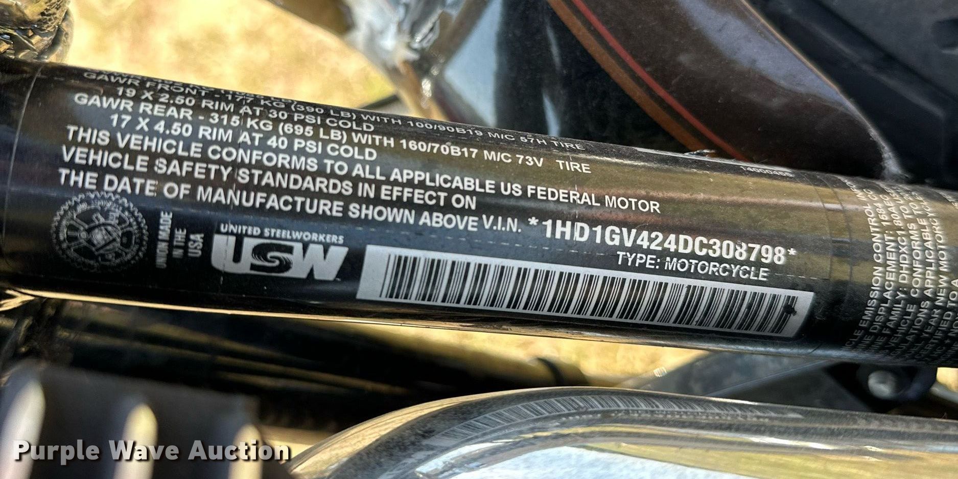 Purple Wave is selling a used Motorcycle in Oklahoma. This item is a 2013 Harley Davidson Dynaglide motorcycle with the following: Miles: 3,457, VIN: 1HD1GV424DC308798