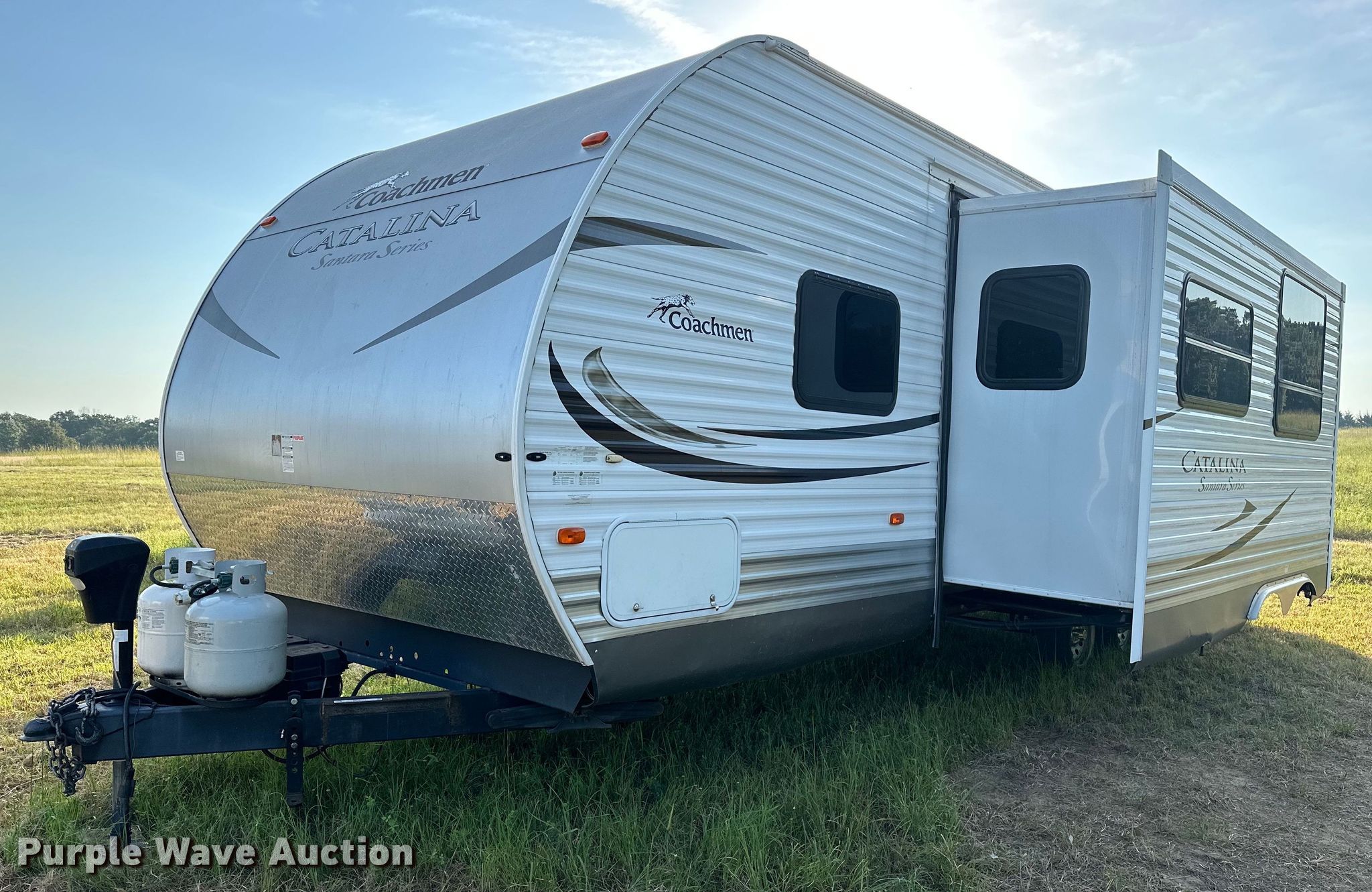 Purple Wave is selling a used RV or Camper in Oklahoma. This item is a 2014 Forest River Coachmen Catalina Santara camper with the following: Camper length: 27', VIN: 5ZT2CASB7EA016927, Claim #: 3-806576