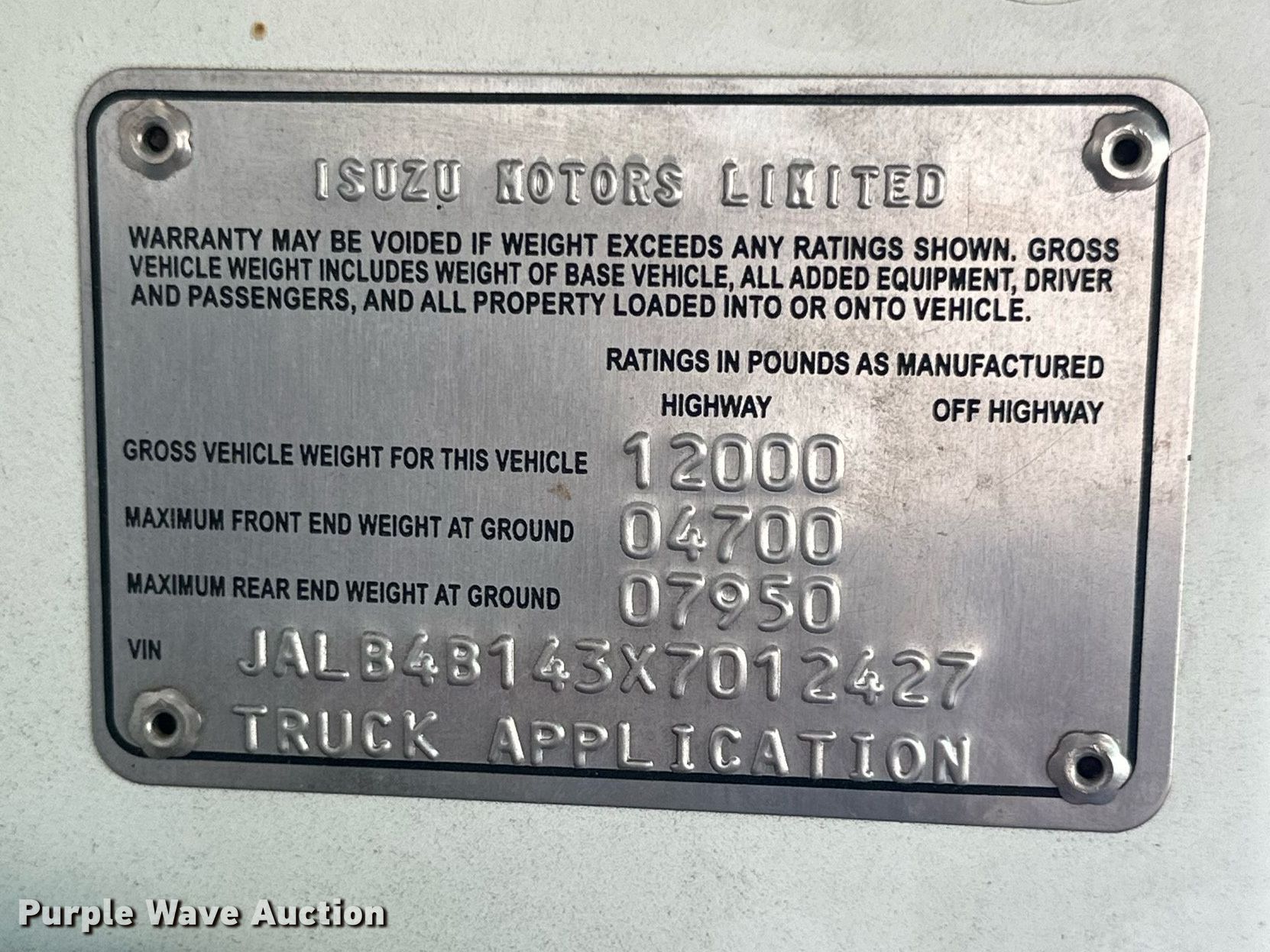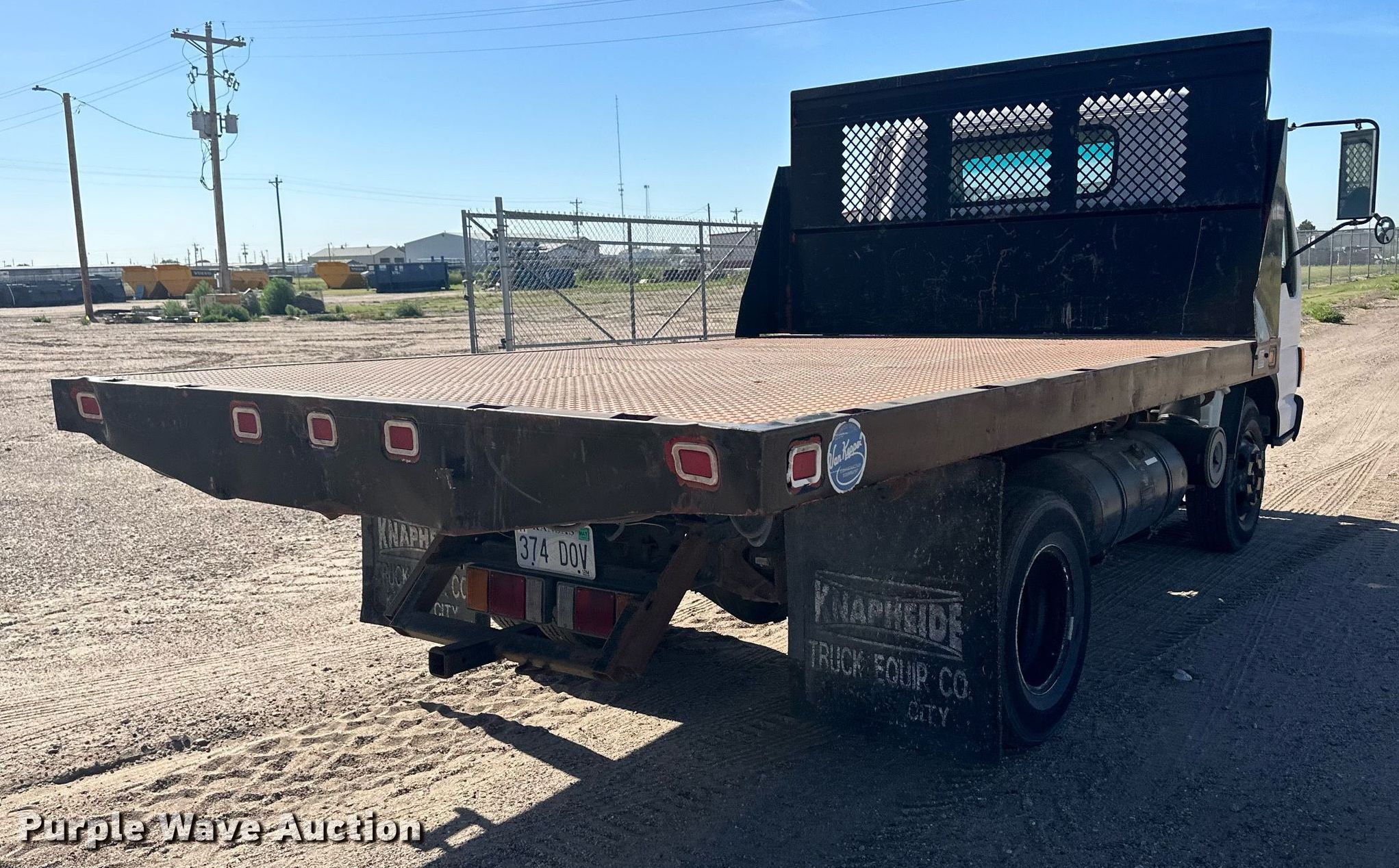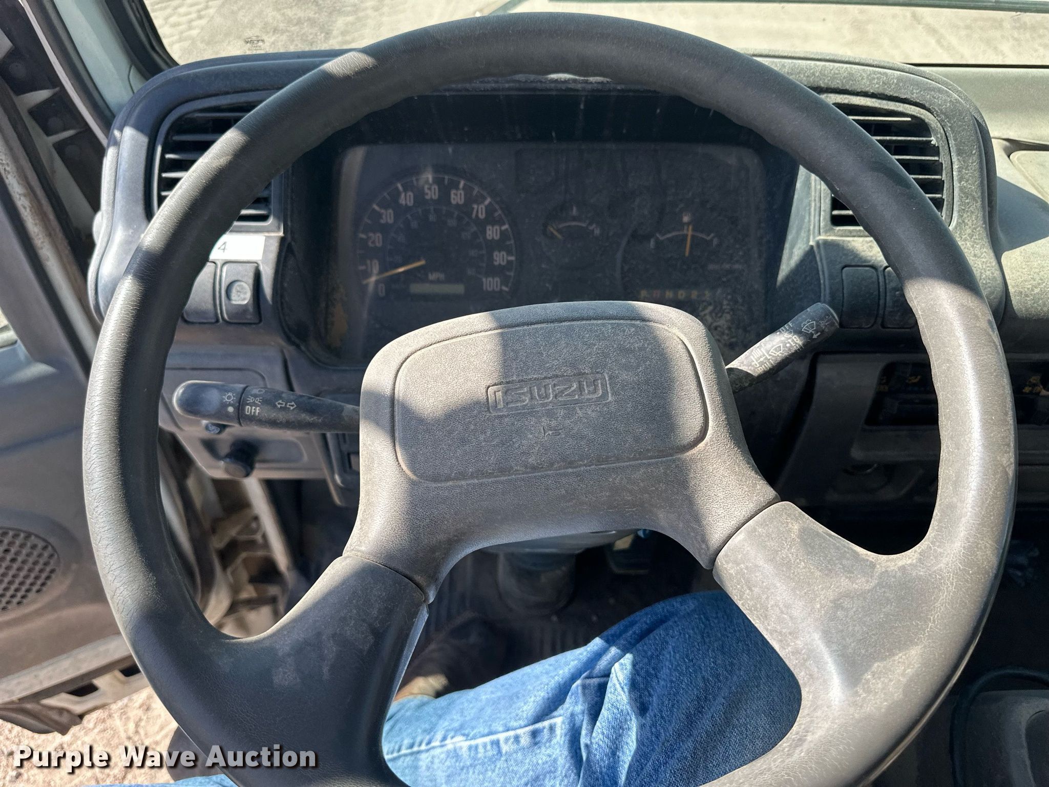 1999 Isuzu NPR dump flatbed truck. Miles: Unknown, VIN: JALB4B143X7012427. Engine Isuzu, Cylinders: 4, Fuel type: Diesel. Transmission Automatic. Chassis Axles: Single, Suspension: Spring, Brakes: Hydraulic. Interior AC, Heat. Features Dump flatbed Knapheide, 12' L x 96" W. Tires Front: 215/85R16. Notes Non-operational odometer, Non-operational AC, belt missing, Battery needs replaced. Kansas title. Mileage has not been verified. Exempt will be written in the odometer disclosure on the title. G.W. Van Keppel Company. 4250 East Commerce Drive. Garden City, KS 67846