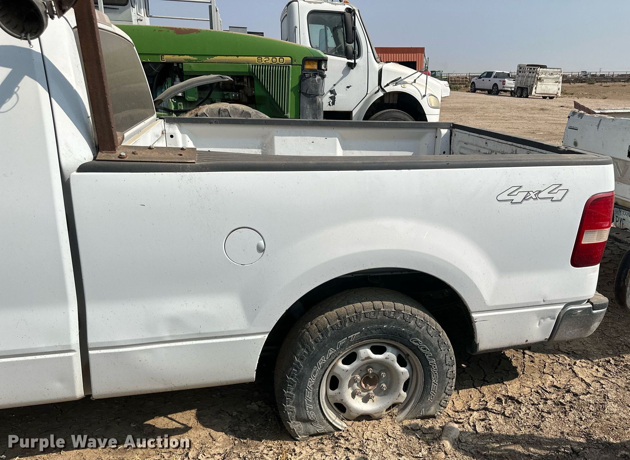 2007 Ford F150 SuperCab pickup truck. Miles: Unknown, VIN: 1FTRX14W97FB90914. Engine Displacement: 4.6L V8 SOHC, Cylinders: 8, Fuel type: Gas. Transmission Automatic, Four wheel drive. Interior AC, Heat, Seat: Power driver, Power windows, Power locks, Cruise control. Tires Size: 265/70R17. Notes Battery missing, Flat tires, Unknown operating condition. Kansas title. Mileage has not been verified. Odometer discrepancy will be marked on the title. Title distribution may be delayed up to 14 days from verification of funds. Cobalt Cattle Company. 1291 Old Santa Fe Drive. Sublette, KS 67877
