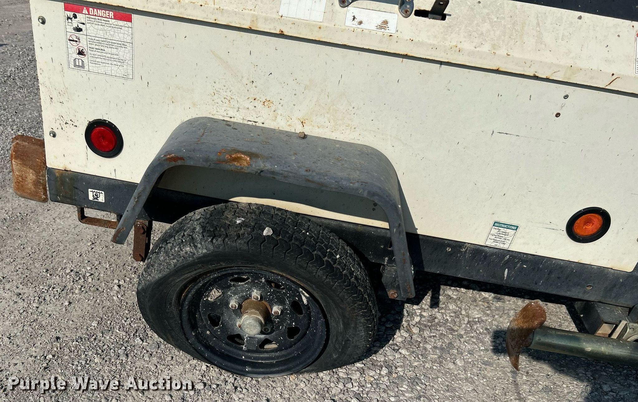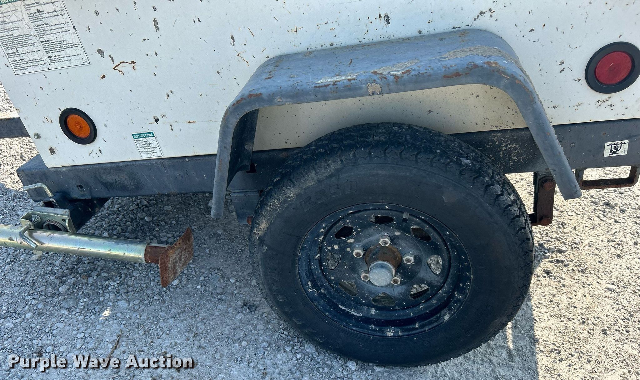 2012 Terex RL4 light plant. Hours: 2,619 on meter, VIN: 4ZJSL1416C1002498, Serial: RL412-2498. Engine Kubota D1105, Displacement: 1.1L, Cylinders: 3, Fuel type: Diesel, kW: 12.6. Features Generator Pancake 301CSA5411, kVA: 6, kW: 6, Phase: Single, Electric start, Light plant Bulbs: 4, Watts: 1,000, Hoist: Manual, Stabilizers. Trailer Ball hitch size: 2", Suspension: Spring, Brakes: Electric, Axles: Single, Tire size: ST175/R14. Notes Non-operational unit. Transfer of ownership documentation will be a bill of sale. Cantera Concrete Company. 5601 South 122nd East Avenue. Tulsa, OK 74146