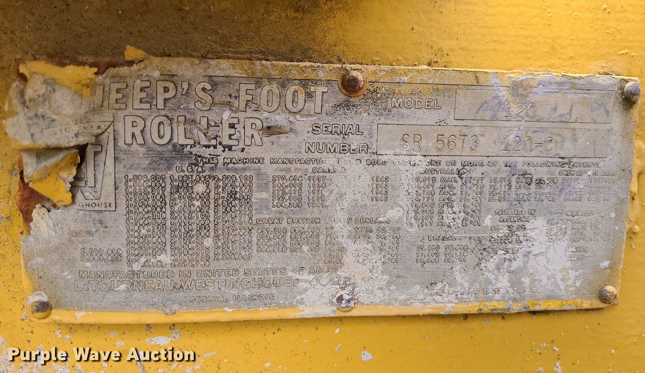 Purple Wave is selling a used Pull Type Roller Compactor in Missouri. This item is a Westinghouse 120 wedge foot roller with the following: Serial: SR5673120C