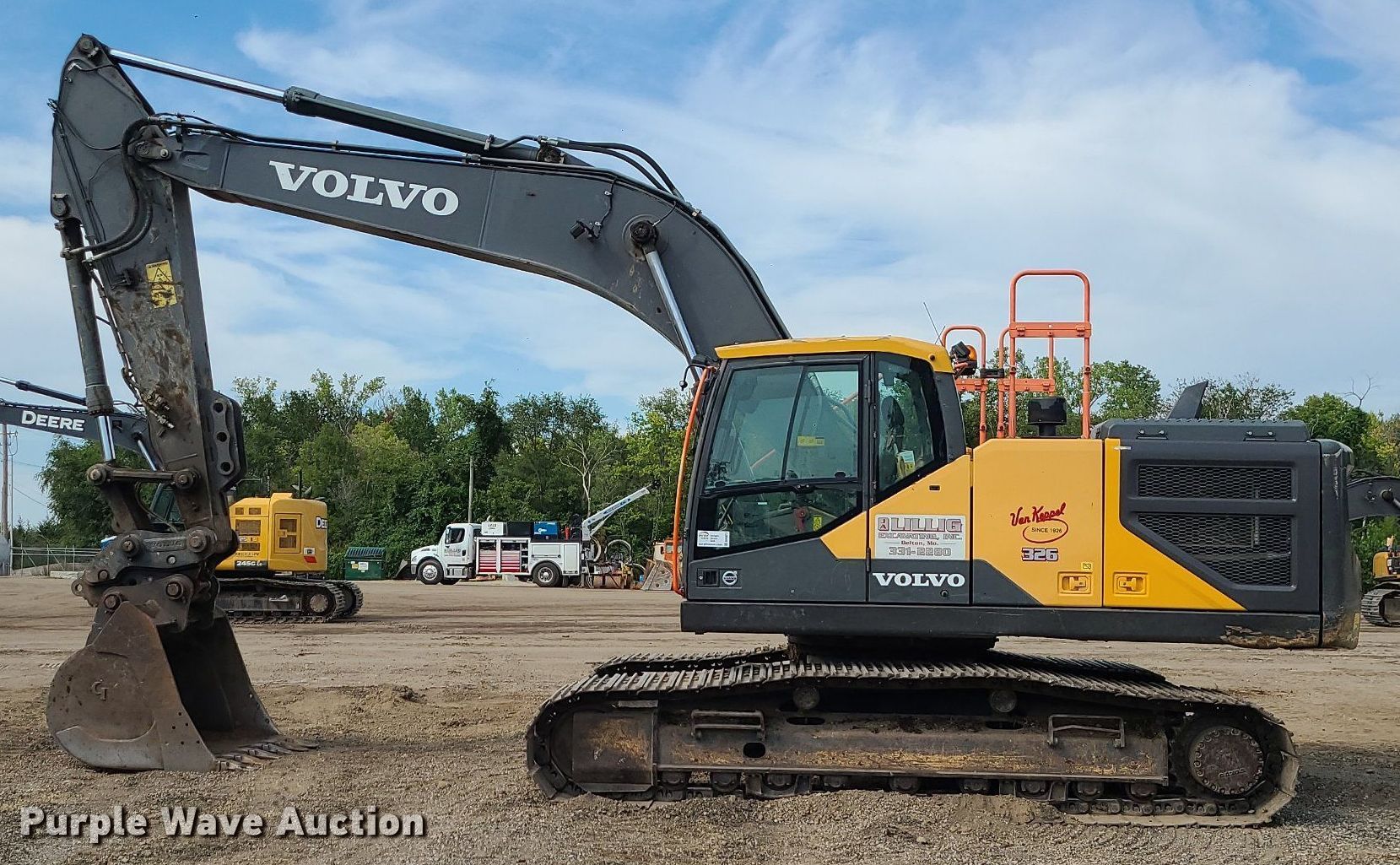 2017 Volvo EC250EL excavator. Hours: 5,786 on meter, Serial: VCEC250EH00310367. Engine Volvo D8U, Serial: 11980592, Displacement: 7.755L , Cylinders: 6, Fuel type: Diesel, HP: 215. Transmission Hydrostatic. Operators station Enclosed cab, AC, Heat. Features Auxiliary hydraulics, Boom Standard, Stick Stick length: 120", Quick coupler: Hydraulic Volvo, Bucket Width: 54", Teeth: 6. Tracks Width: 32", Steel, Grouser pads: Triple. Notes Glass cracked. J.A. Lillig Excavating, Inc. - Open inspection Sept. 22 and 27. 4507 Blue Ridge Cutoff. Kansas City, MO 64133