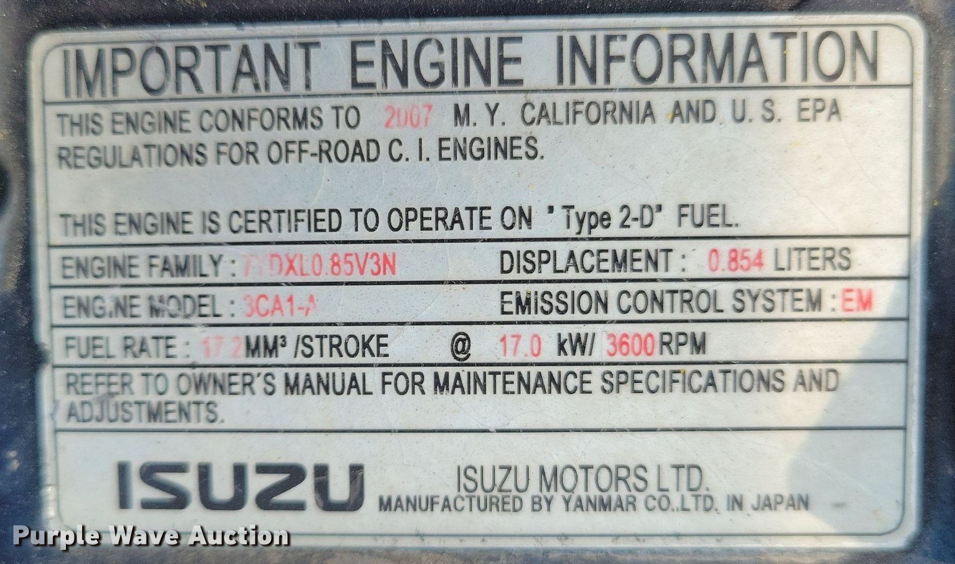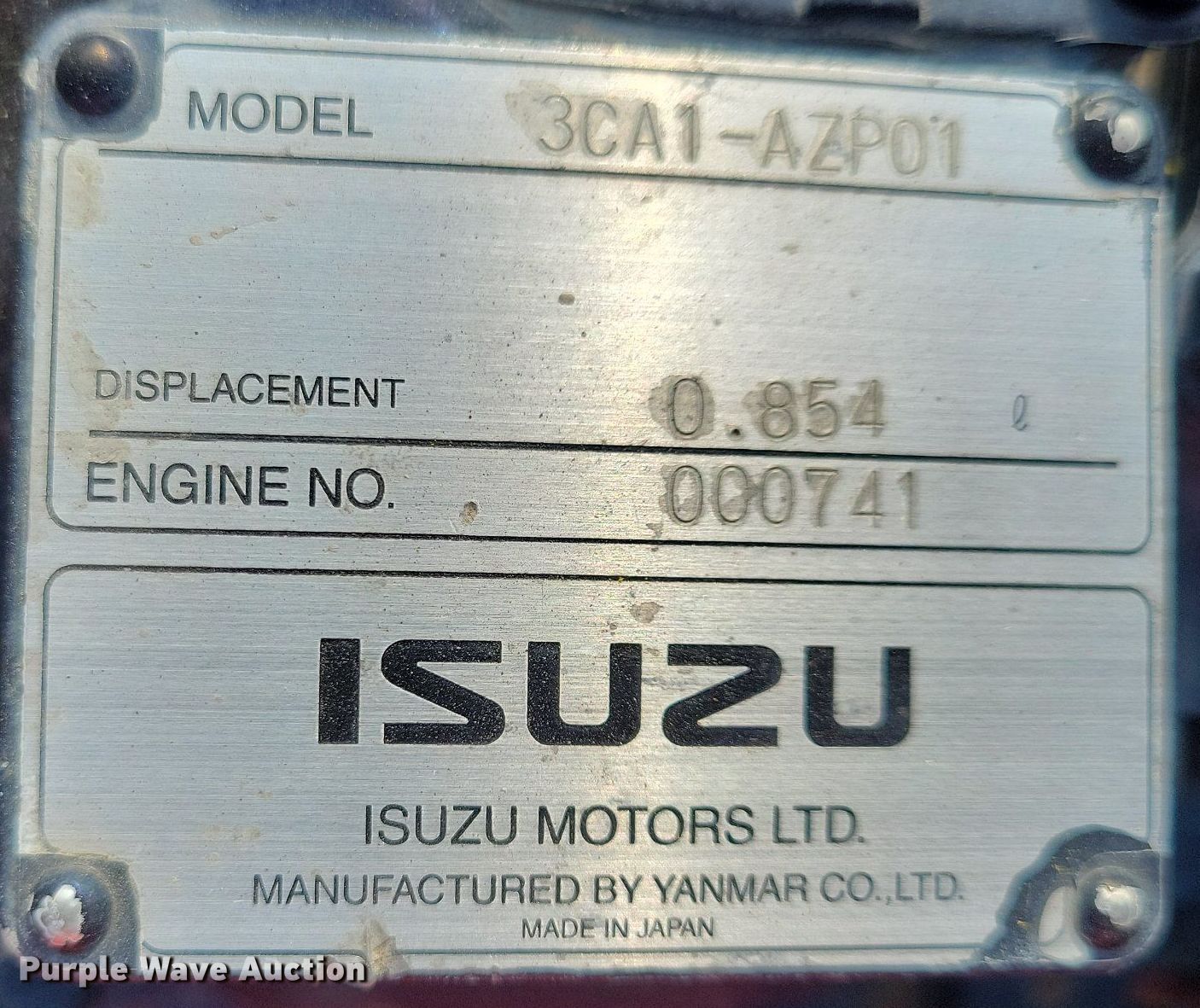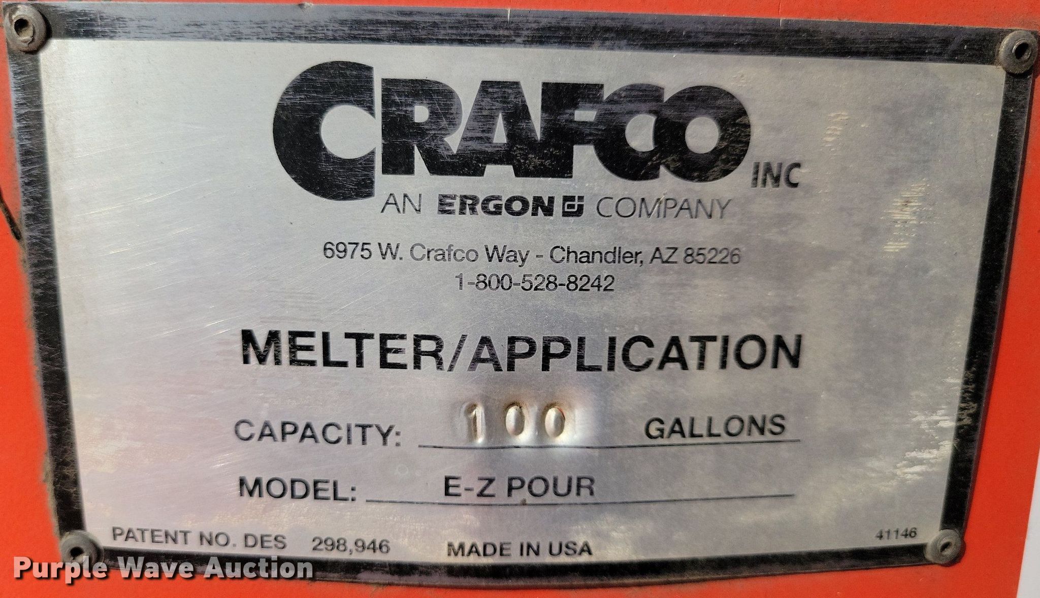 2009 Crafco EZ Pour 100 D pothole patcher. Hours: 4,346 on meter, Serial: 1C9EK0914914181. Engine Isuzu 3CA1-AZP01, Serial: 000741, Displacement:.854L, Cylinders: 3, Fuel type: Diesel, kW: 17. Features Capacity: 100 gal. Tires Size: 225/75R15. Transfer of ownership documentation will be a bill of sale. Logan Contractors Supply, Inc.. 4101 106th St. Des Moines, IA 50322