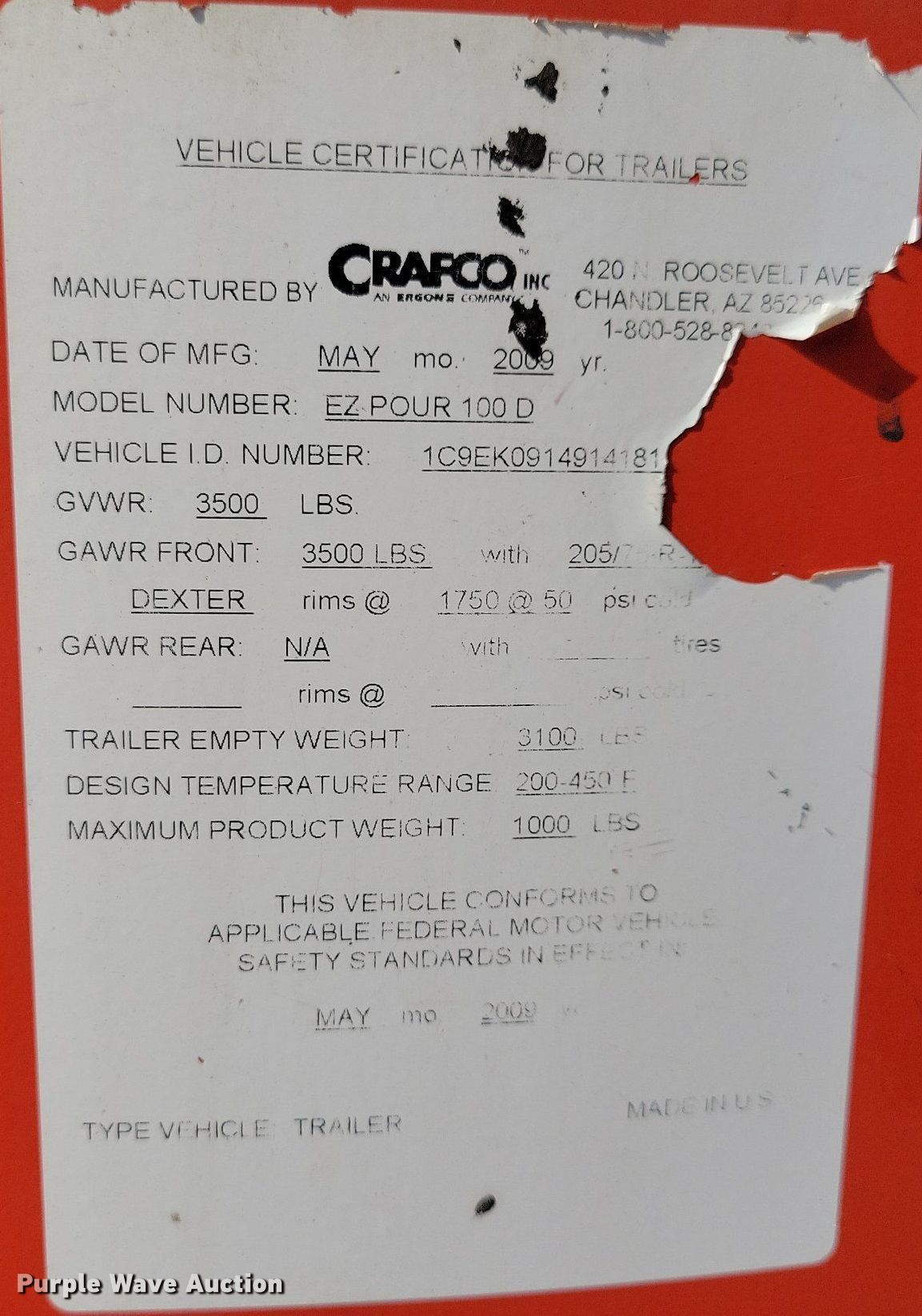 Purple Wave is selling a used Pot Hole Patcher in Iowa. This item is a 2009 Crafco EZ Pour 100 D pothole patcher with the following: Hours: 4,346 on meter, Serial: 1C9EK0914914181