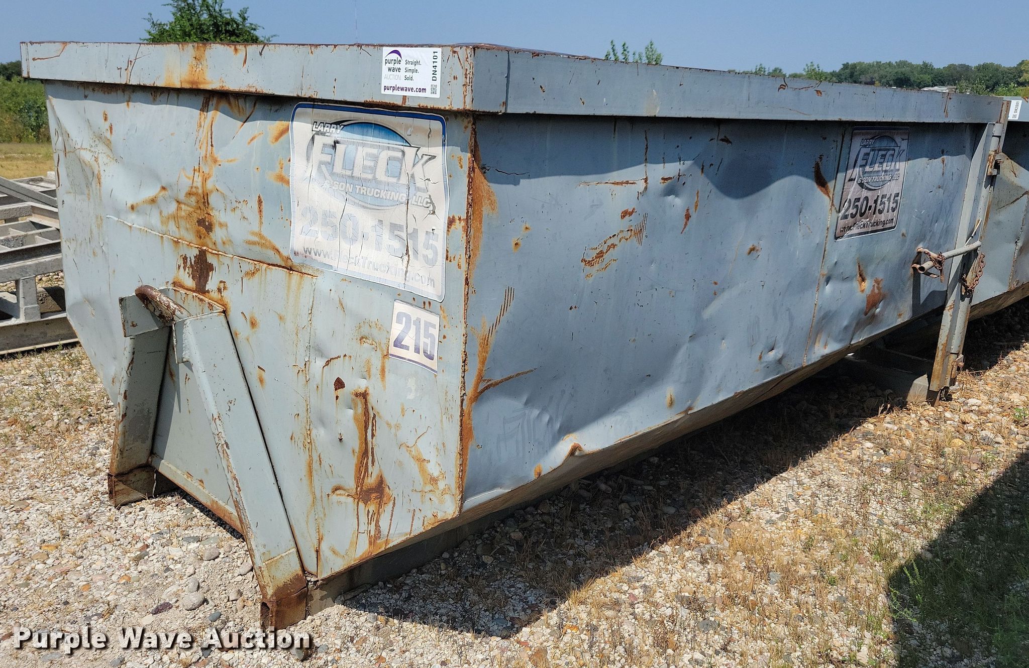 Roll-off dumpster. Dimensions: 8' L x 12' W, Capacity: 15 cu.yd.. Larry Fleck & Son Trucking, LLC. 1455 S Pleasant Hill Blvd. Des Moines, IA 50327