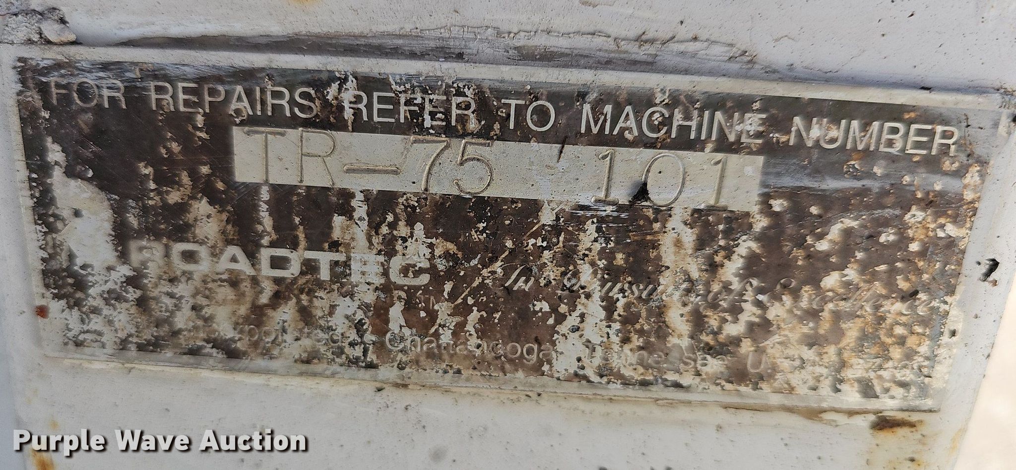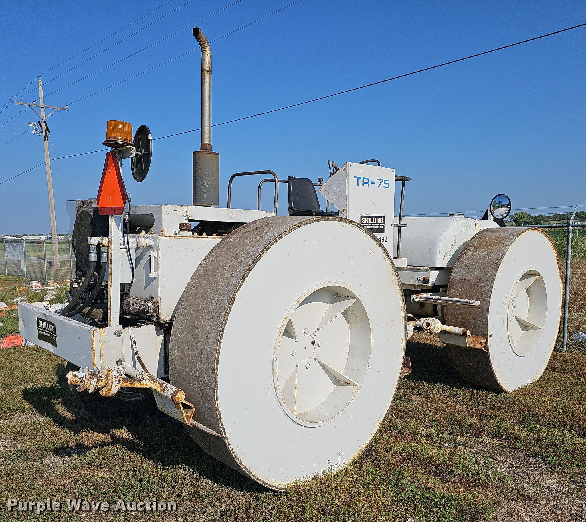 Roadtec TR75 trench compactor. Hours: 127 on meter, Serial: 101, Unit #: ROT1055. Engine Cummins, Cylinders: 4, Fuel type: Diesel. Transmission Hydrostatic. Features Compaction wheels 18" W x 68" diameter, Wheel scrapers: Front, Rear, Hydraulic adjust, Leveler, Water spray system. Tires Size: 11R22.5 , Steel wheels. Notes Dead battery. Shilling Construction Inc.. Manhattan, KS 66502