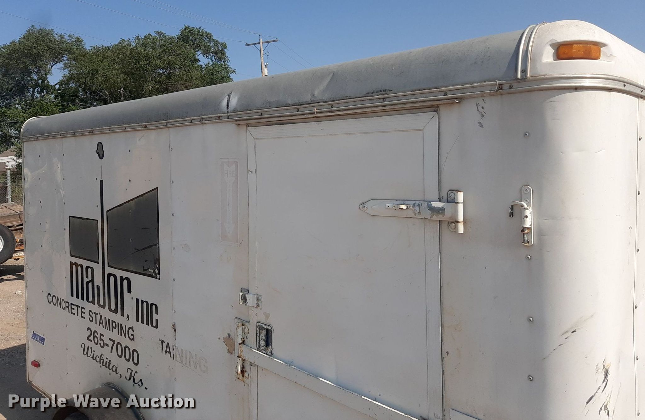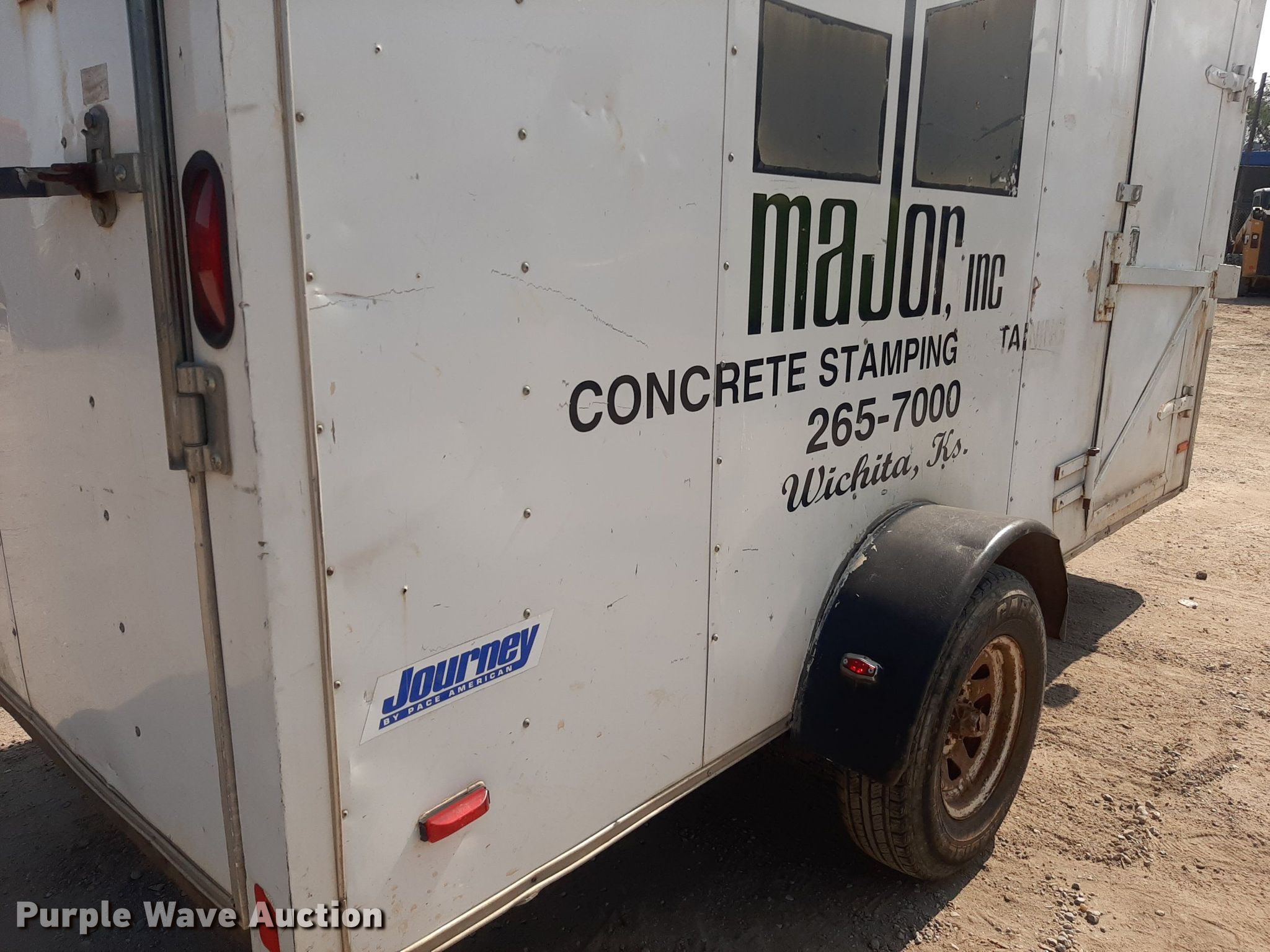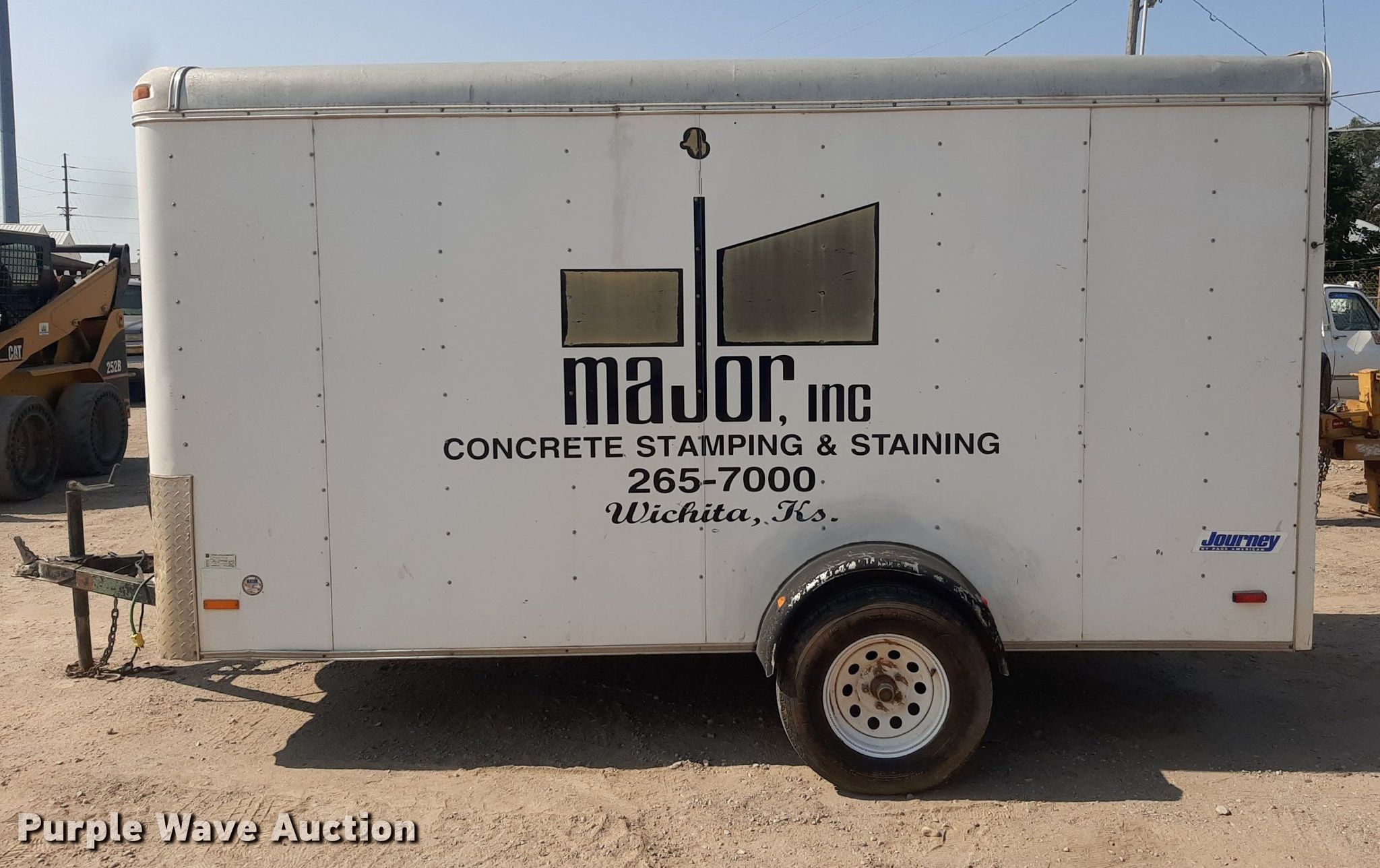 2007 Pace America Journey enclosed cargo trailer. VIN: 47ZFB12197X048831. Dimensions Overall: 15' 7" L x 90" W, Body: 12' 4" L x 72" W. Features Deck type: Steel. Chassis Ball hitch: 2", Landing gear: Single, Suspension: Spring, Brakes: Electric. Tires Steel wheels, Size: 205/75R14. Kansas title. Title distribution may be delayed up to 14 days from verification of funds. Major Concrete Inc.. 1449 S Osage St. Wichita, KS 67213
