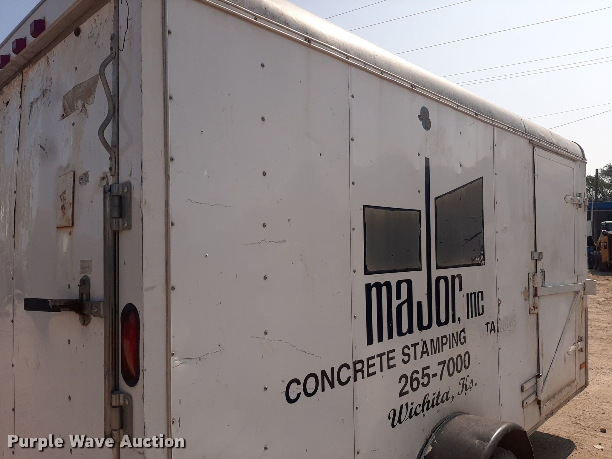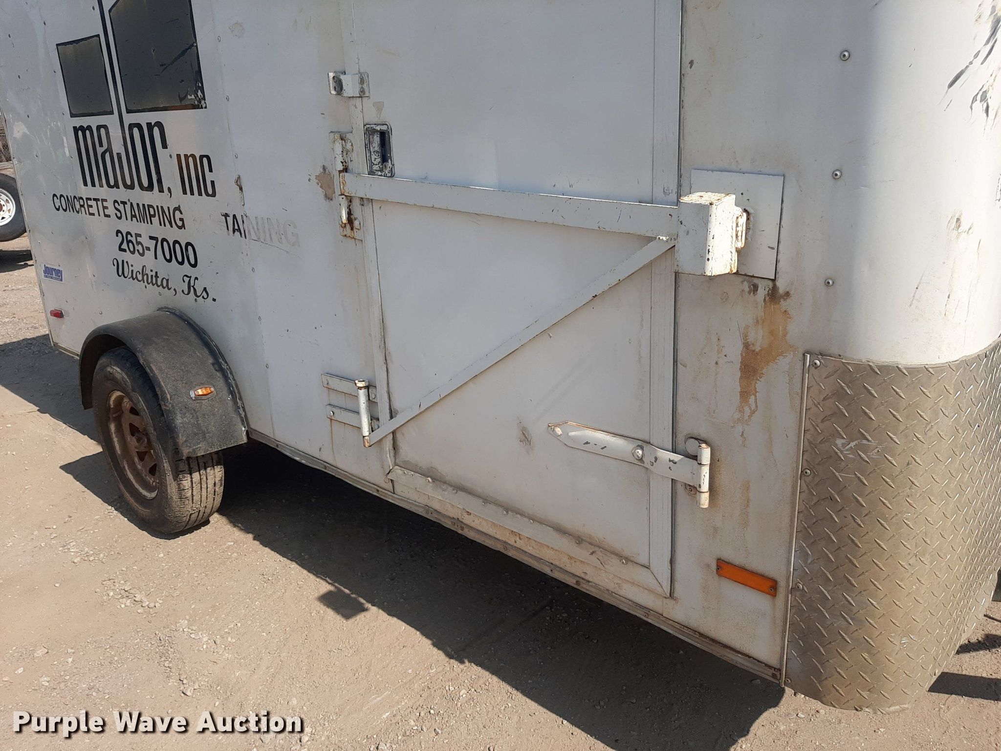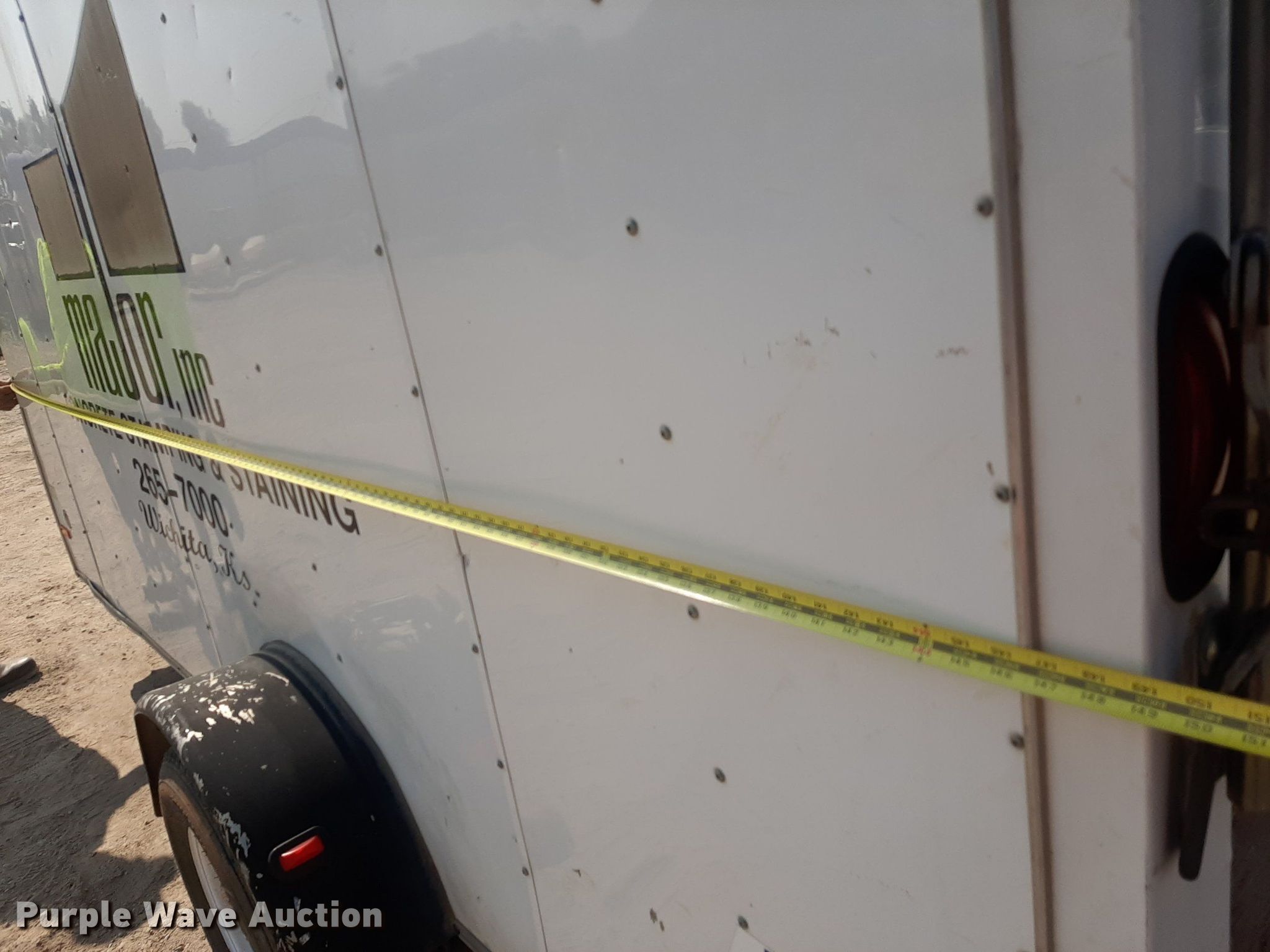 2007 Pace America Journey enclosed cargo trailer. VIN: 47ZFB12197X048831. Dimensions Overall: 15' 7" L x 90" W, Body: 12' 4" L x 72" W. Features Deck type: Steel. Chassis Ball hitch: 2", Landing gear: Single, Suspension: Spring, Brakes: Electric. Tires Steel wheels, Size: 205/75R14. Kansas title. Title distribution may be delayed up to 14 days from verification of funds. Major Concrete Inc.. 1449 S Osage St. Wichita, KS 67213