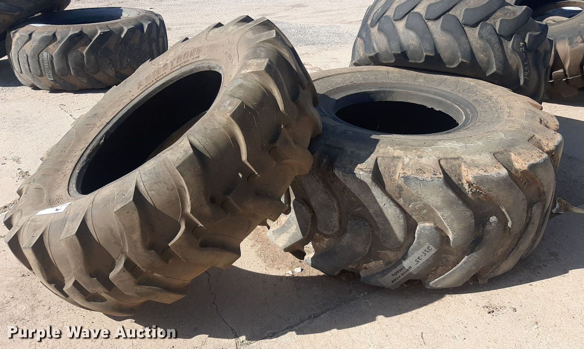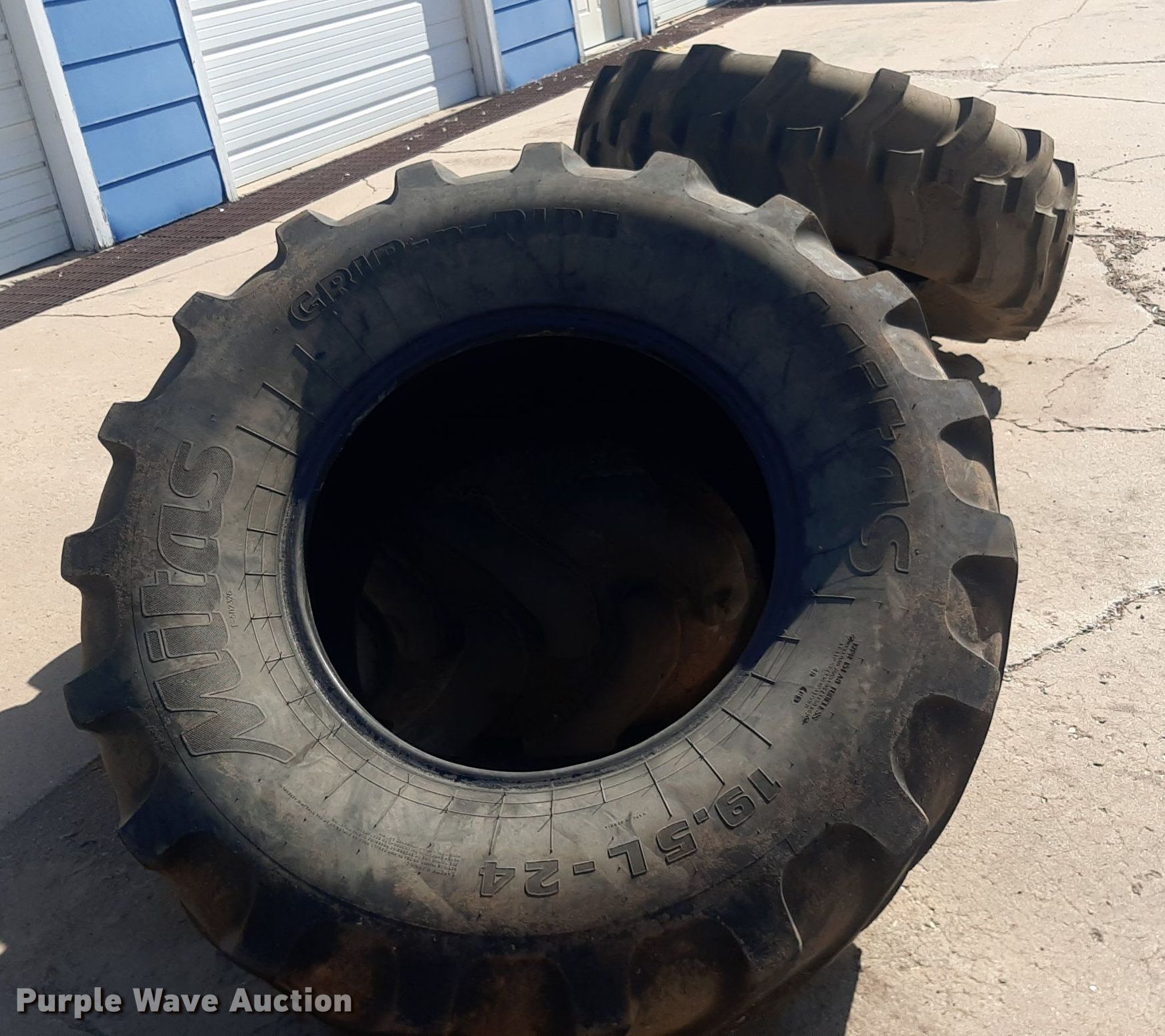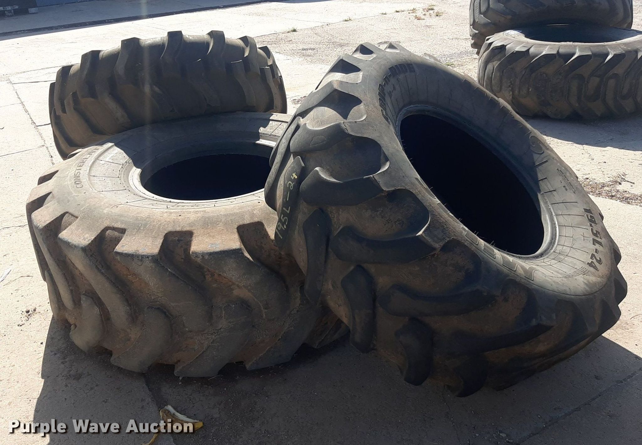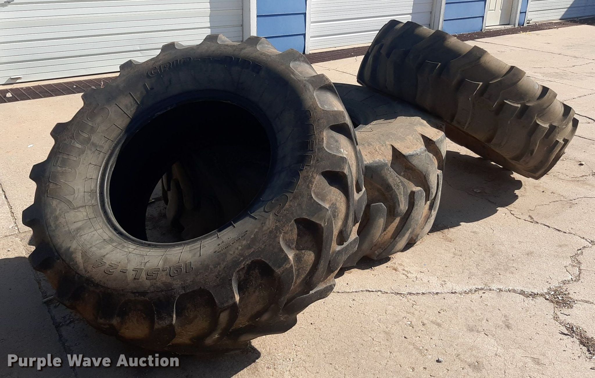 Purple Wave is selling a used Fleet Tires in Kansas. This item is a (3) tires with the following: - Armstrong heavy duty 16.9-28, - Constellation Super Loader tire 23.5-25, - Mitas Grip-N-Ride 19.5L-24