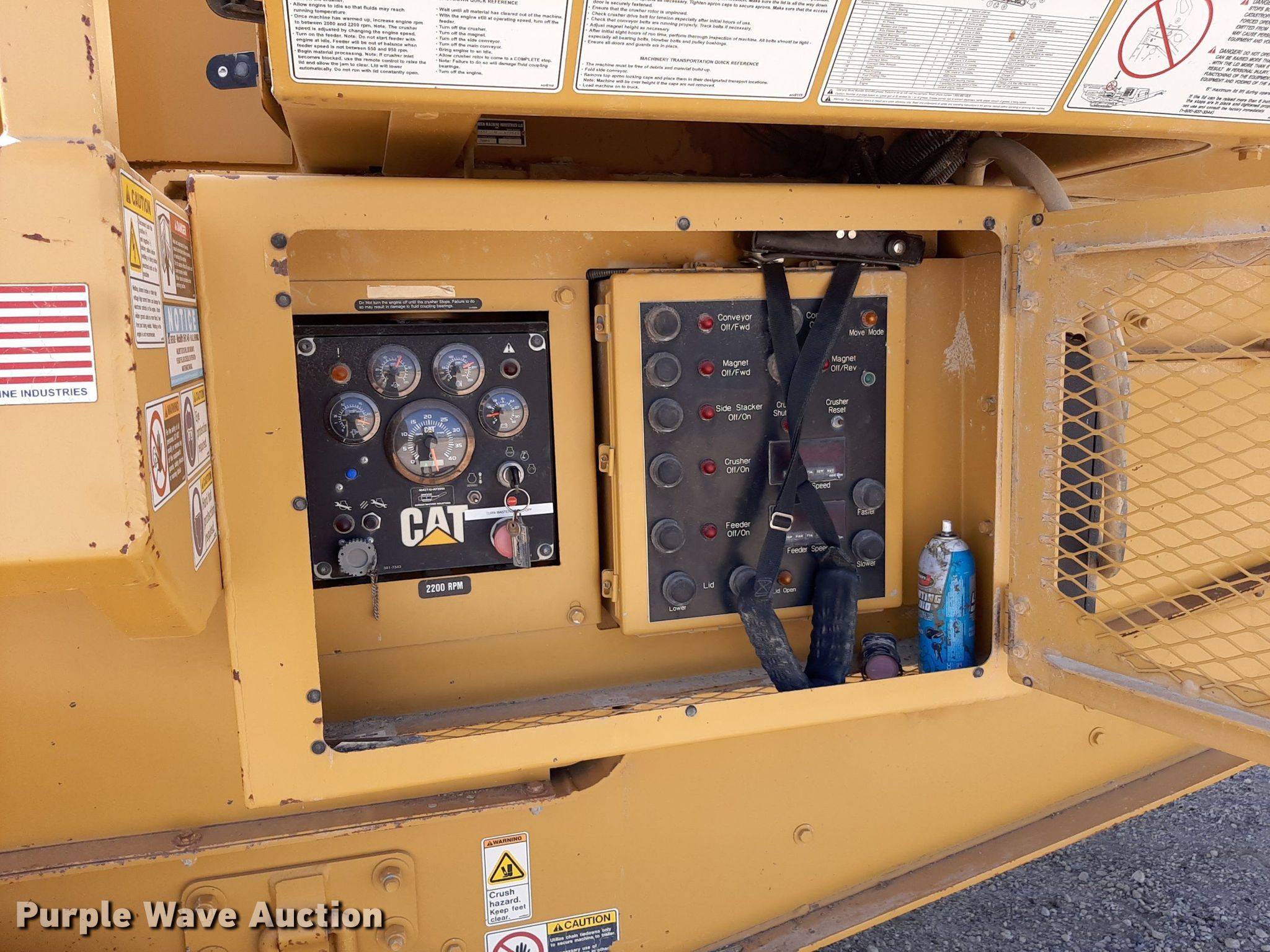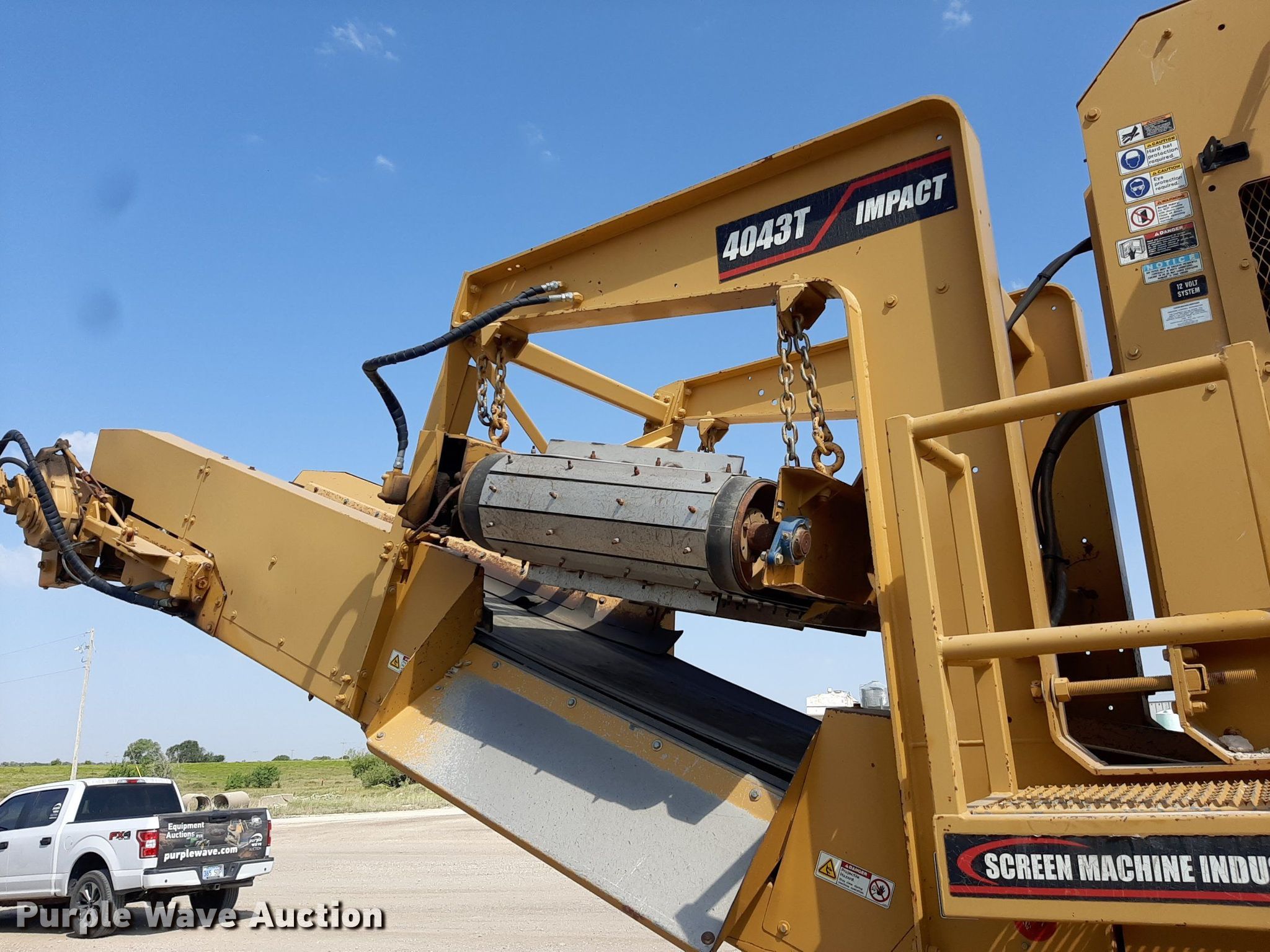 Screen Machine Industries 4043T crusher. Hours: 2,329 on meter, Serial: AE2944. Engine Caterpillar C9 Acert, Cylinders: 6, Fuel type: Diesel. Features Crusher Width: 43", Diameter: 40", Impact, Input hopper Length: 14', Width: 72", Discharge conveyor 15' L x 48" W, Remote control. Tracks Width: 24", Grouser pads: Triple. Bob Bergkamp Construction. Southwest Boyer Road. El Dorado, KS 67042