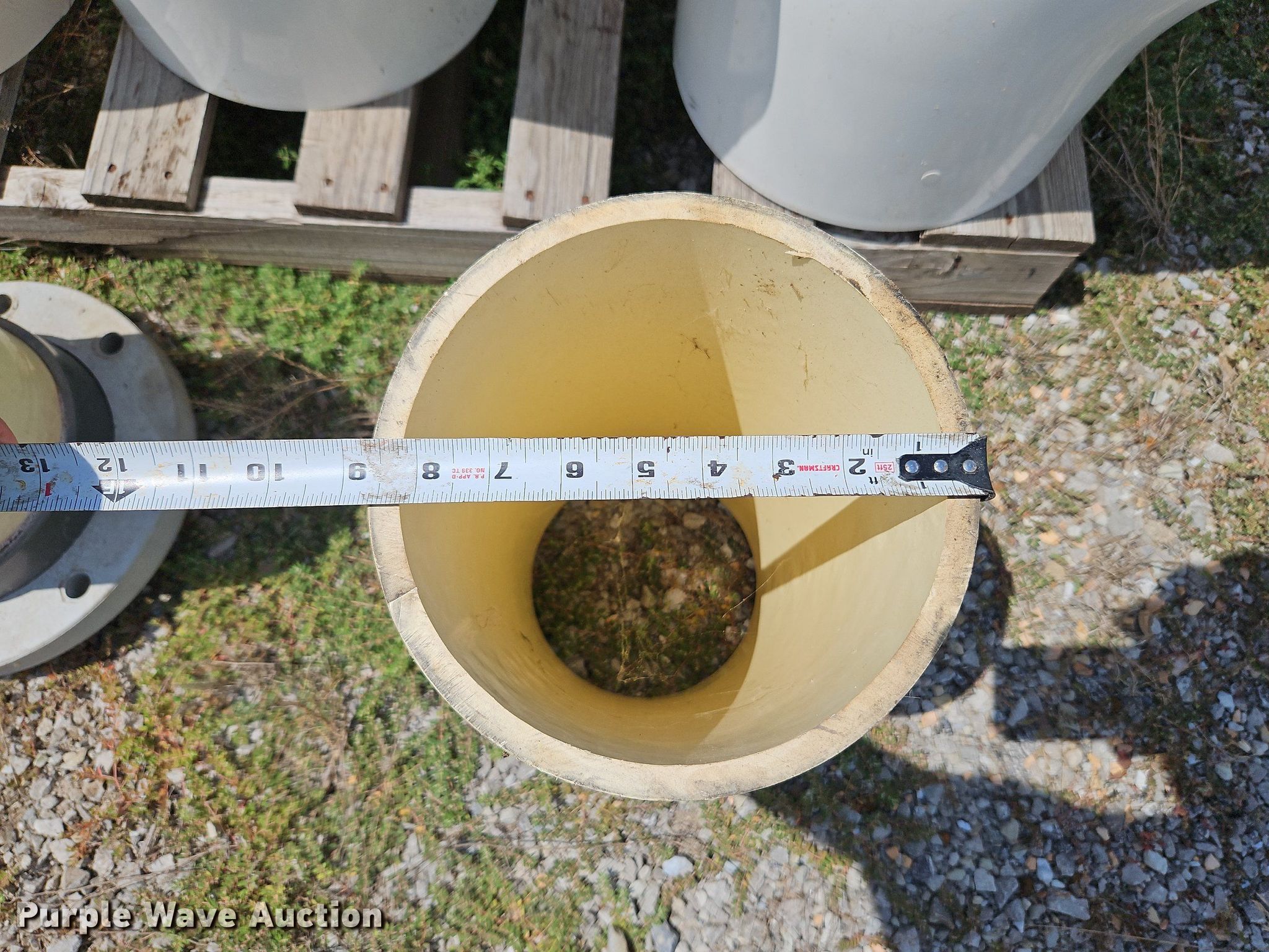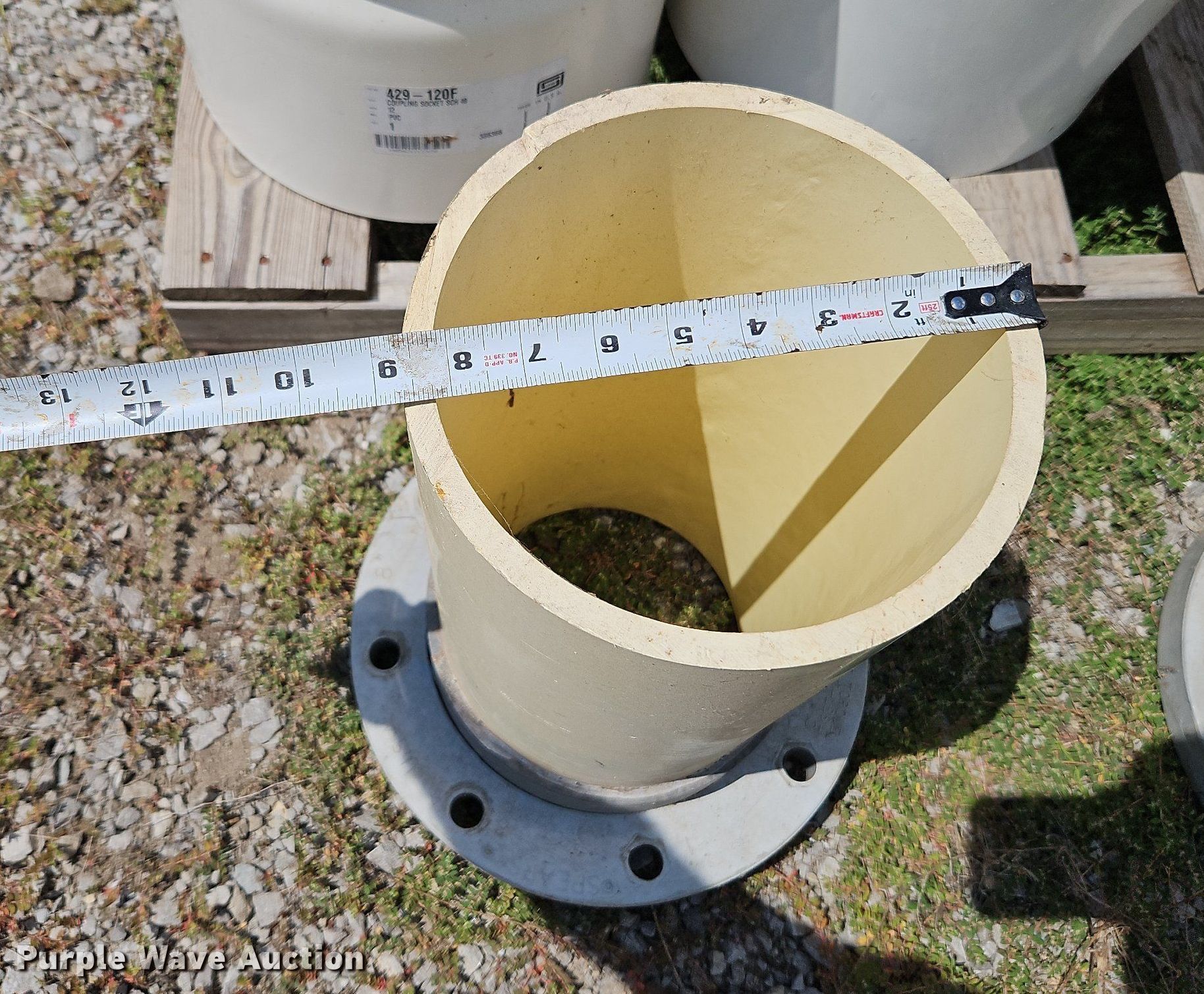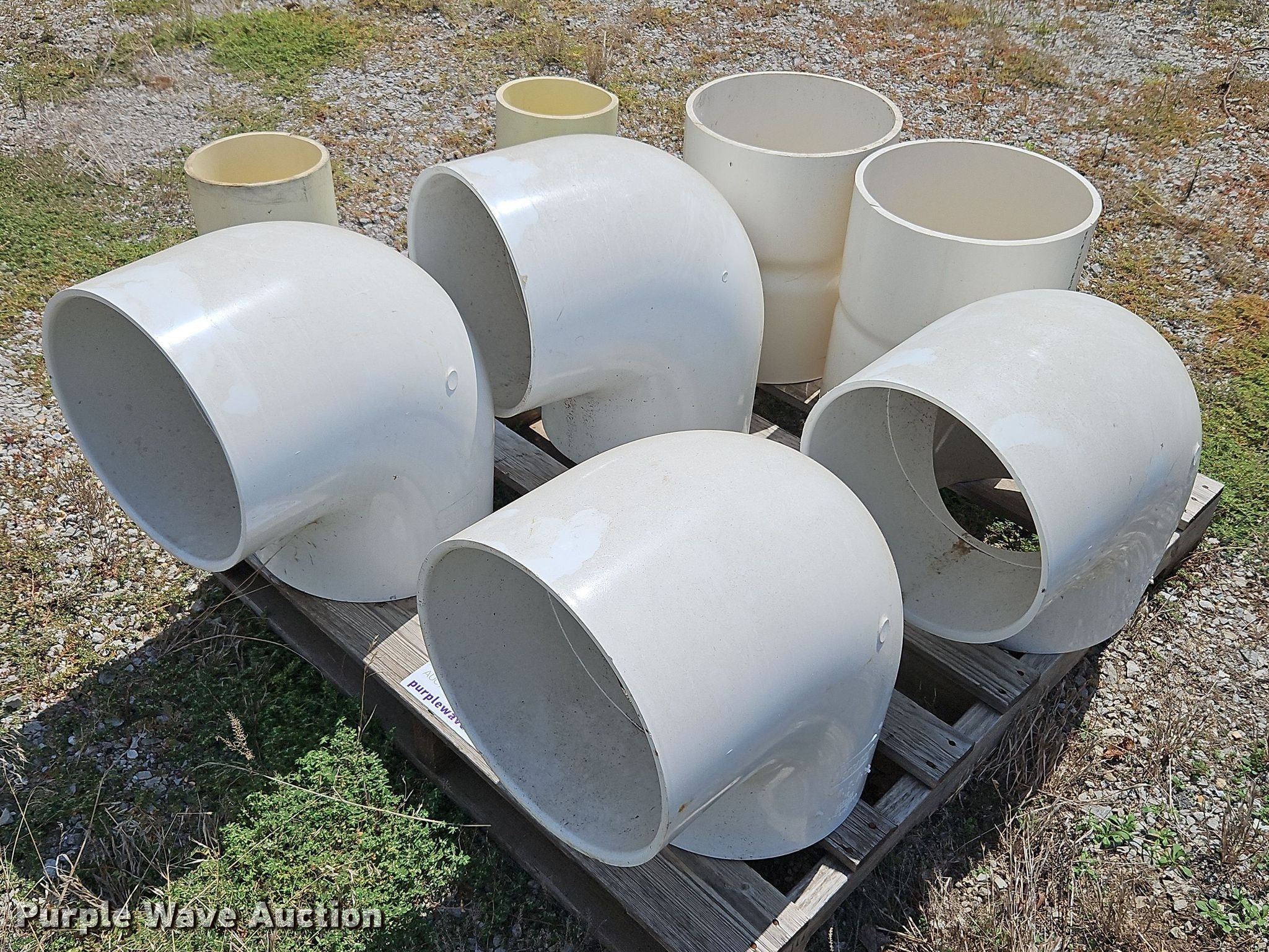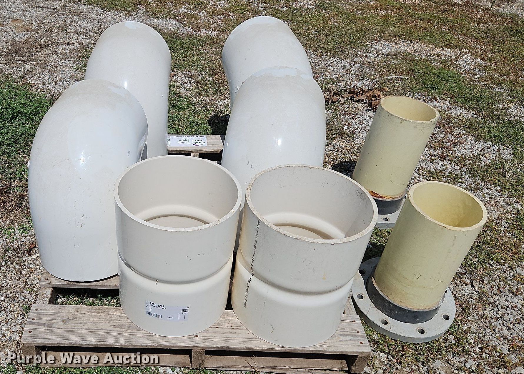 Purple Wave is selling a used Pipe in Missouri. This item is a Solvent weld PVC fittings with the following: (4) 90 degree 12" diameter schedule 40, (2) 12" diameter schedule 40 coupler, (2) 8" diameter FLG x PE adapters