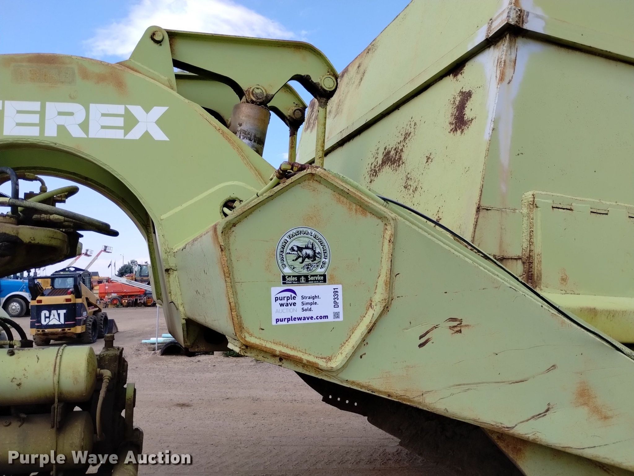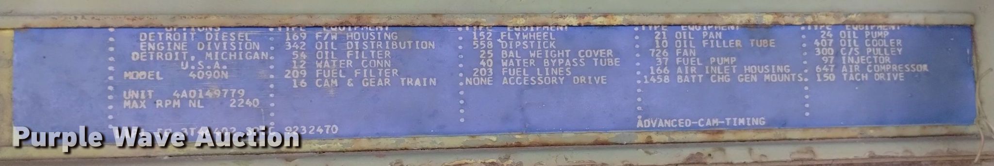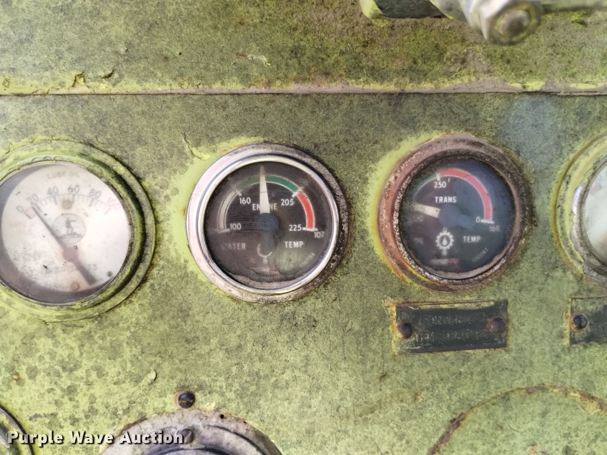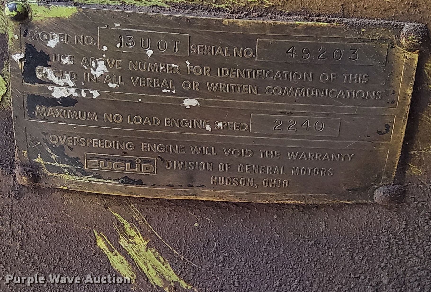 Terex Euclid 13UOT water wagon. Hours: 4,824 on meter, Serial: 49203. Front engine Detroit Diesel 4-71, Cylinders: 4, Fuel type: Diesel. Second engine Detroit Diesel 4-71, Cylinders: 4, Fuel type: Diesel. Transmission Powershift, 6F - 1R. Chassis Brakes: Air. Features Water tank Spray bar: Rear, In-cab spray controls. Tires Size: 29.5-25. Notes Brake issues, air leaks. Flatiron Equipment INC.. West I- 25 Frontage Road. Erie, CO 80516