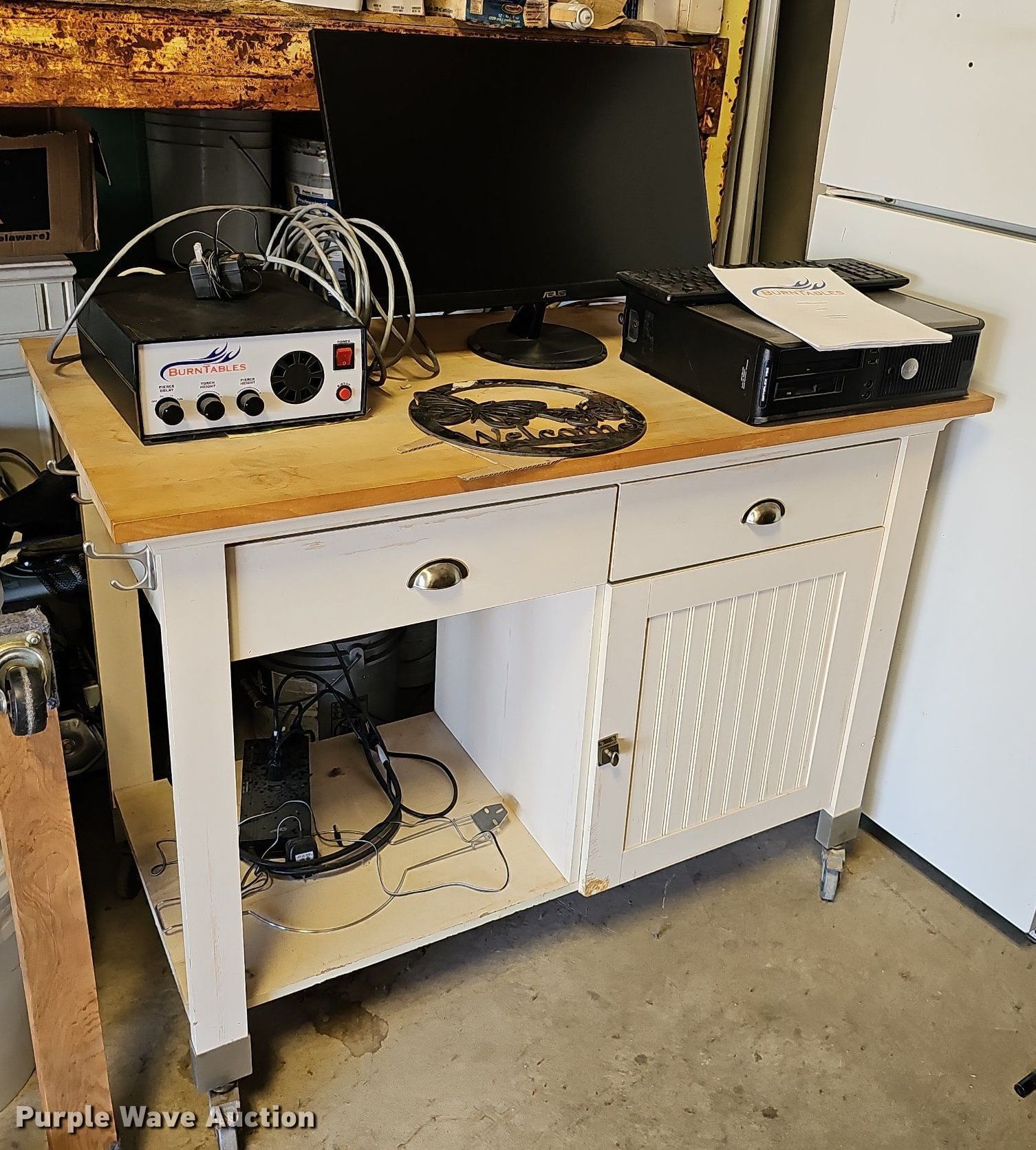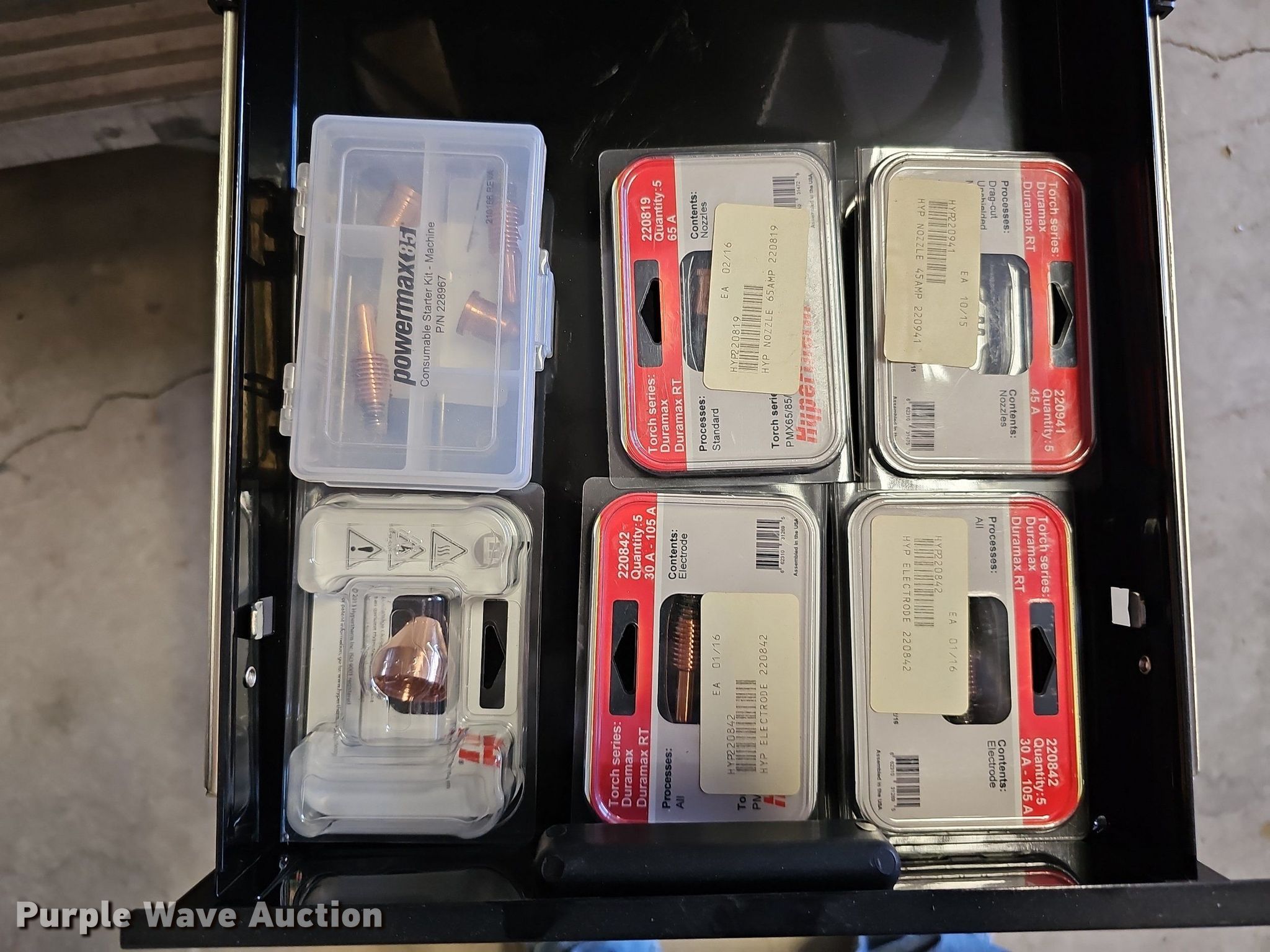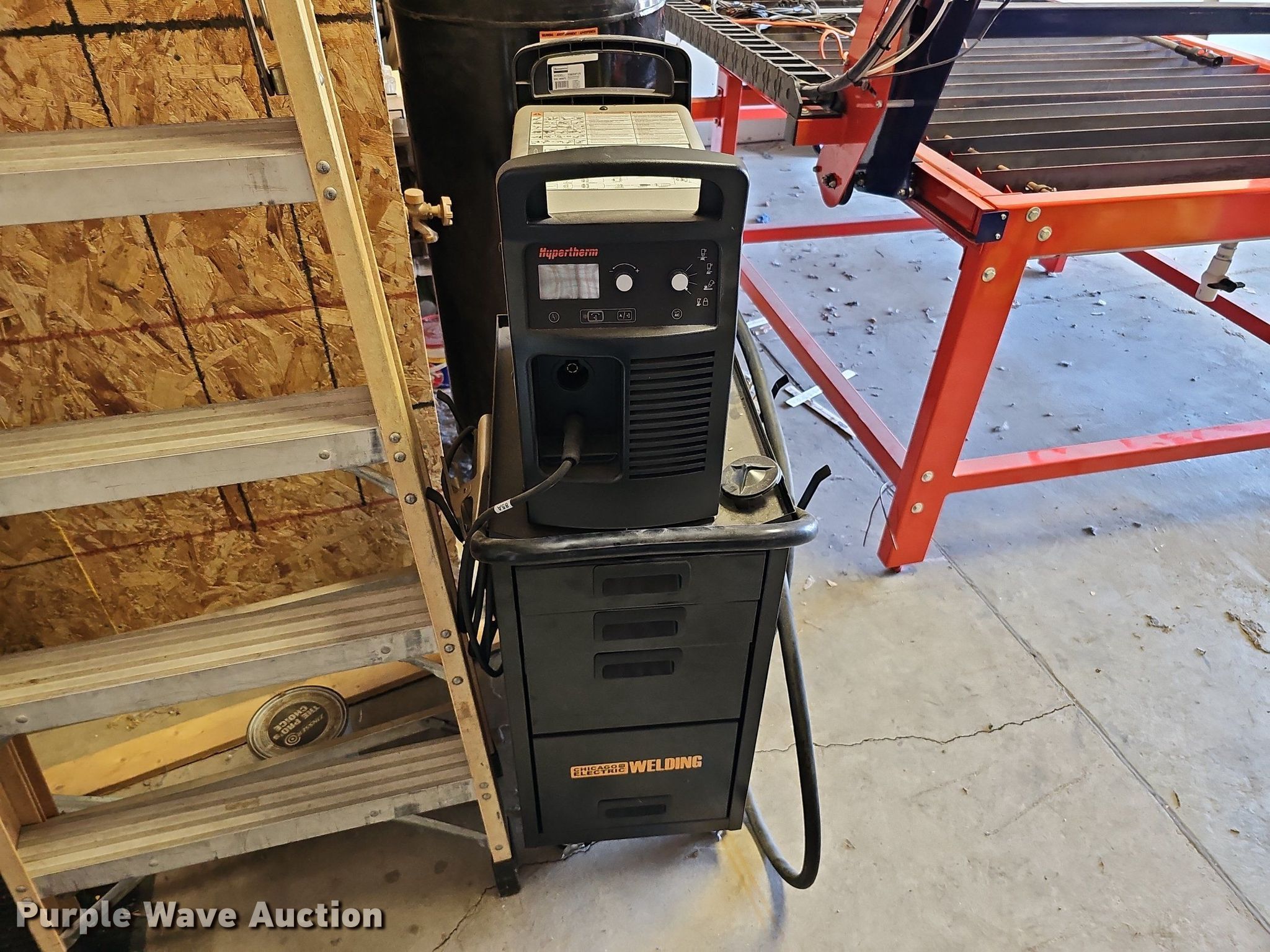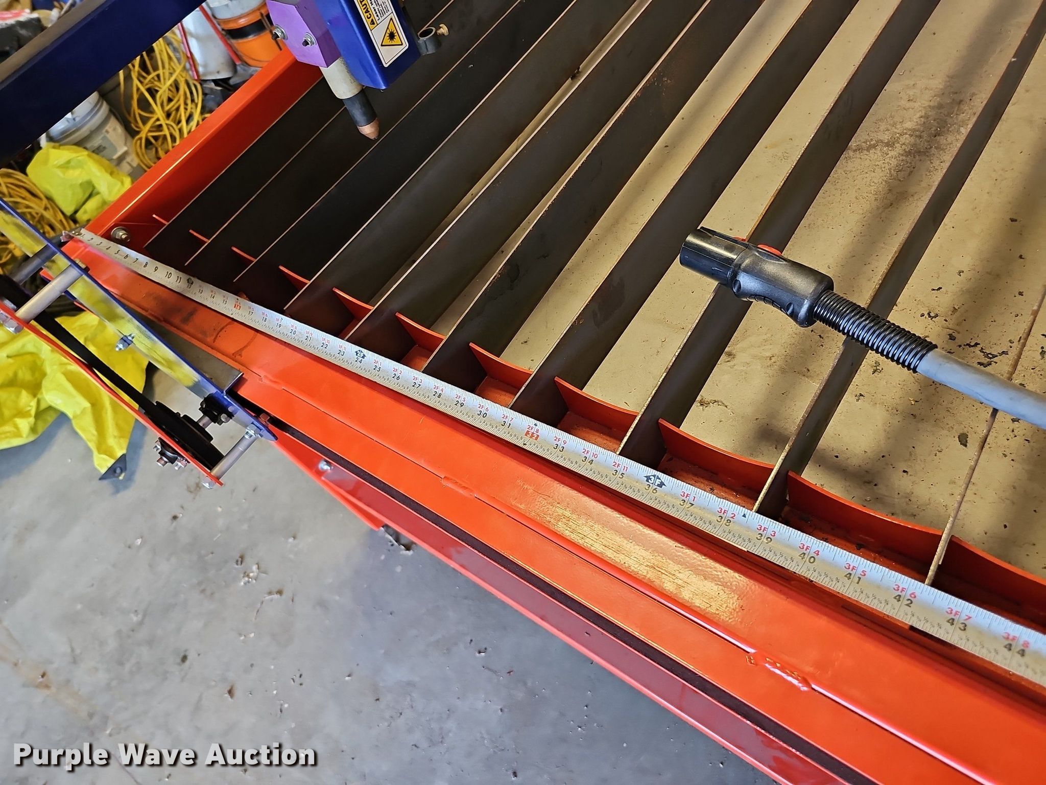 2015 Burn Tables plasma cutting table. Serial: 1642. Electric Motor Volts: 110. Features Overall: 9'5" L x 72" W x 65" H, Table: 9' L x 53.5" W, Desk: 48" L x 25" W x 36" H , PowerMax 85 Hypertherm plasma cutter, (6) plasma cutting tips Unused, Rolling cart, Monitor, Hard drive , Manual. 15299 Chandler Road. Omaha, NE 68138