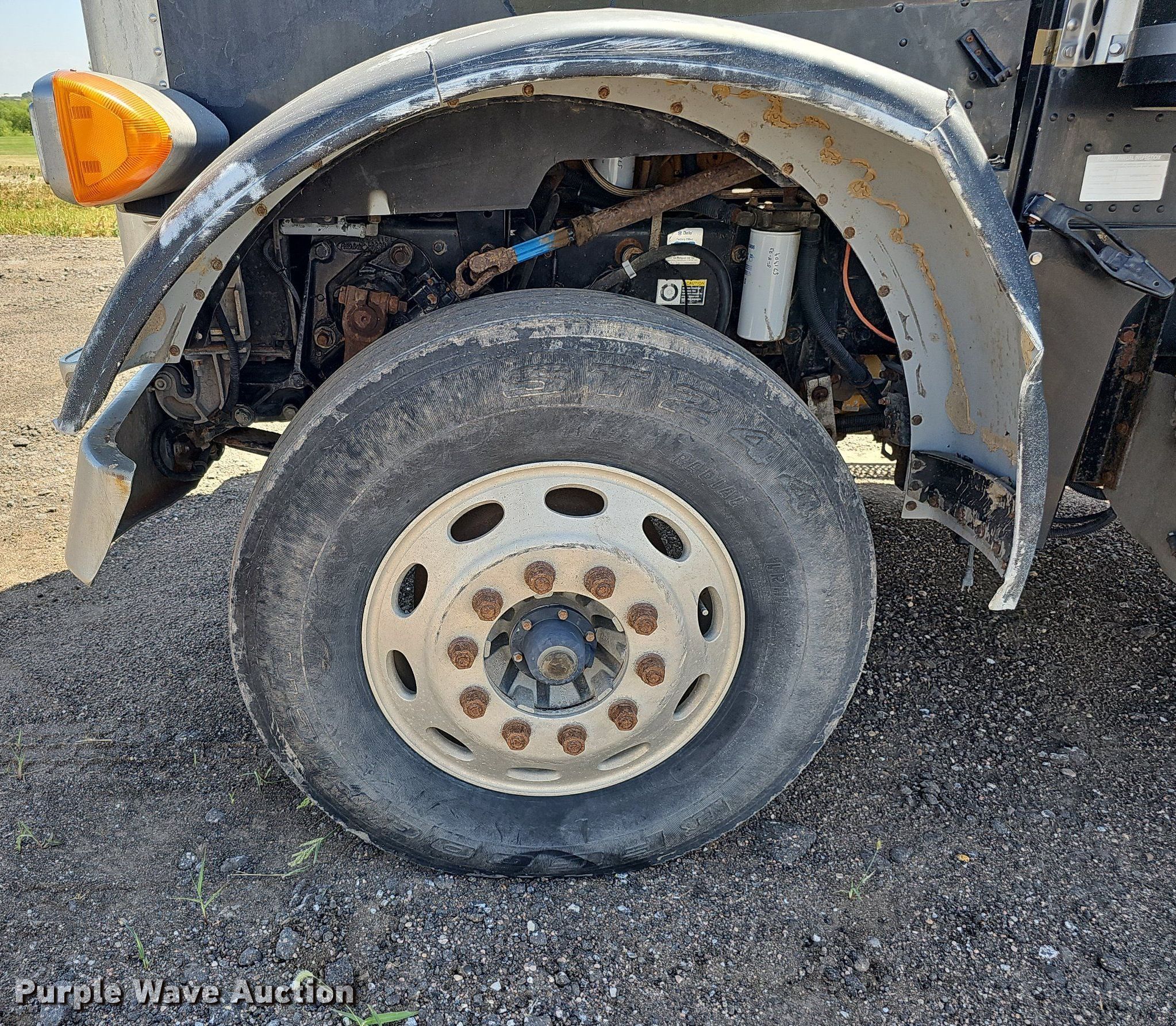 2004 Peterbilt 379 semi truck. Miles: 573,381 on odometer, Hours: 8,280 on meter, VIN: 2XP5DU9X14M823514. Engine Caterpillar C12, Cylinders: 6, Fuel type: Diesel. Transmission Manual, Speed: 10. Chassis Axles: Tandem, Suspension: Spring over walking beam, Brakes: Air, Wet kit, GVWR: 52,000 lbs FAWR: 12,000 lbs, IAWR: 20,000 lbs, RAWR: 20,000 lbs, Wheelbase: 204". Interior AC, Heat, Heated mirrors, Cruise control, Air ride cab. Features Deck plate: Aluminum, Fifth wheel type: Air operated, Sliding, Fuel tank: Single. Tires Size: 11R22.5. Notes Dead battery. Nebraska title. Title distribution may be delayed up to 14 days from verification of funds. Van Kirk Bros. Contracting. 1200 West Ash Street. Sutton, NE 68979