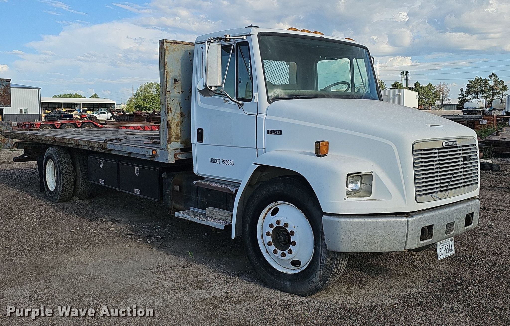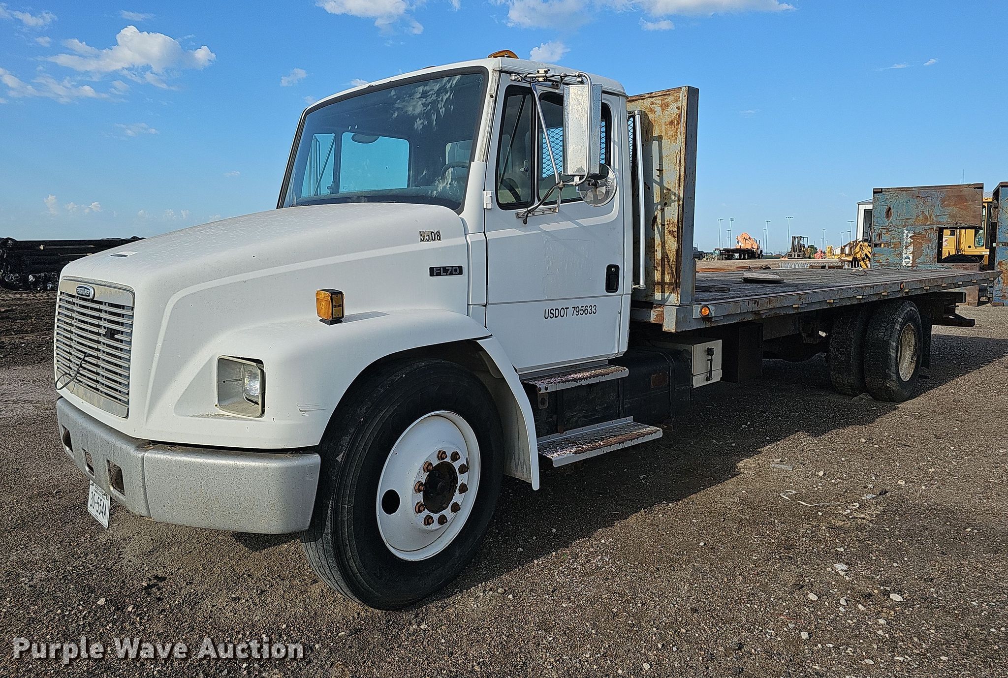 This 1997 Freightliner FL70 rollback truck will sell to the highest bidder regardless of price.