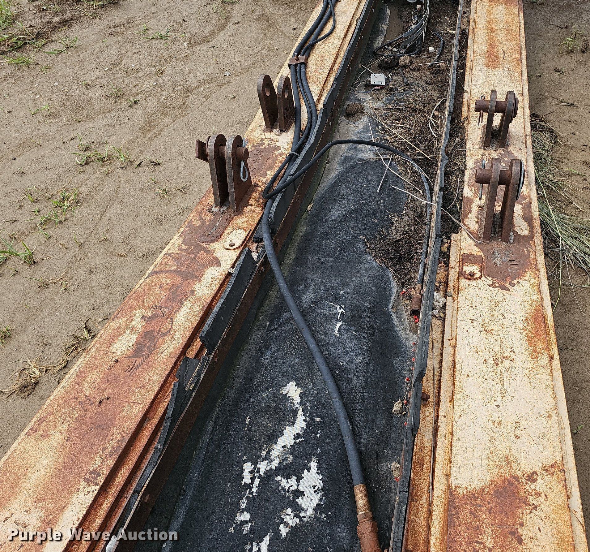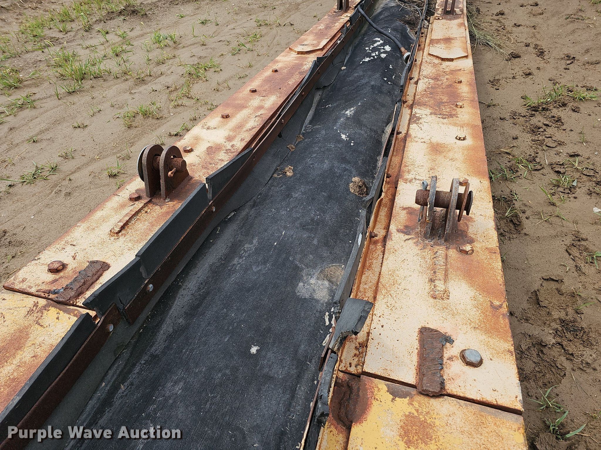 Felco conveyor. Features. Conveyor Length: 25' 3", Width: 26", Input hopper Length: 60", Width: 100", Belt Width: 23.375". Notes Unknown operating condition. VanKirk Bros. Contracting. 31940 Road Y. Sutton, NE 68979