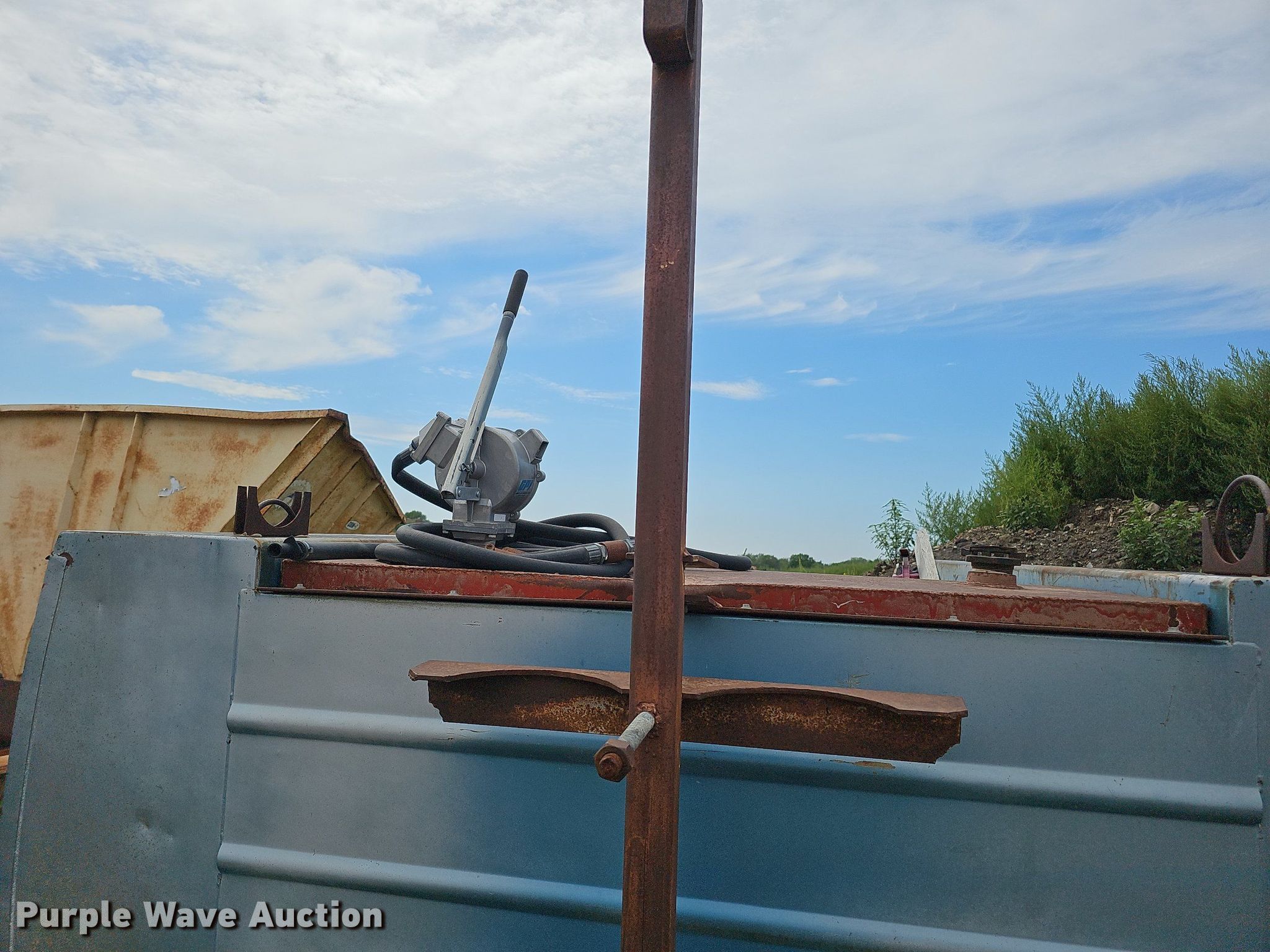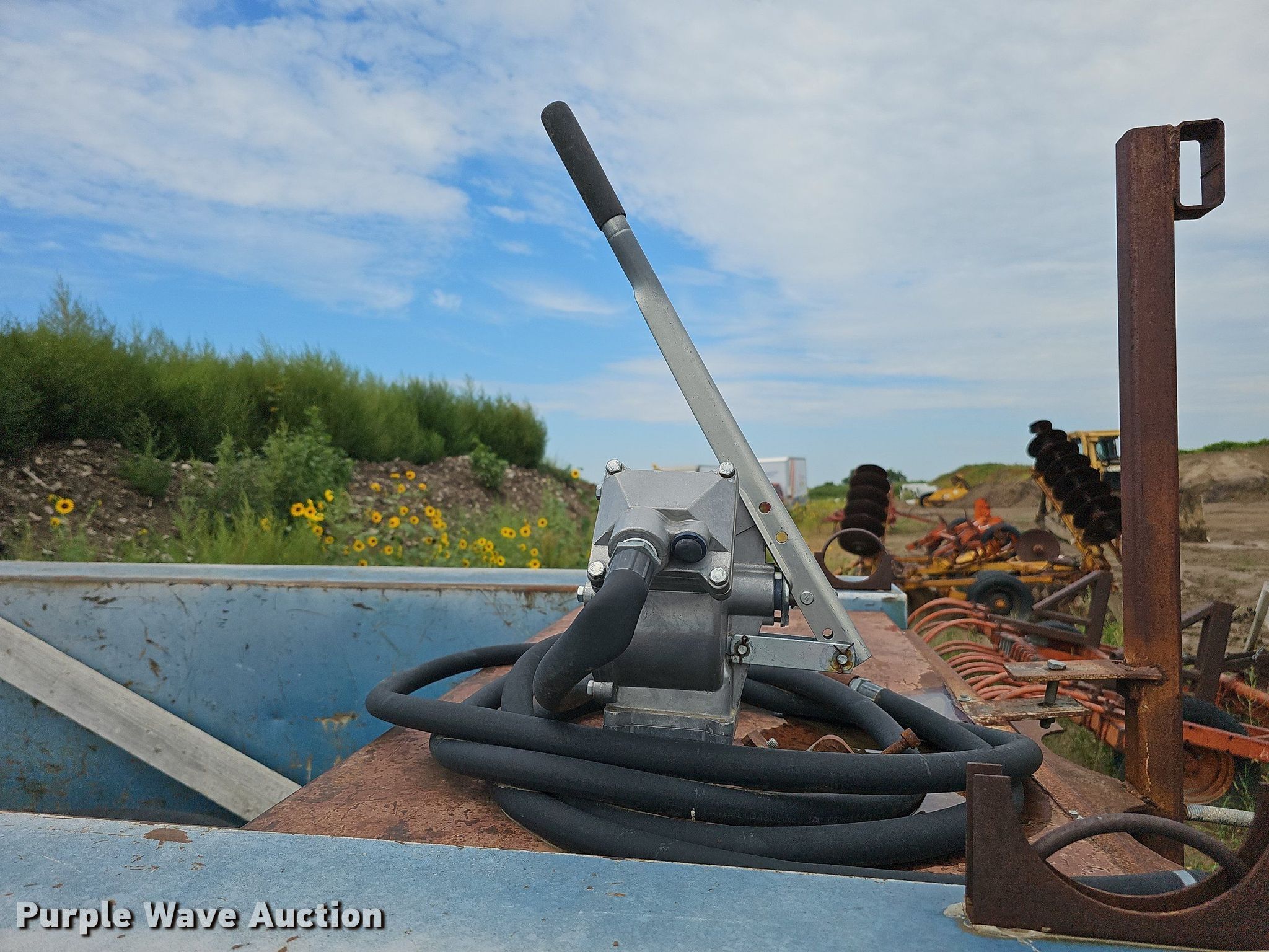 Stahl Grand Challenger G101 service bed trailer. Serial: G36-0166. Dimensions Overall: 14' L x 79" W. Features Deck type: Steel, Auxiliary fuel tank GPI pump, Hose included. Chassis Ball hitch: 2", Landing gear: Single, Suspension: Spring. Tires Steel wheels, Size: LT245/75R16. Notes Spare tire, Bed issue, holes in bed. Transfer of ownership documentation will be a bill of sale. VanKirk Bros. Contracting. 31940 Road Y. Sutton, NE 68979