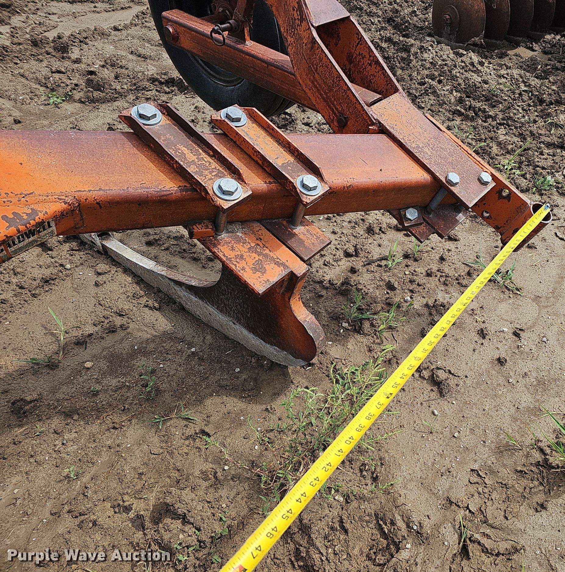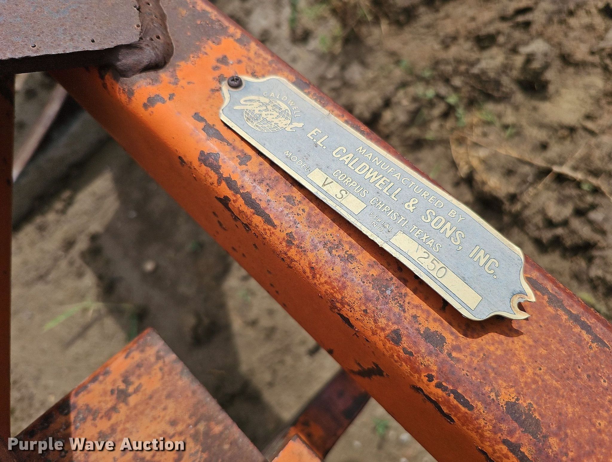 E.L. Caldwell & Sons VS ripper. Overall width: 14' 6", Serial: 250. Features Blade diameter, Rippers: 5 Length: 53", Spacing: 30", Operation Leveler: Manual. Tires Tire size: 11L-15. VanKirk Bros. Contracting. 31940 Road Y. Sutton, NE 68979