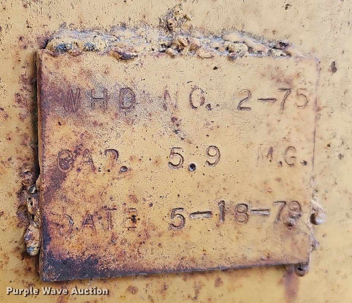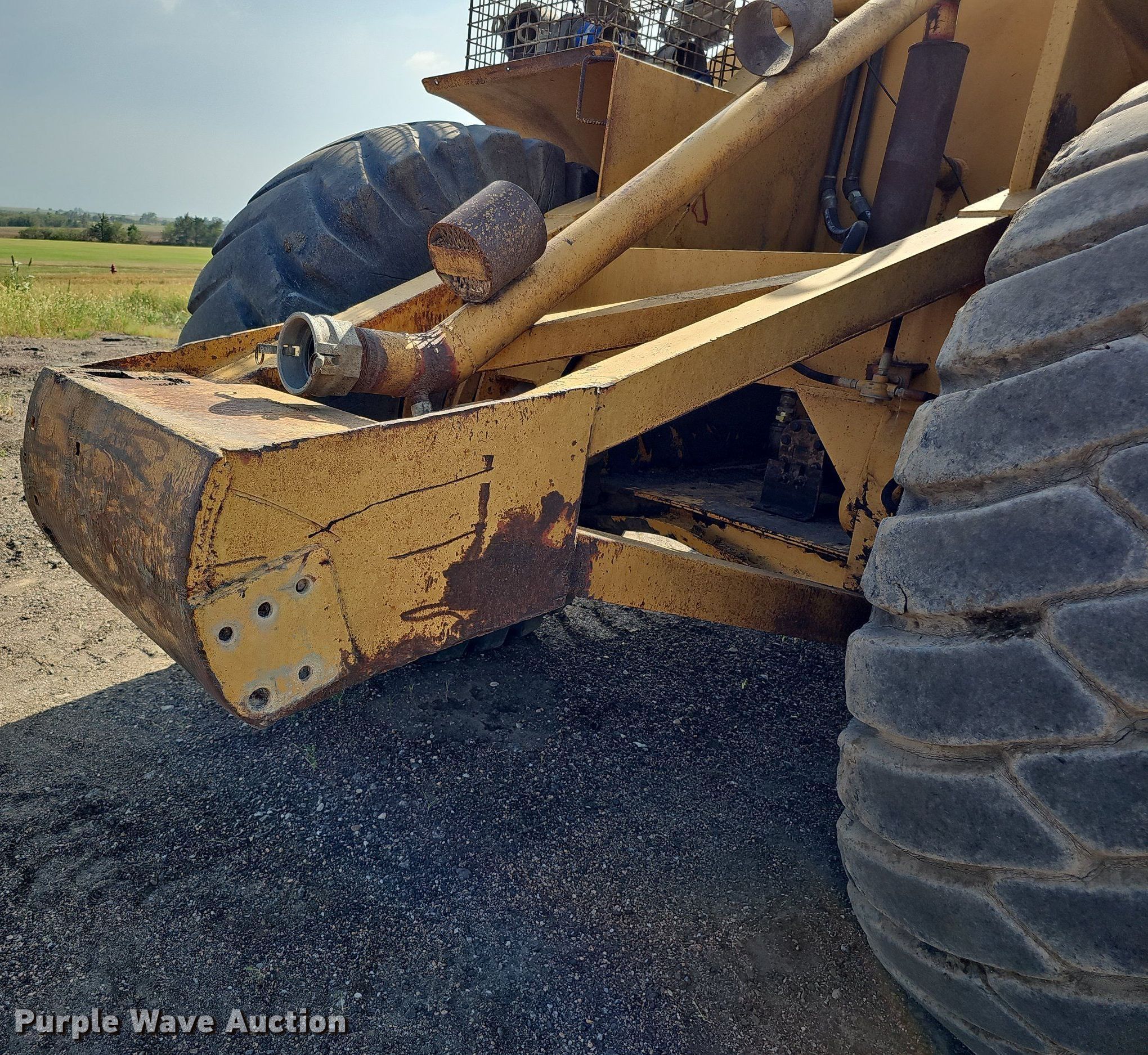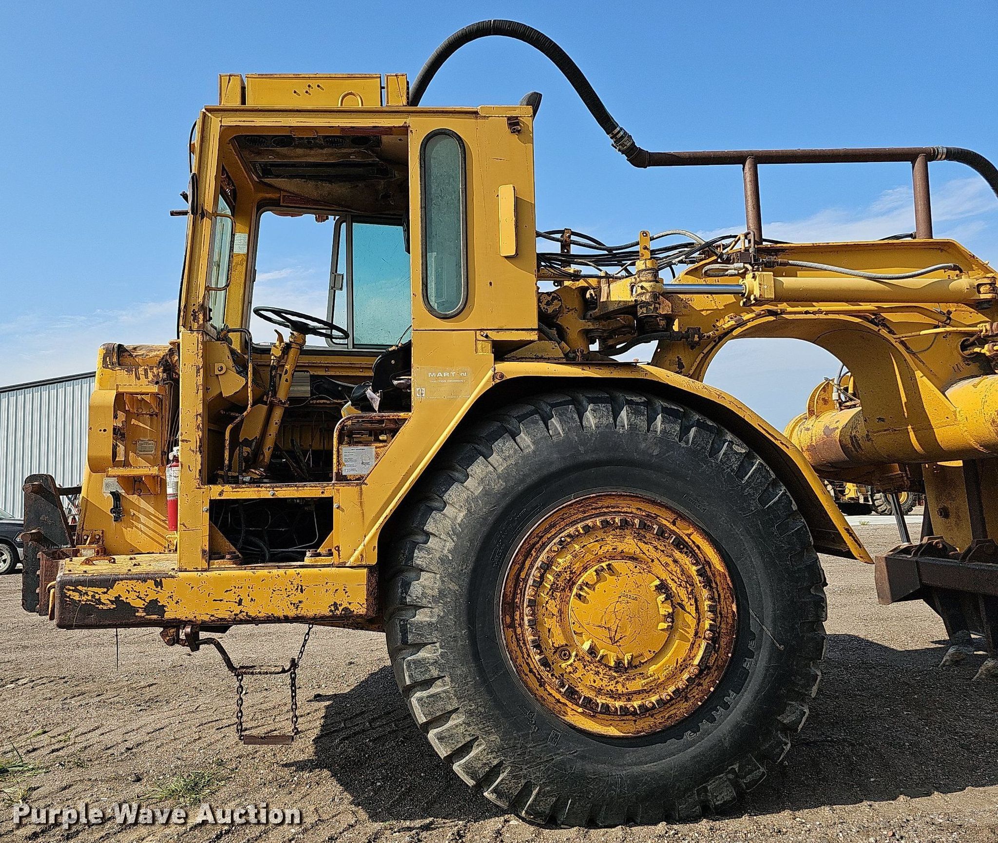 1974 Caterpillar 623B water wagon. Hours: 923 on meter, Serial: 46P370. Engine Caterpillar 3406, Serial: 70V718, Cylinders: 6, Fuel type: Diesel. Transmission Powershift, 8F - 1R. Chassis Four wheel drive. Features Water tank 1979 Caterpillar WHD NO 2-75, Capacity: 8,000 gallons, Spray bar: Rear, Side discharge, Water cannon, In-cab spray controls, Ripper Width: 126", Shanks: 5. Tires Front: 29.5-35, Rear: 24.00-25. Van Kirk Bros. Contracting. 1200 West Ash Street. Sutton, NE 68979