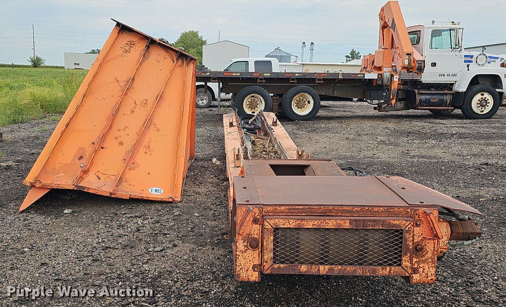 Purple Wave is selling a used Conveyor in Nebraska. This item is a Con-3 conveyor with the following: Conveyor, Length: 25' 6", Width: 26", Input hopper, Length: 135", Width: 65", Hopper, Height: 100", Belt, Width: 24", Unknown operating condition