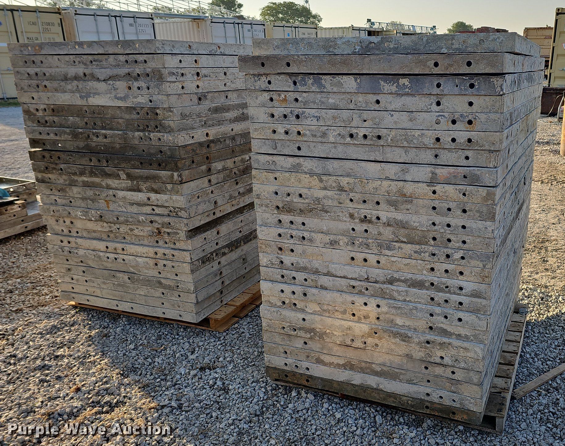 Purple Wave is selling a used Concrete Equip. or Acces. in Nebraska. This item is a Concrete forms with the following: Approximately 71 concrete forms, 48"L x 36"W, Wall Tie & Forms Inc, PFI forms,, Approximately 7 damaged forms, (6) 48"L x 36"W, (1) 60"L x 24"W