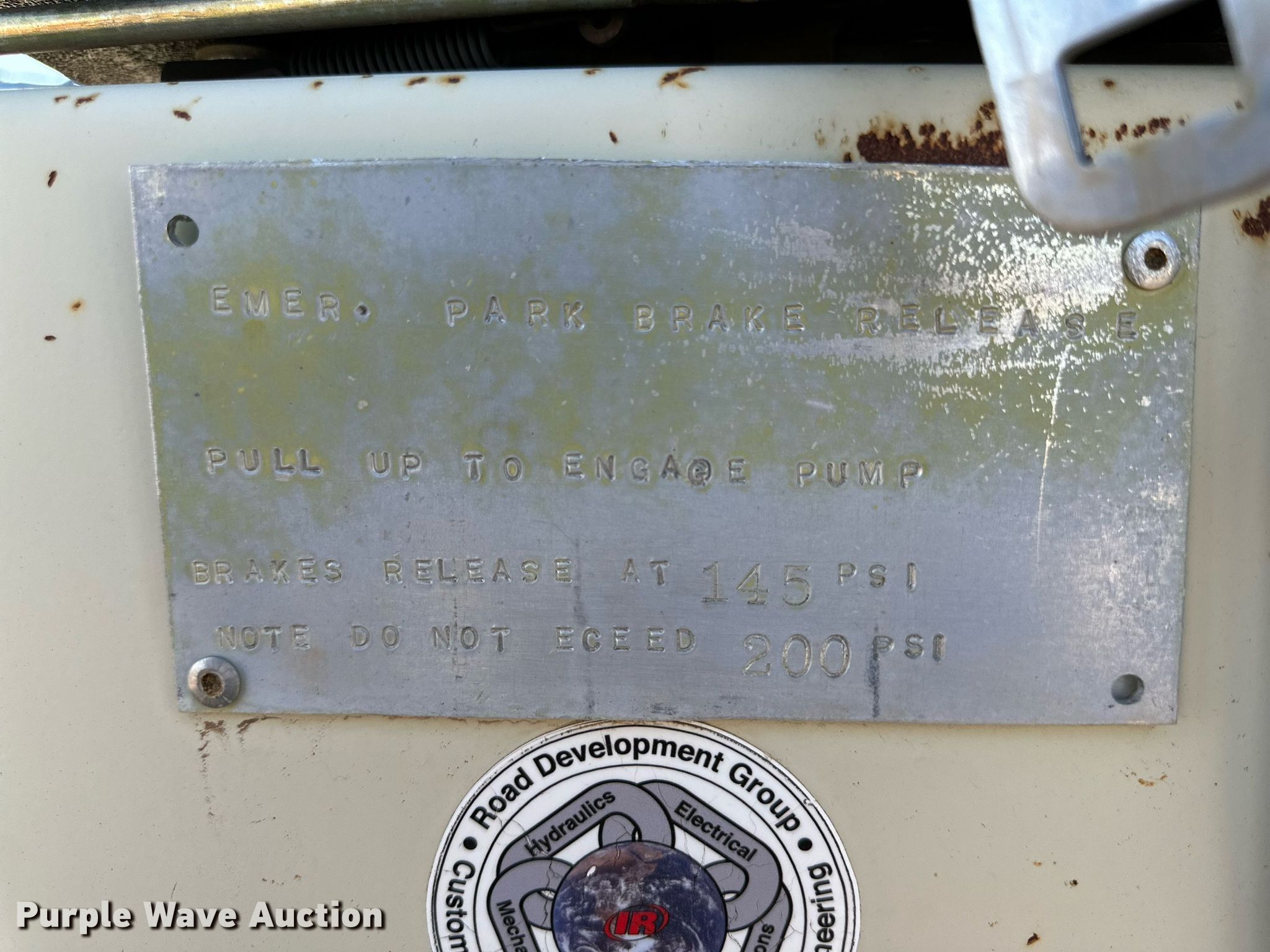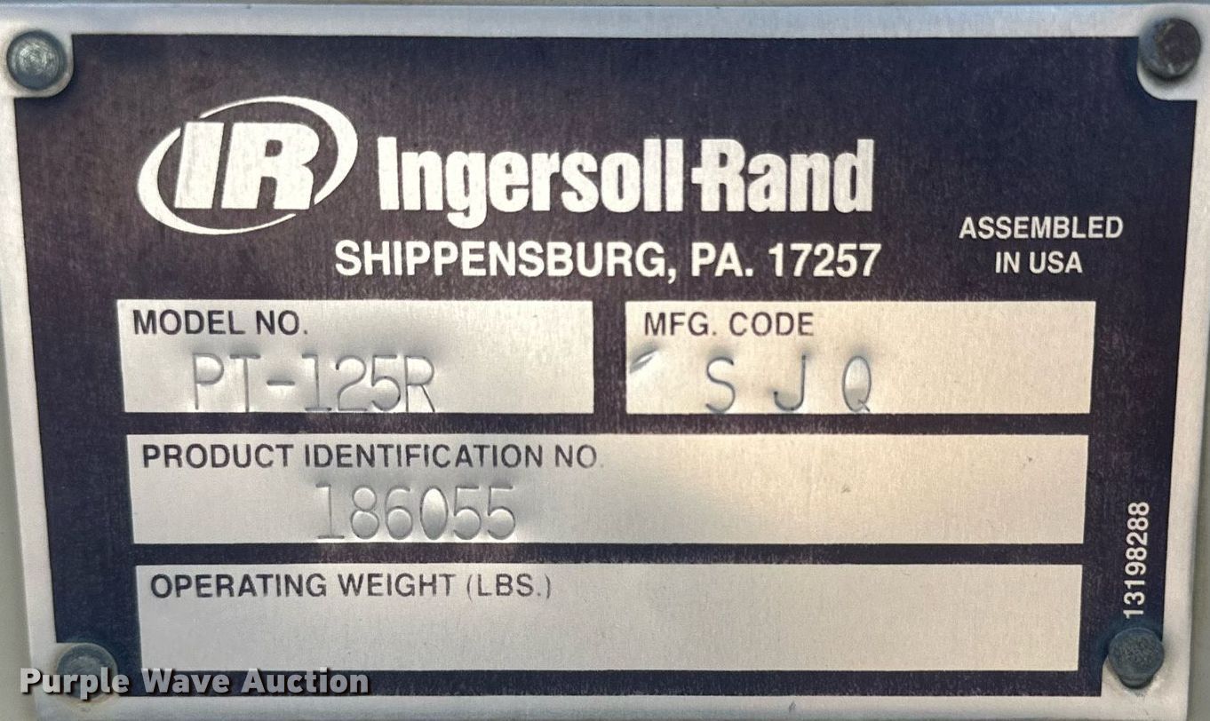 2006 Ingersoll Rand PT125R pneumatic roller. Hours: 1,164 on meter, Serial: 186055. Engine Cylinders: 4, Fuel type: Diesel. Transmission Hydrostatic. Features Drum scrapers: Front, Rear, Water spray applicator: Front, Rear. Tires Size: 7.5-15, Quantity: 9. Notes Non-operational unit. 389 Private Road 400L. Seminole, TX 79360